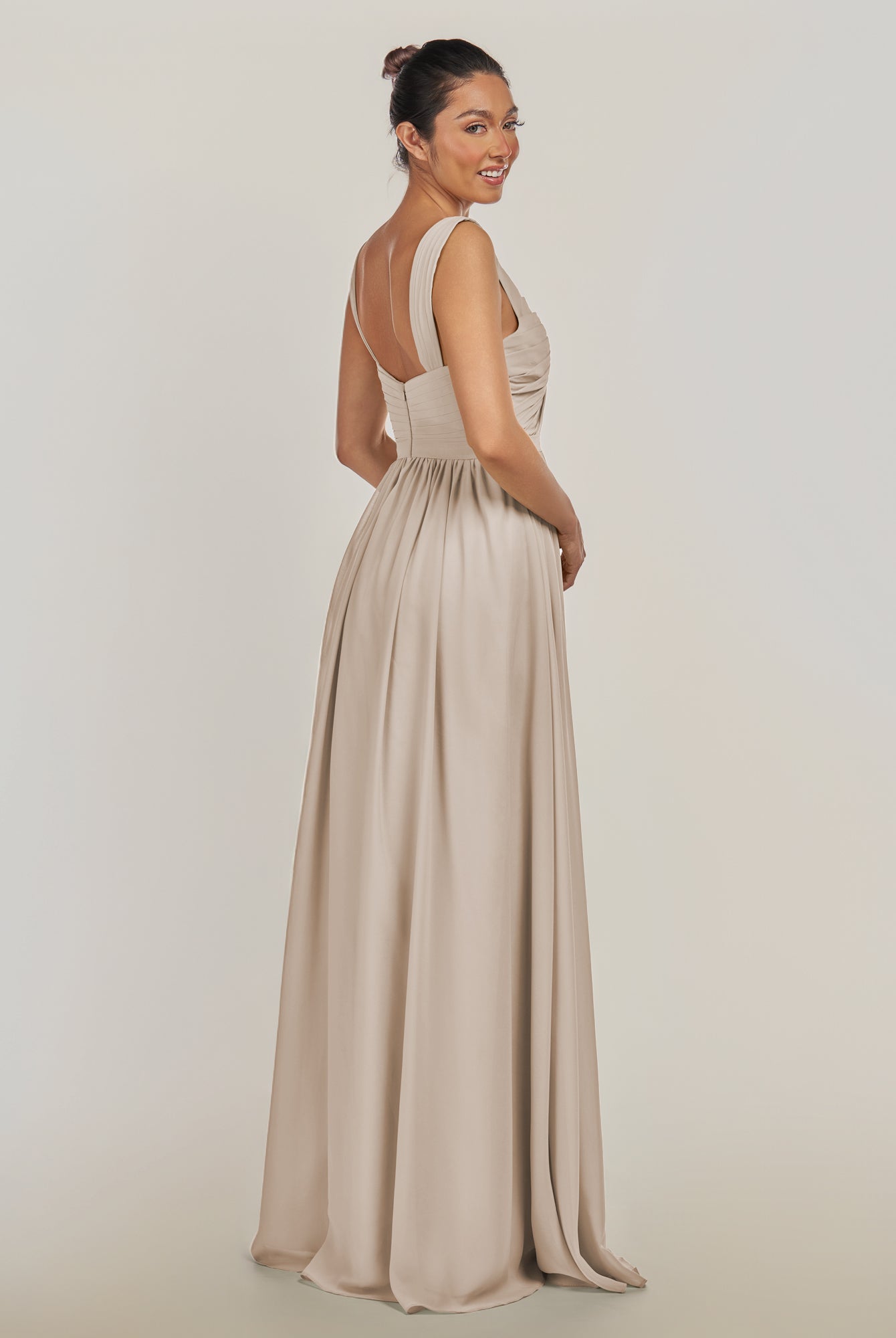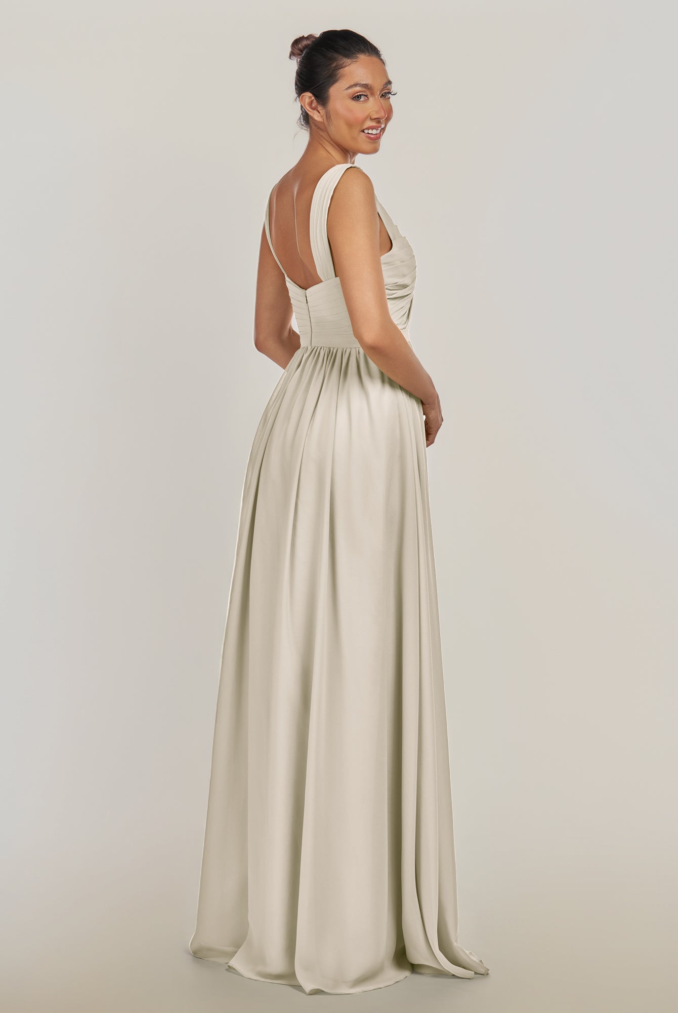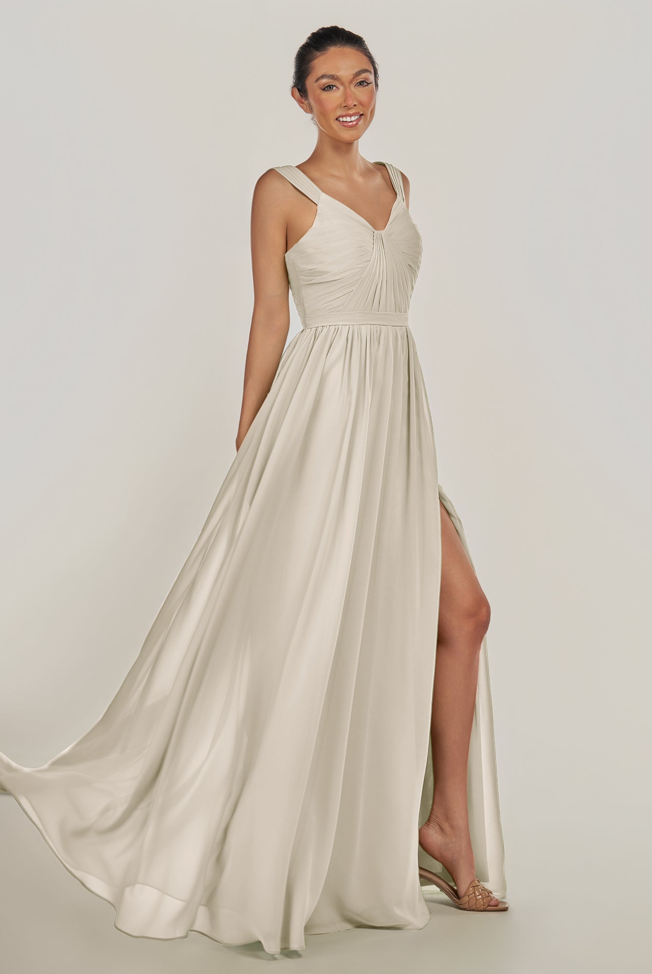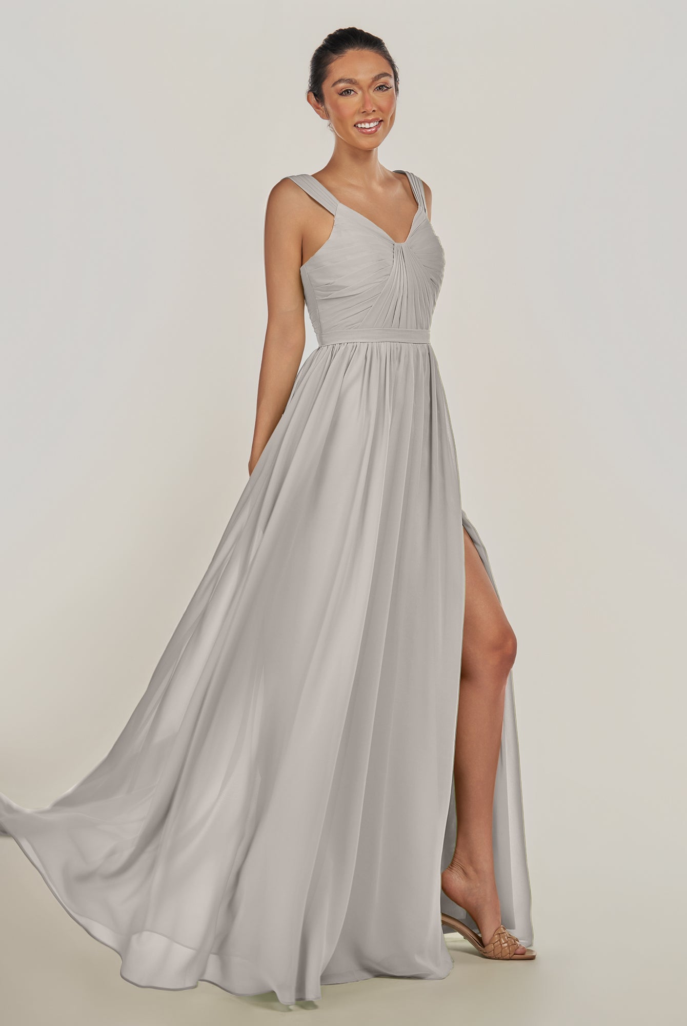 Fira | Dove Gray - A Line Chiffon V Neck Pleated Long Bridesmaid Dress with Slit