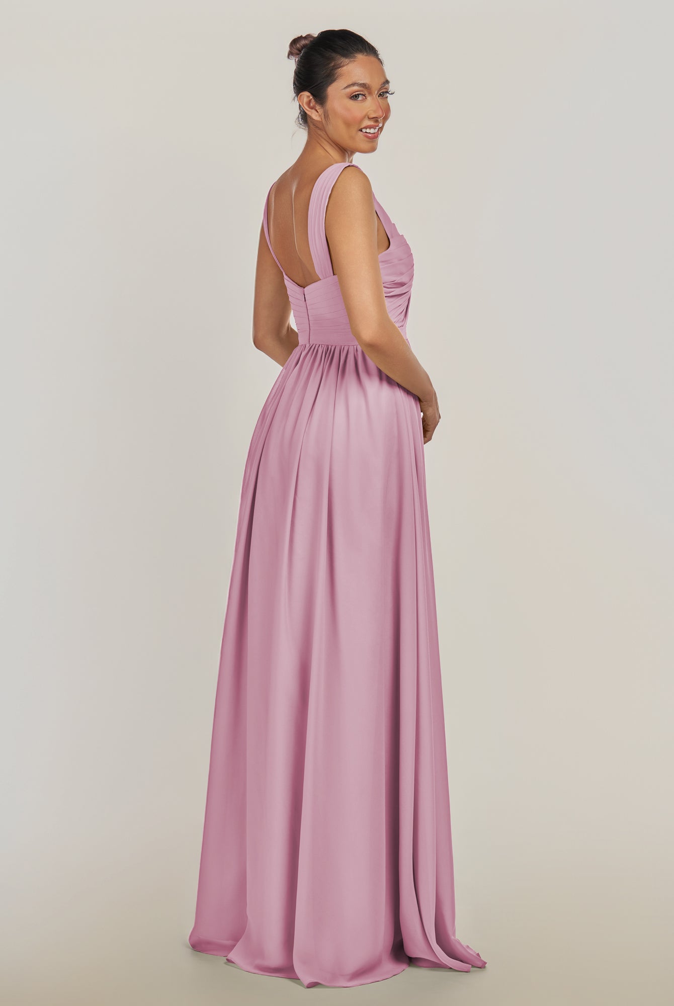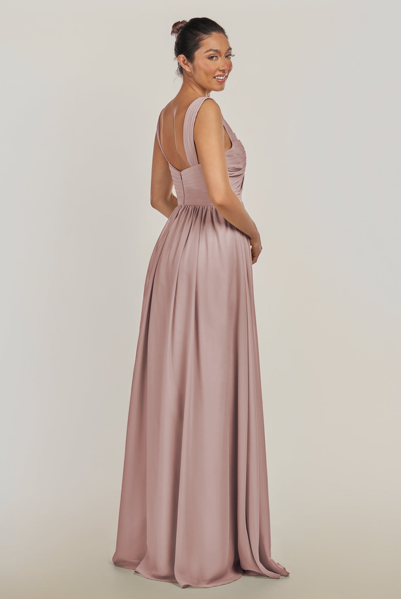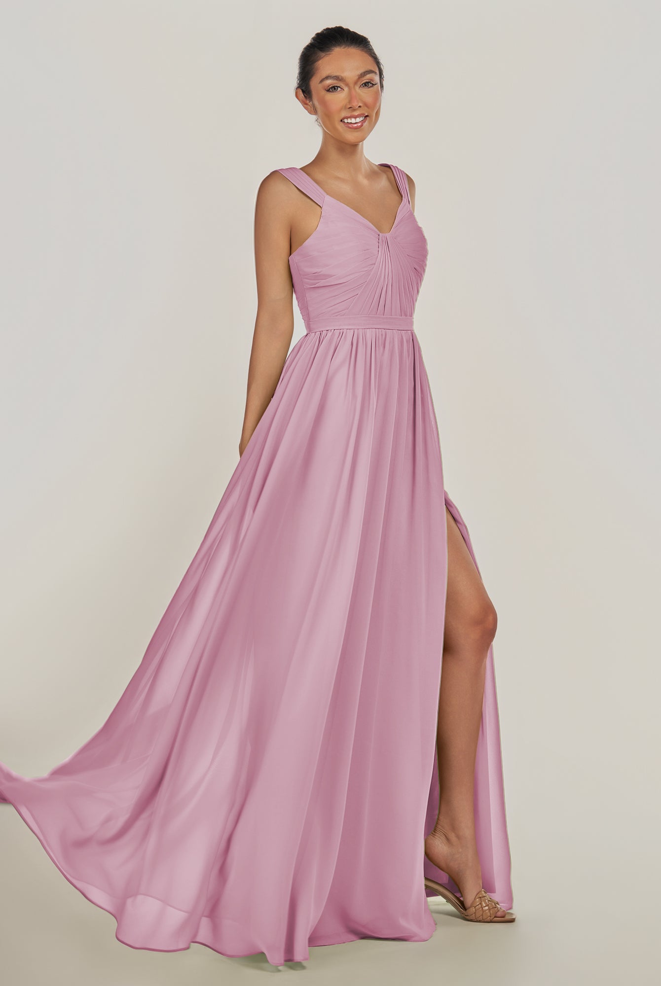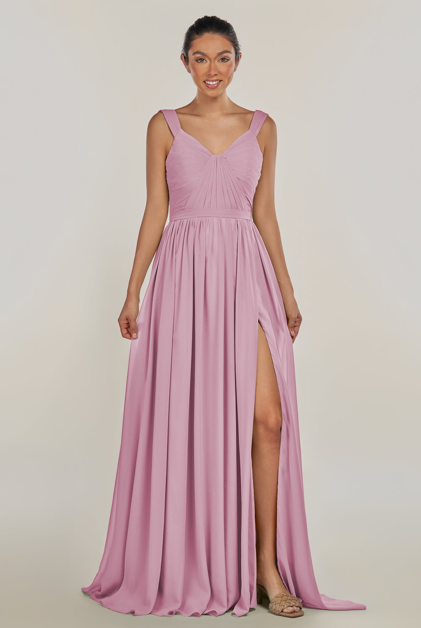 Fira | Vintage Mauve - A Line Chiffon V Neck Pleated Long Bridesmaid Dress with Slit