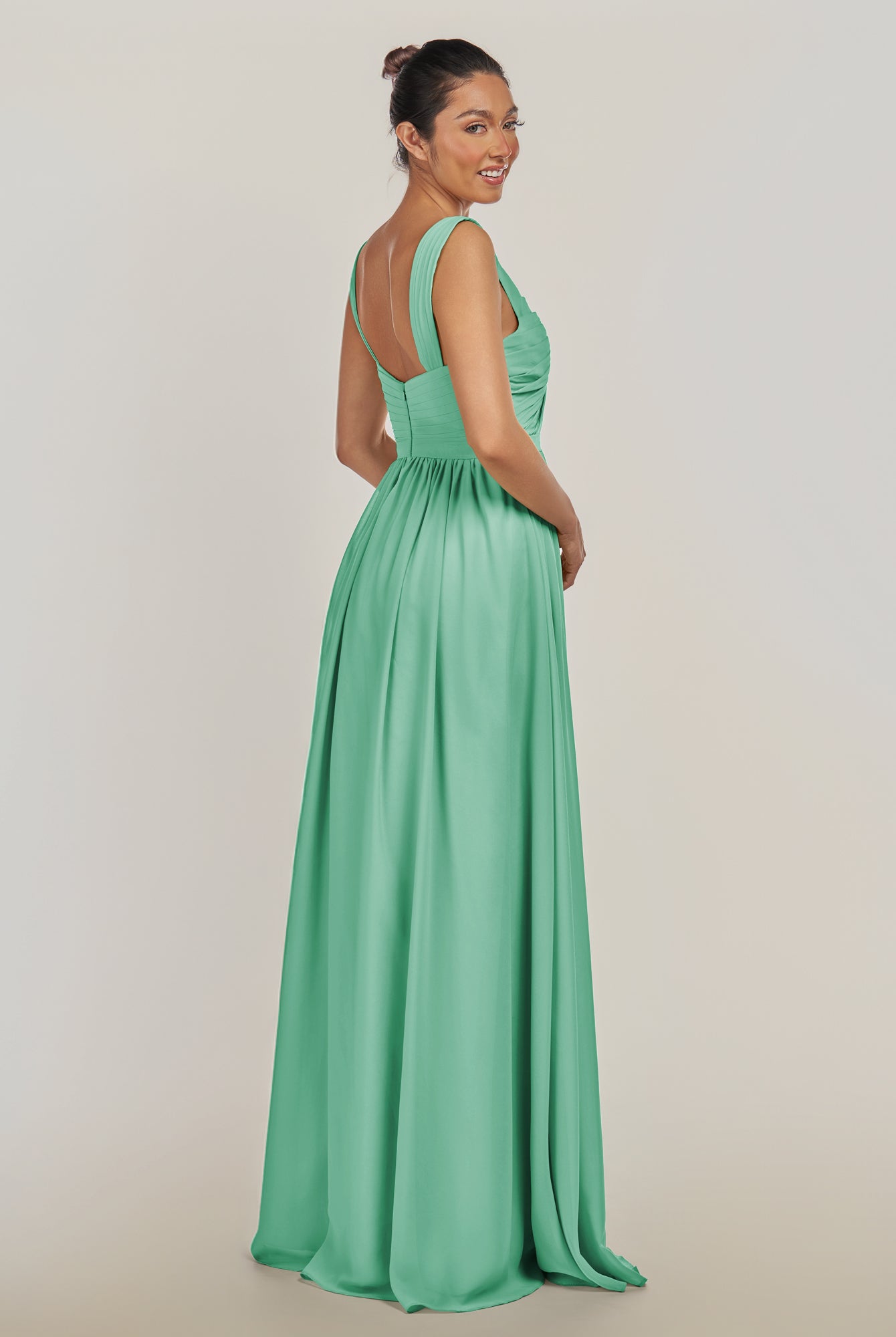 Fira | Turquoise - A Line Chiffon V Neck Pleated Long Bridesmaid Dress with Slit