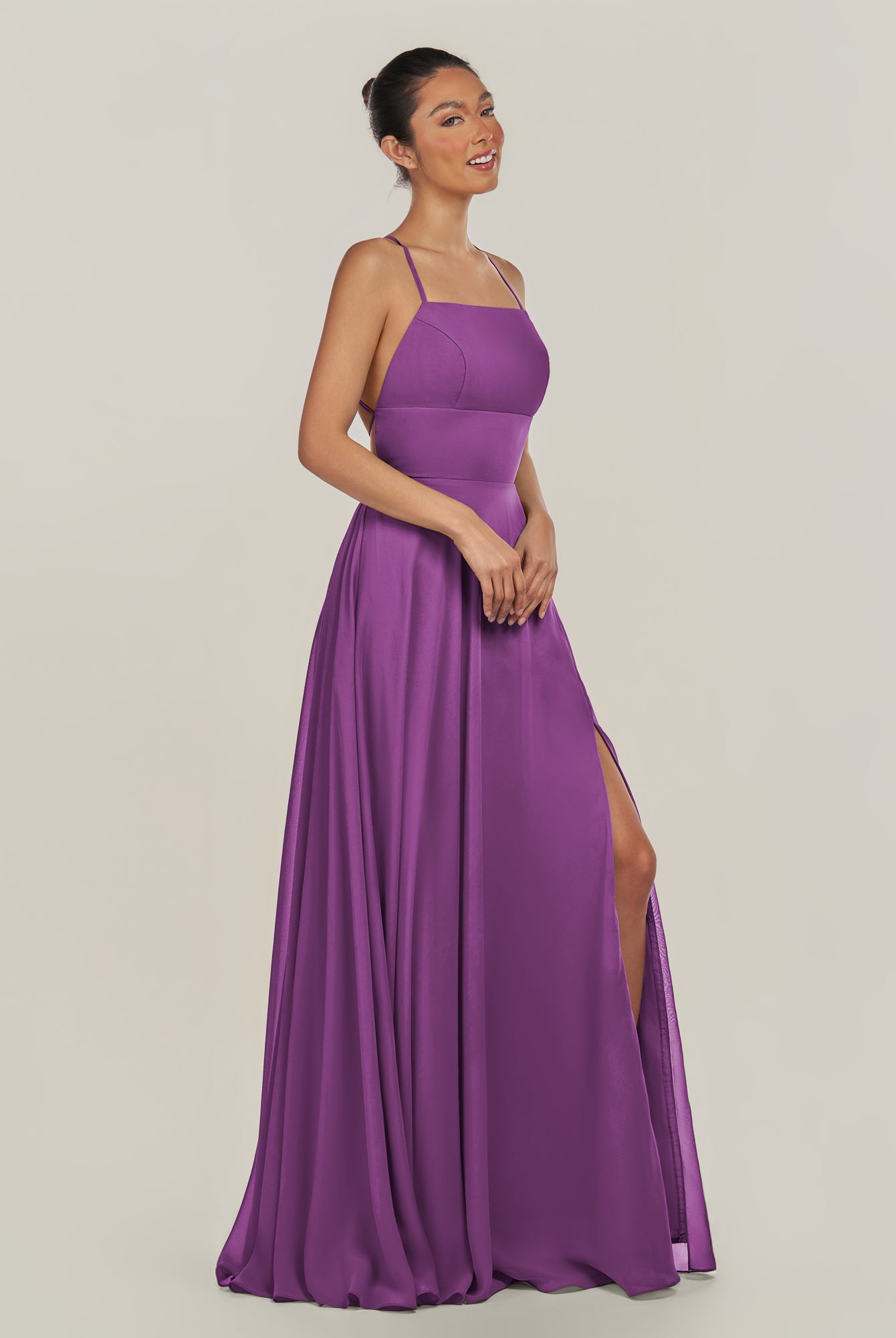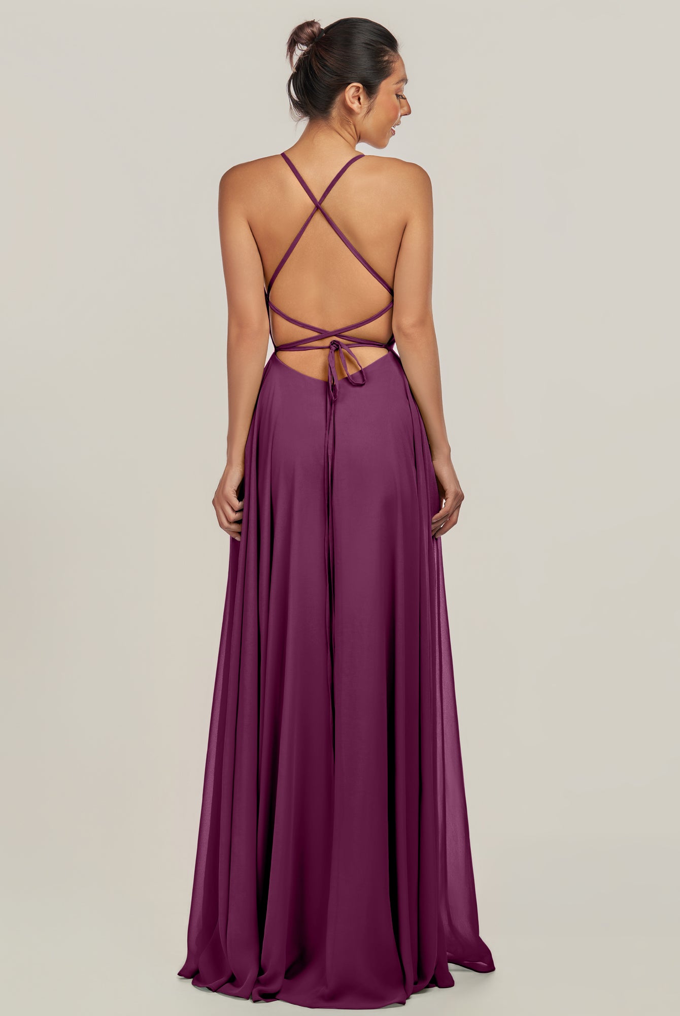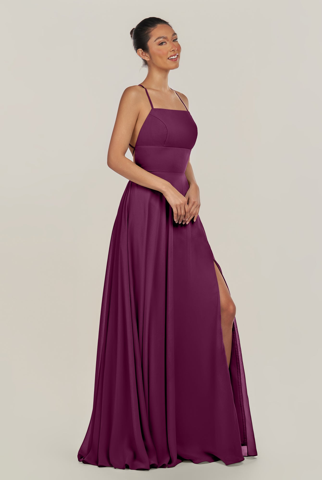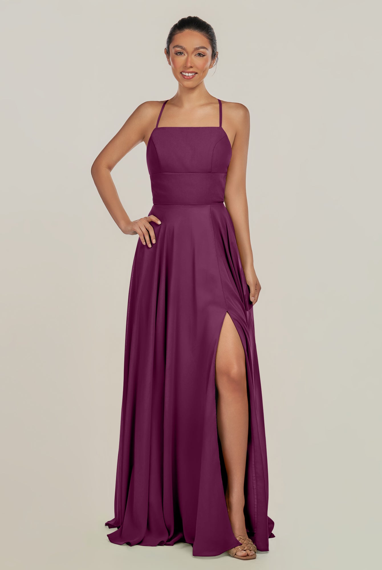 Dena | Wisteria - A Line Chiffon Spaghetti Straps Long Bridesmaid Dress with Slit