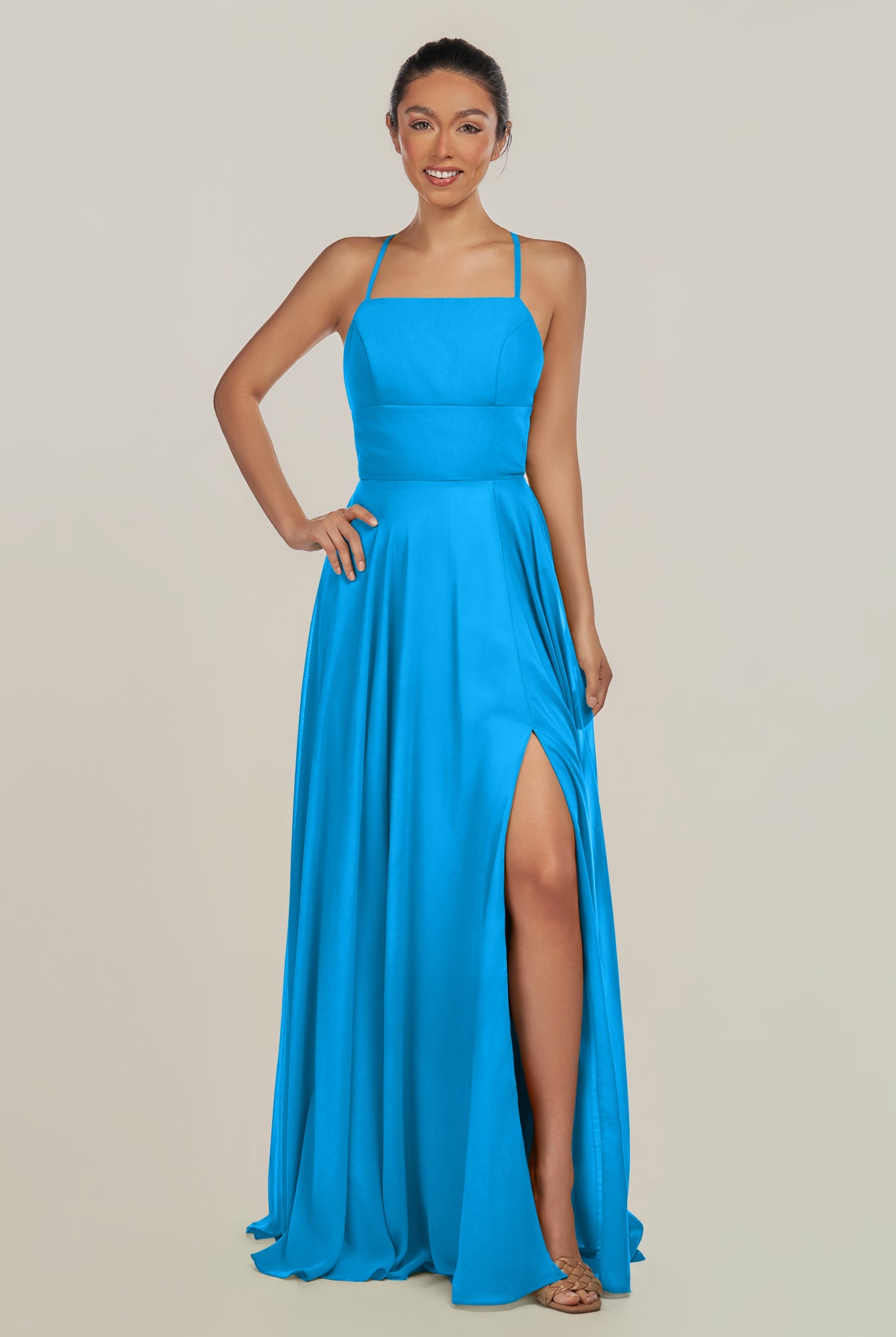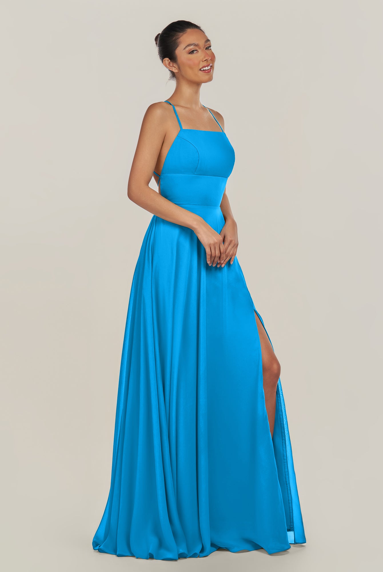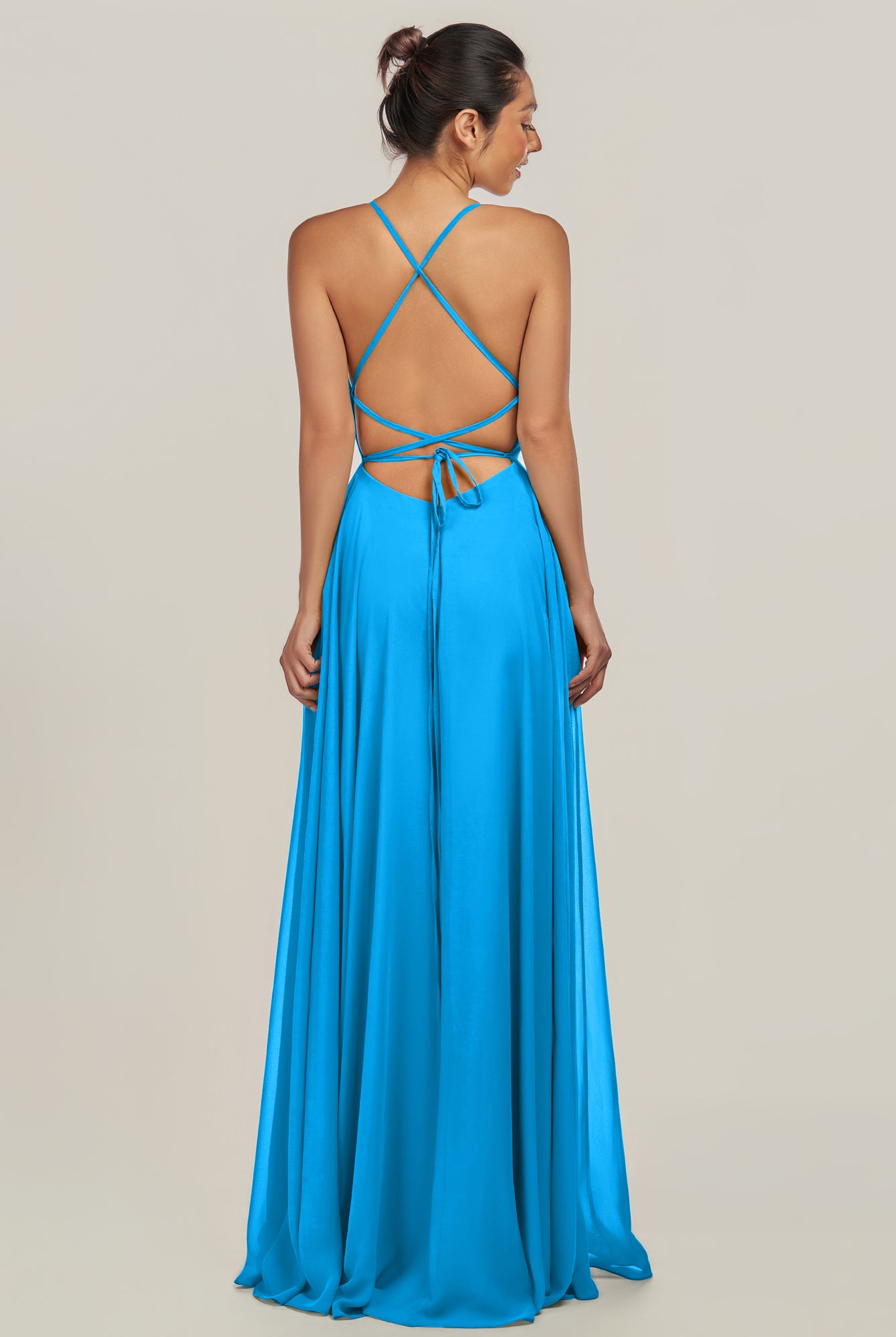 Dena | Tahiti - A Line Chiffon Spaghetti Straps Long Bridesmaid Dress with Slit