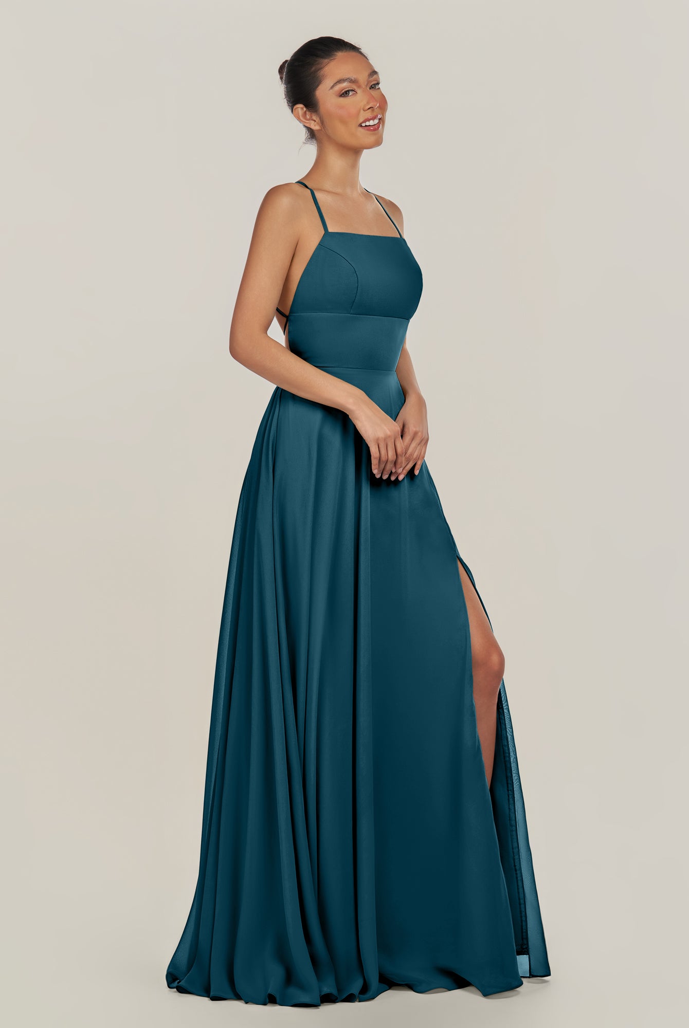 Dena | Dark Teal - A Line Chiffon Spaghetti Straps Long Bridesmaid Dress with Slit