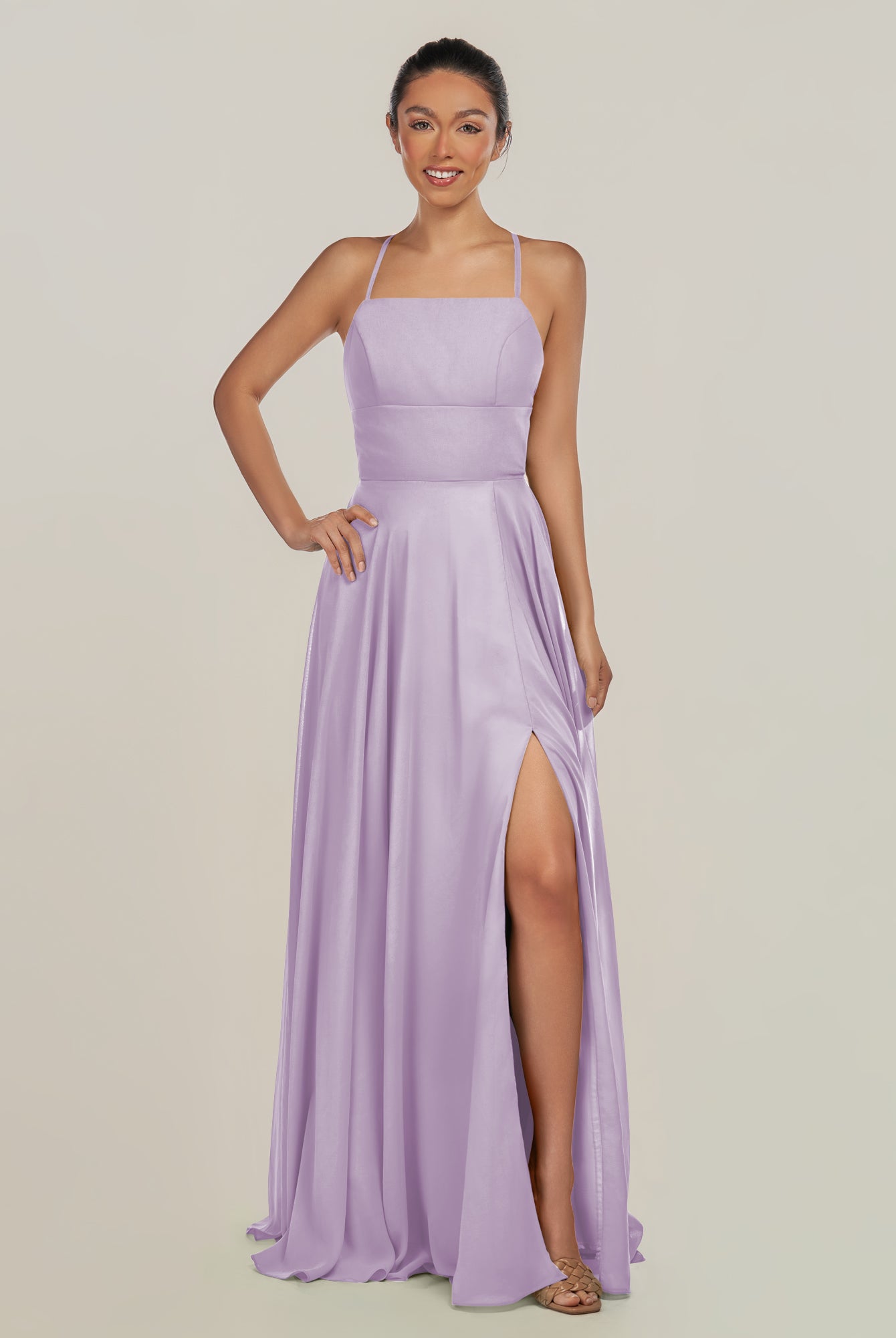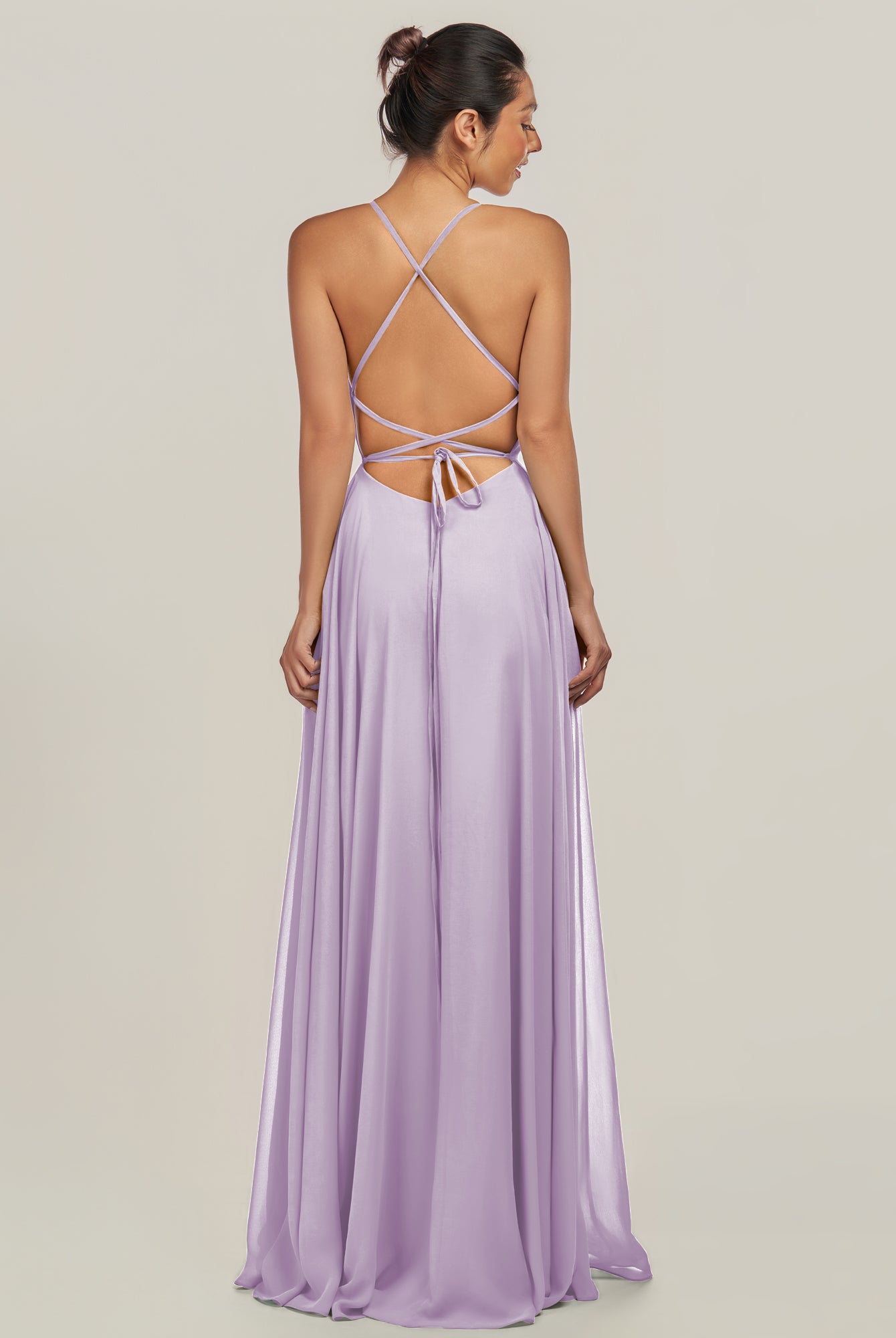 Dena | Lavender - A Line Chiffon Spaghetti Straps Long Bridesmaid Dress with Slit