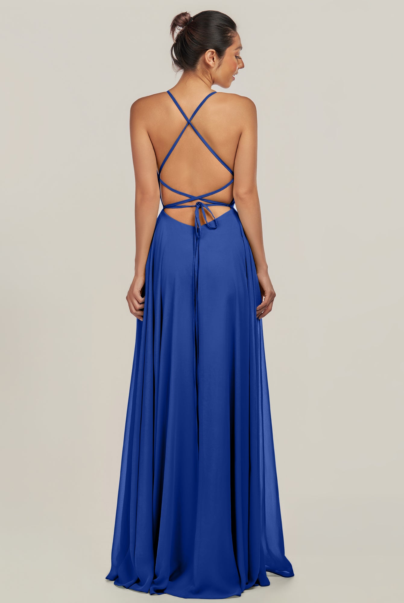 Dena | Royal Blue - A Line Chiffon Spaghetti Straps Long Bridesmaid Dress with Slit