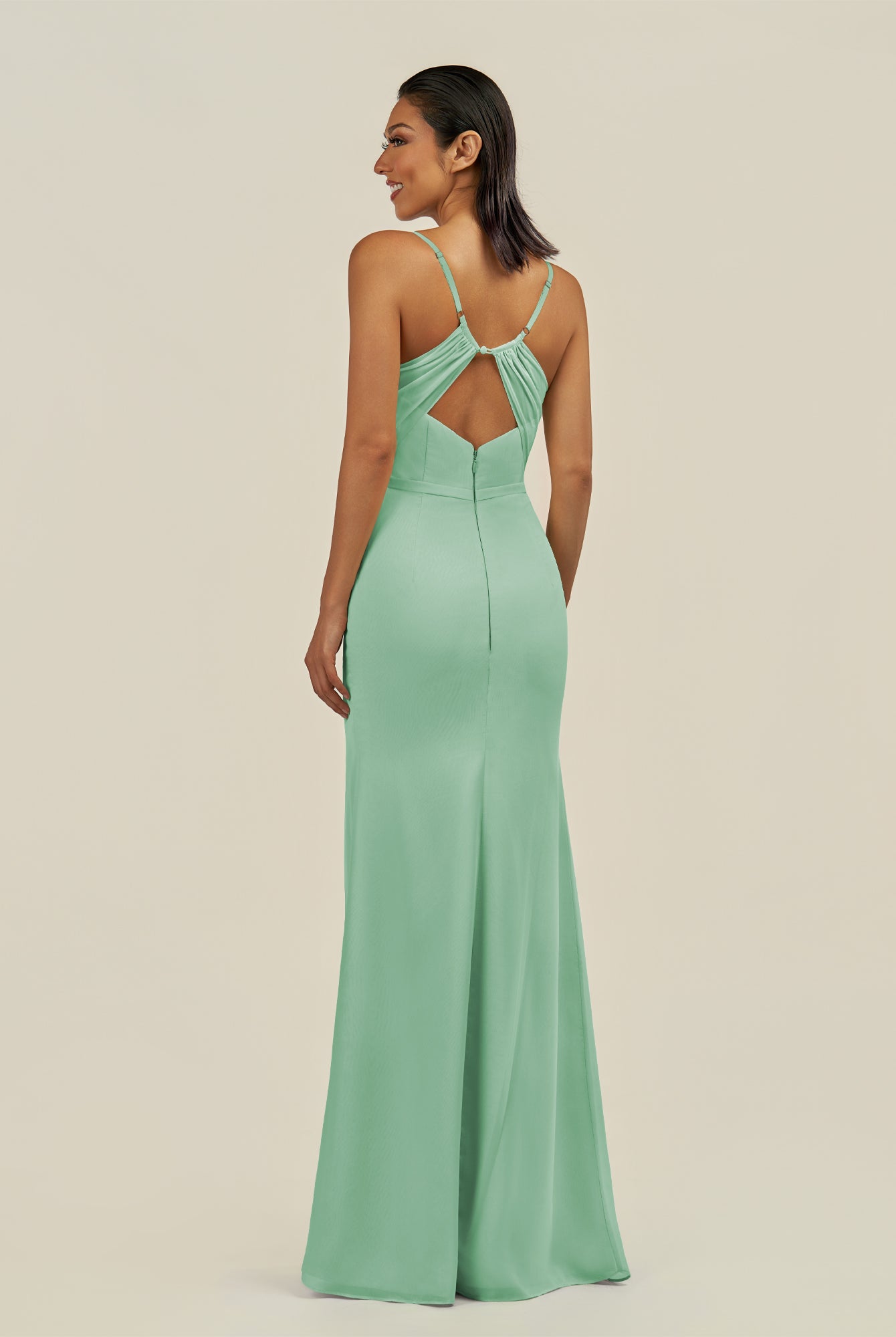 Unity | Pale Pistachio - Sheath Spaghetti Straps Chiffon Ruched Long Bridesmaid Dress