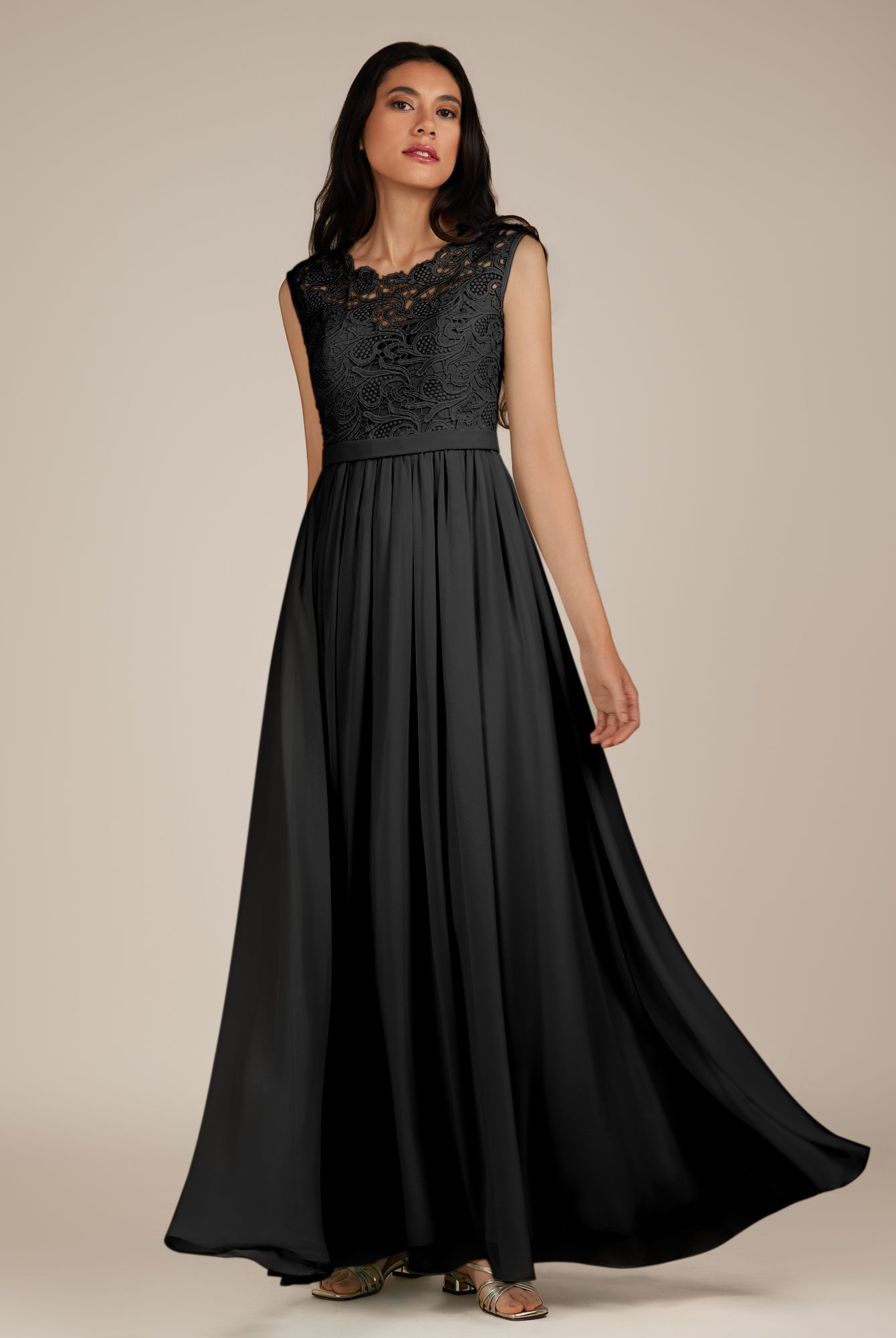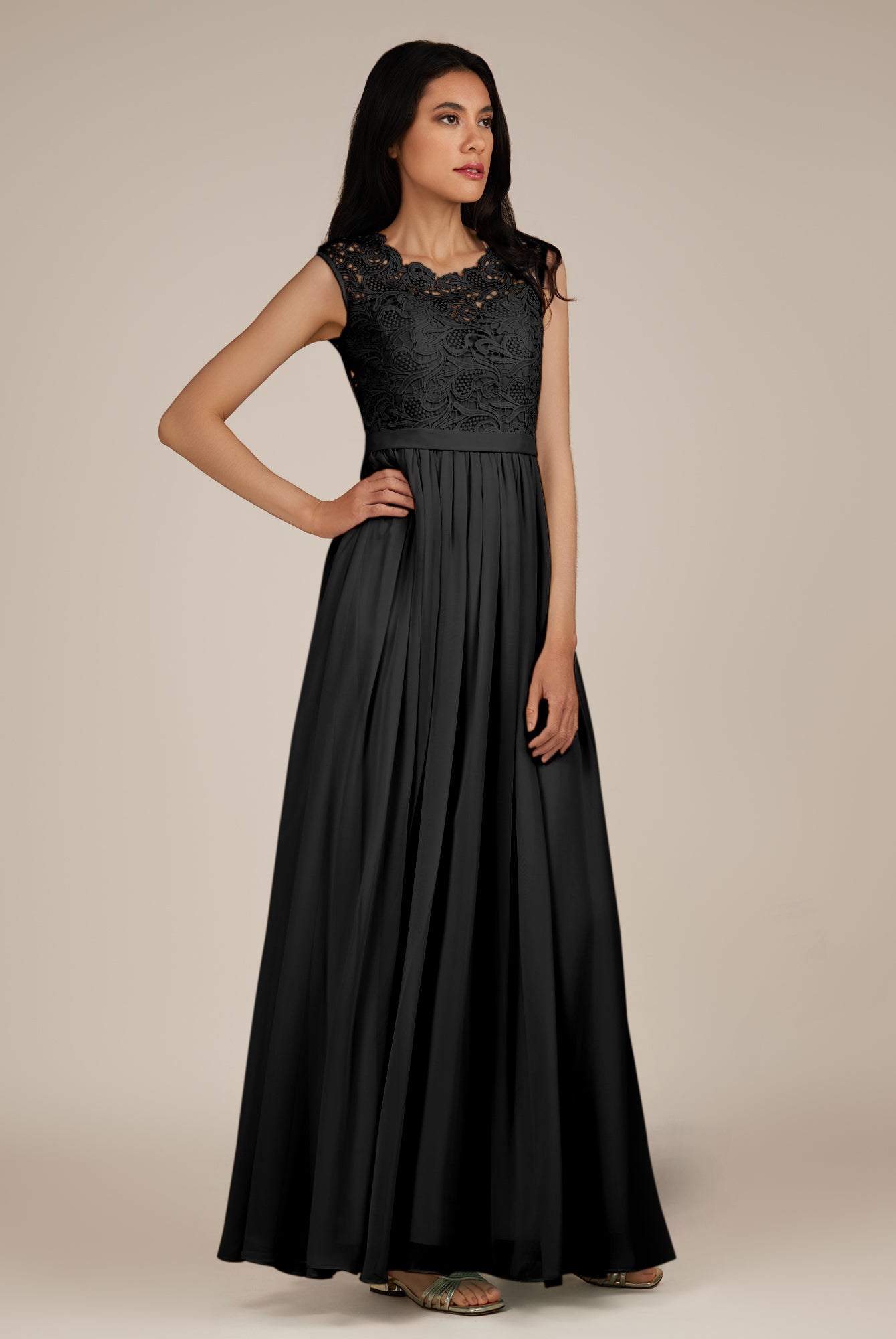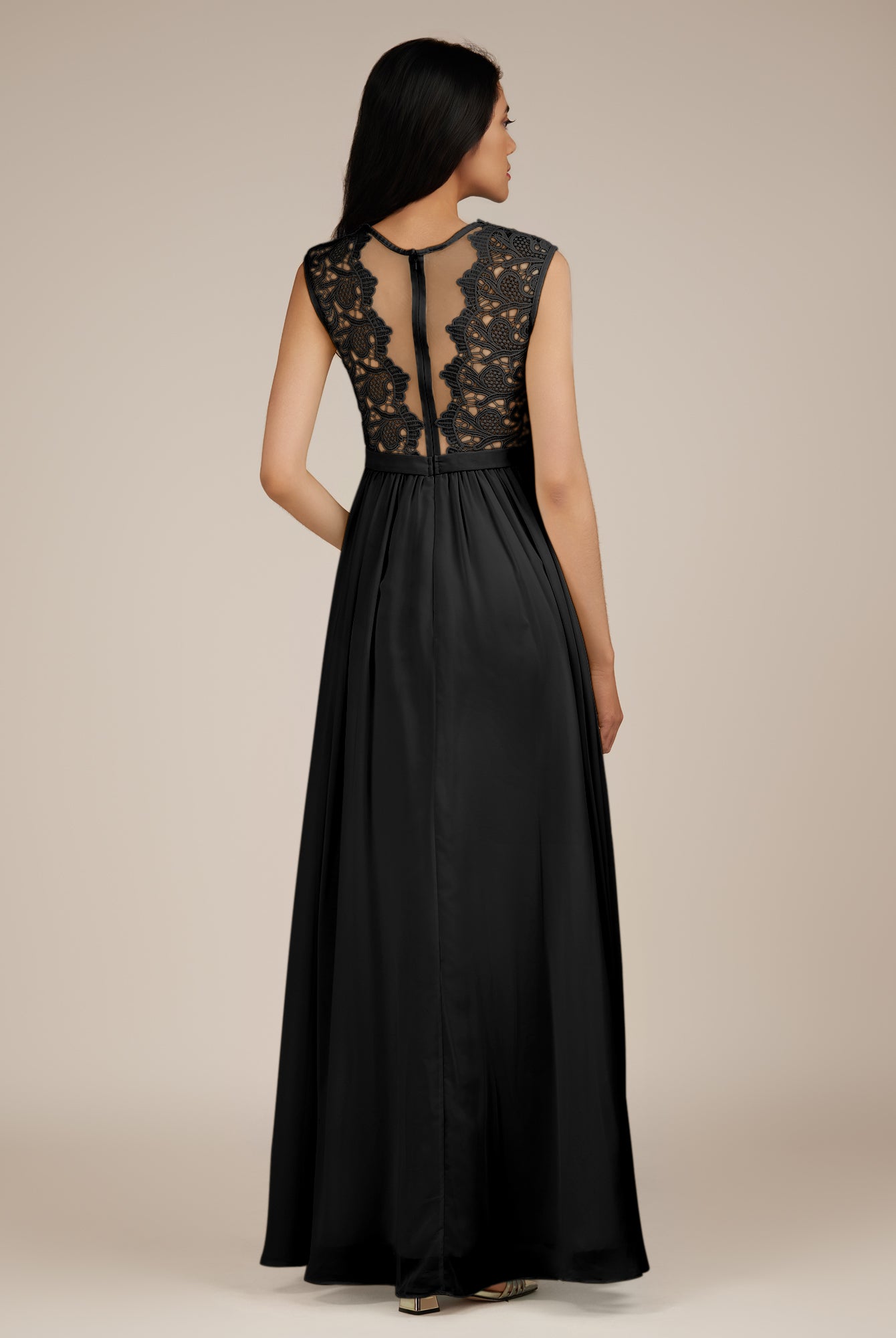 Niamh | Black - A Line Illusion Neck Chiffon Long Bridesmaid Dress