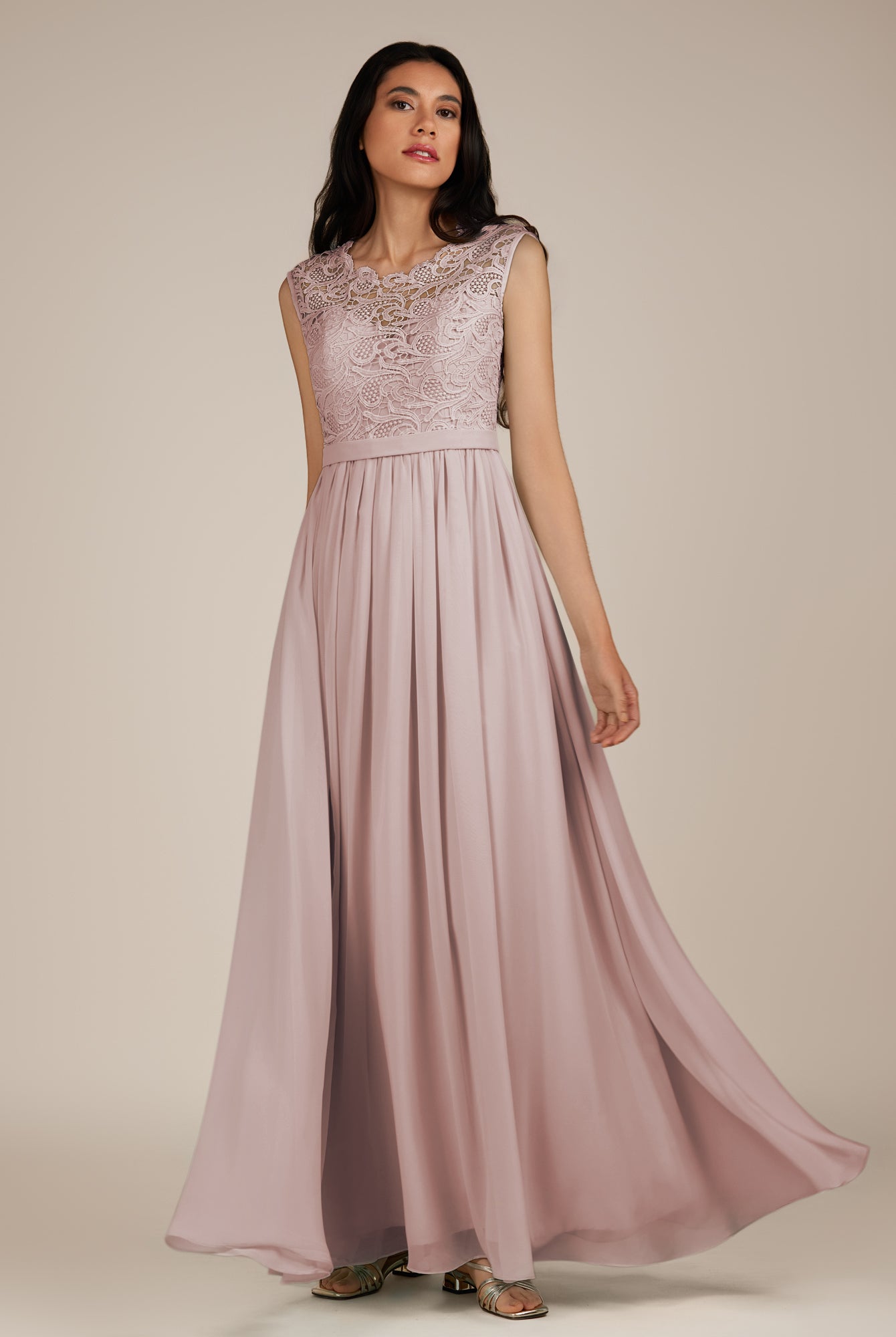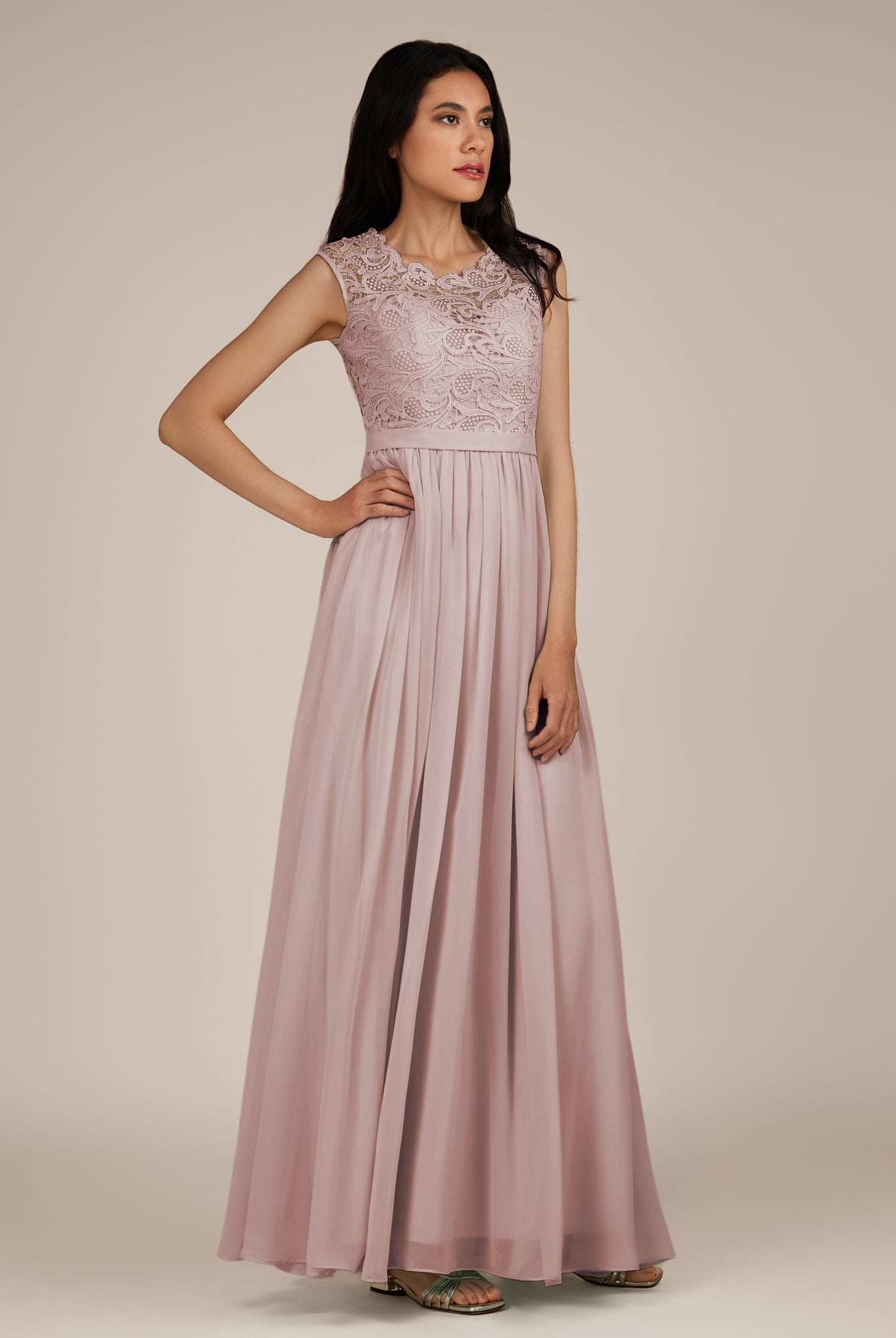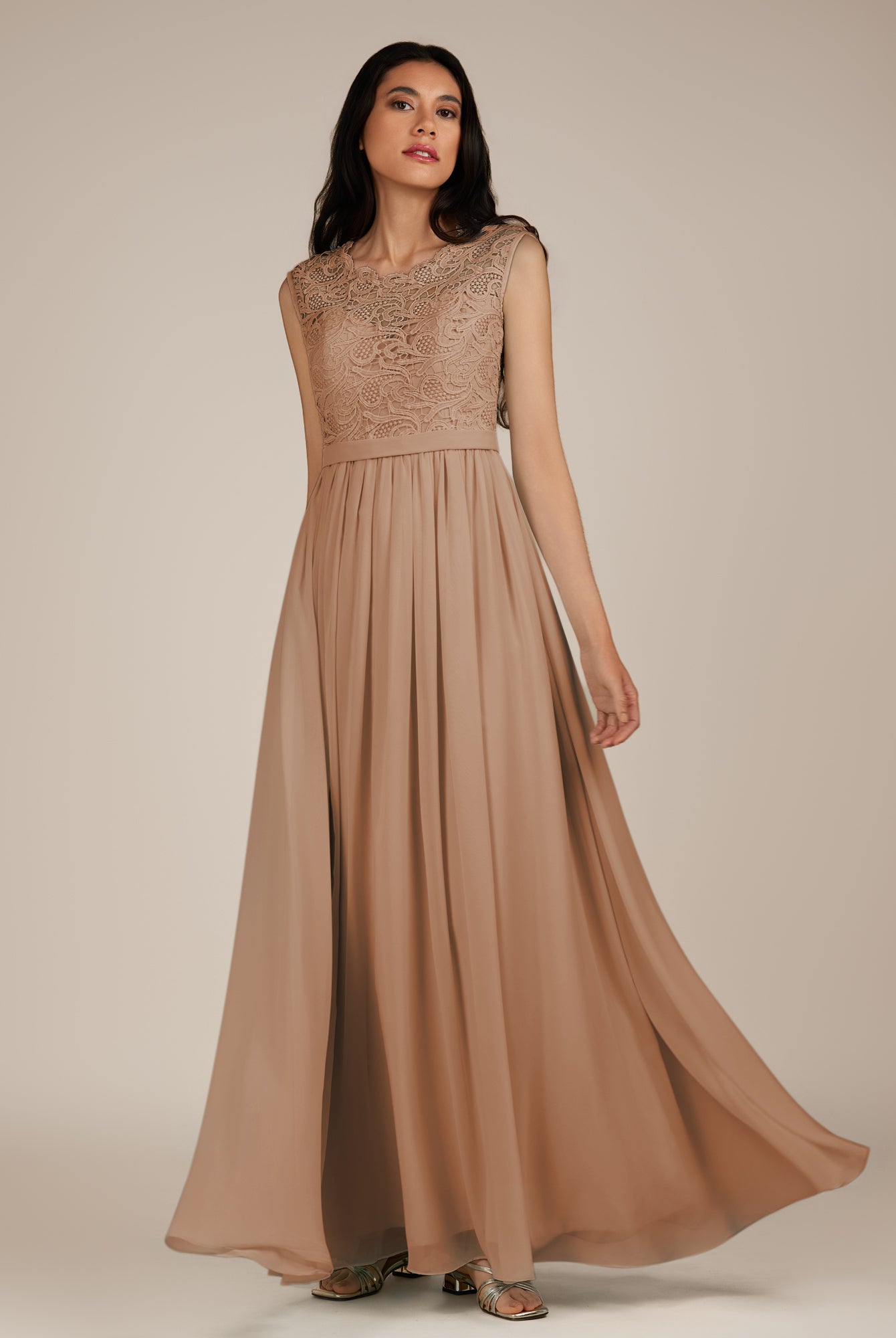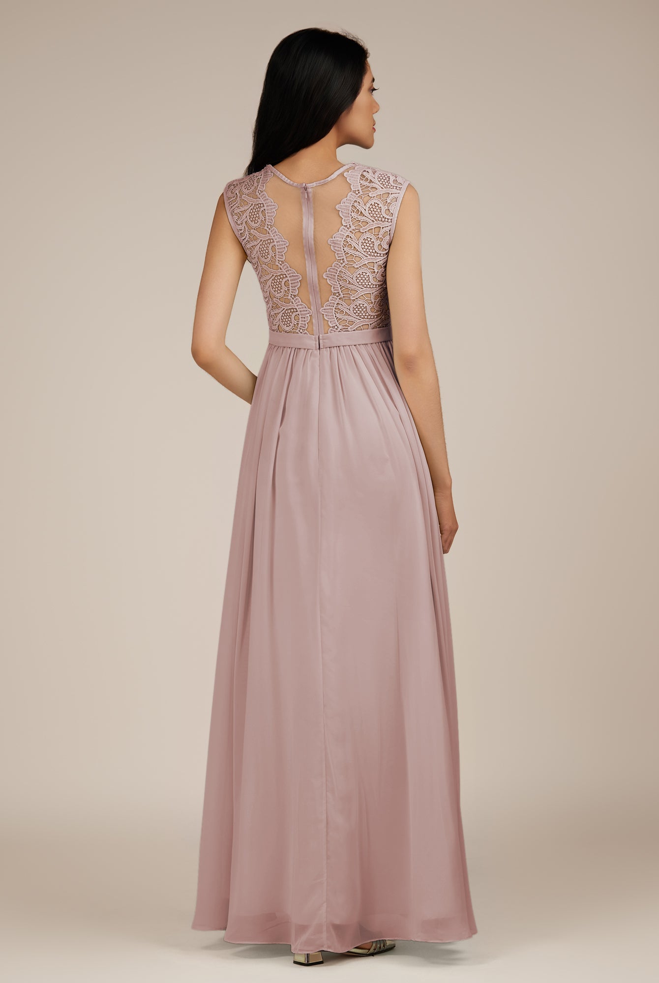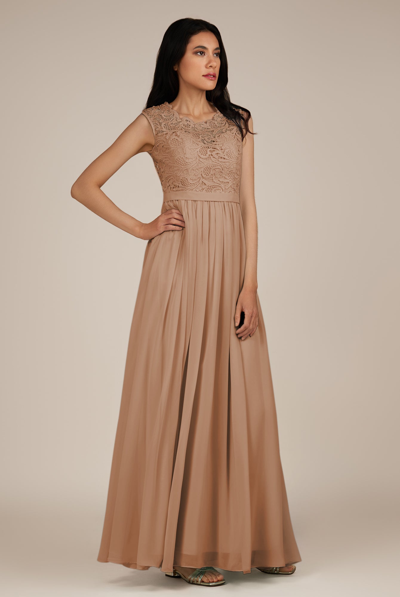 Niamh | Toffee - A Line Illusion Neck Chiffon Long Bridesmaid Dress