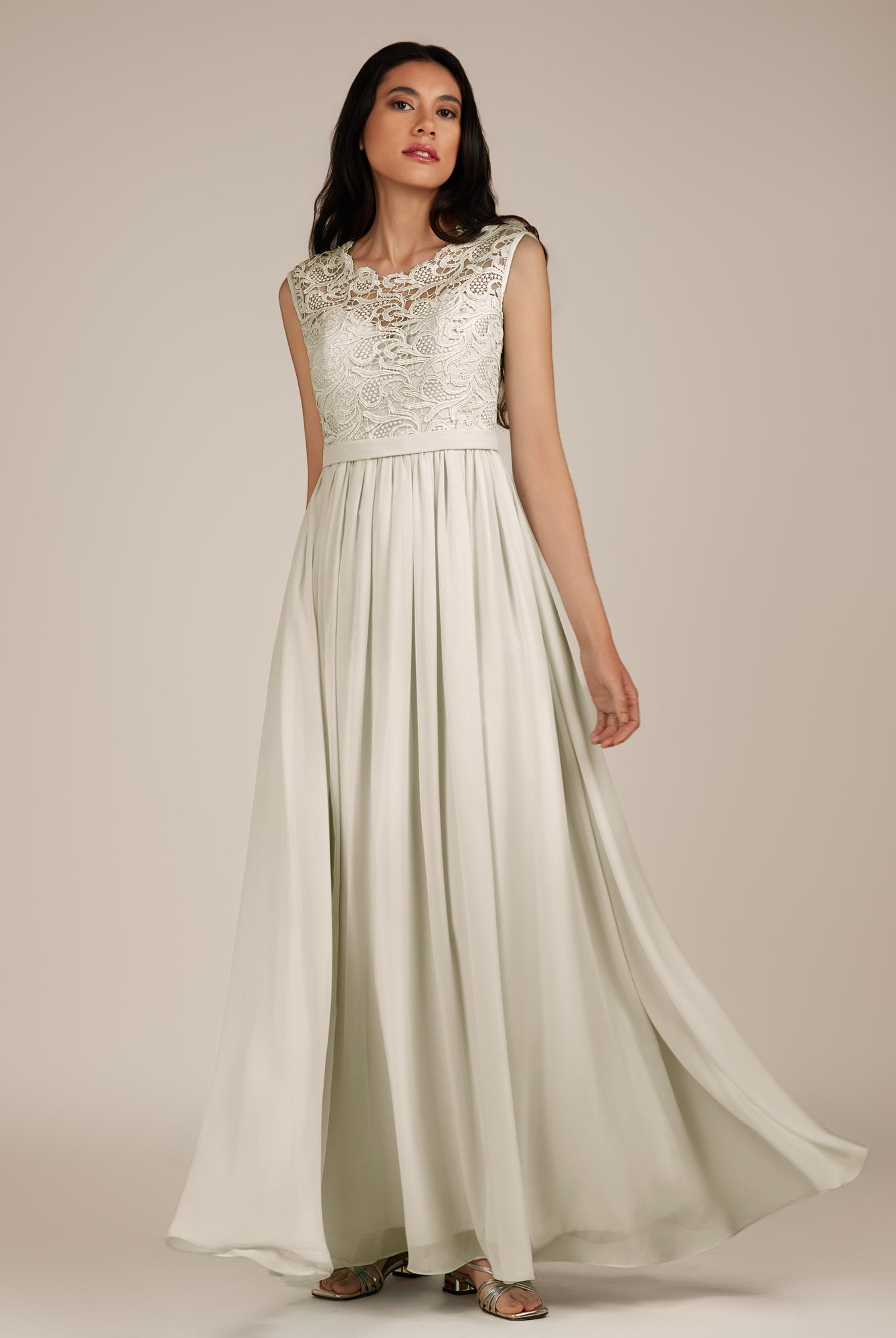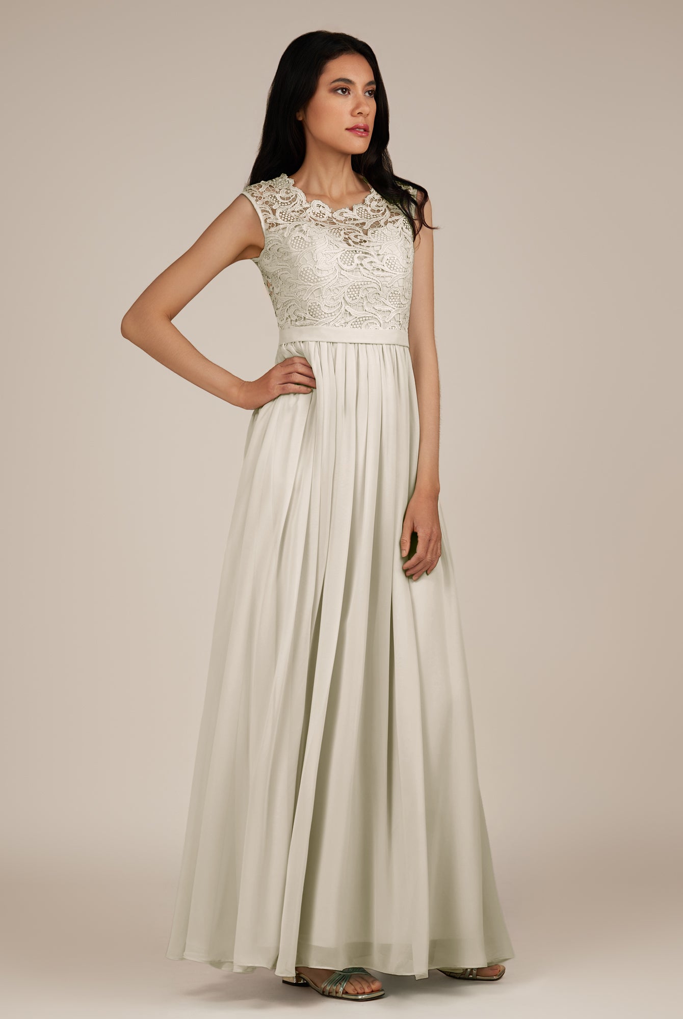Niamh | Dove Gray - A Line Illusion Neck Chiffon Long Bridesmaid Dress