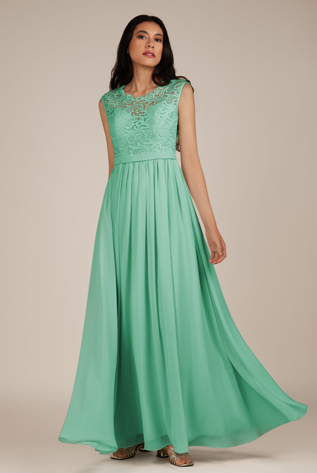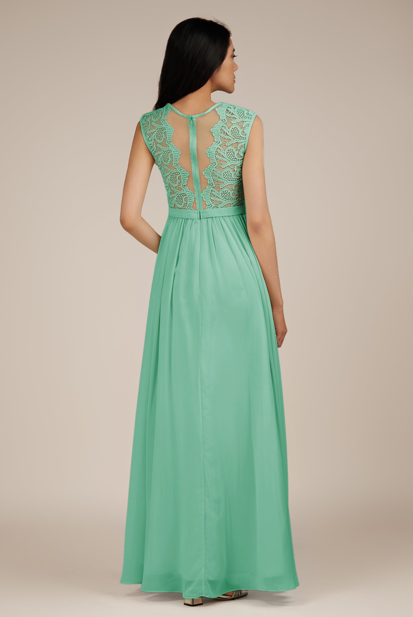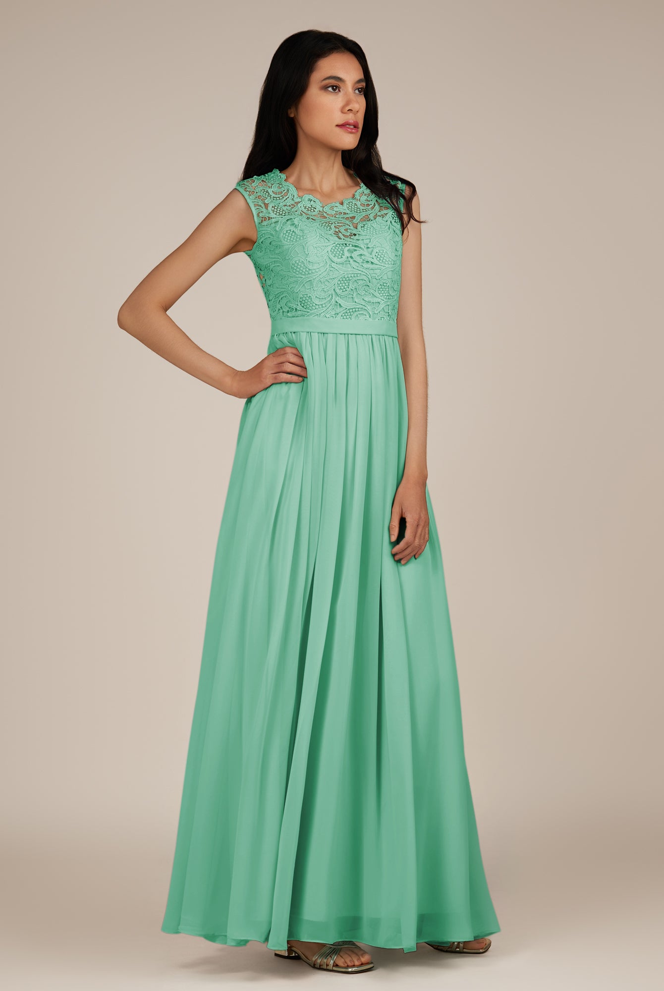 Niamh | Turquoise - A Line Illusion Neck Chiffon Long Bridesmaid Dress