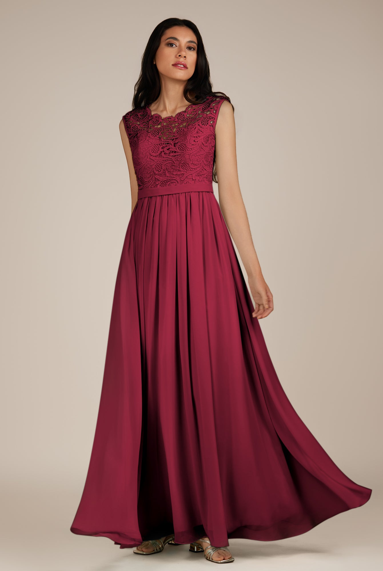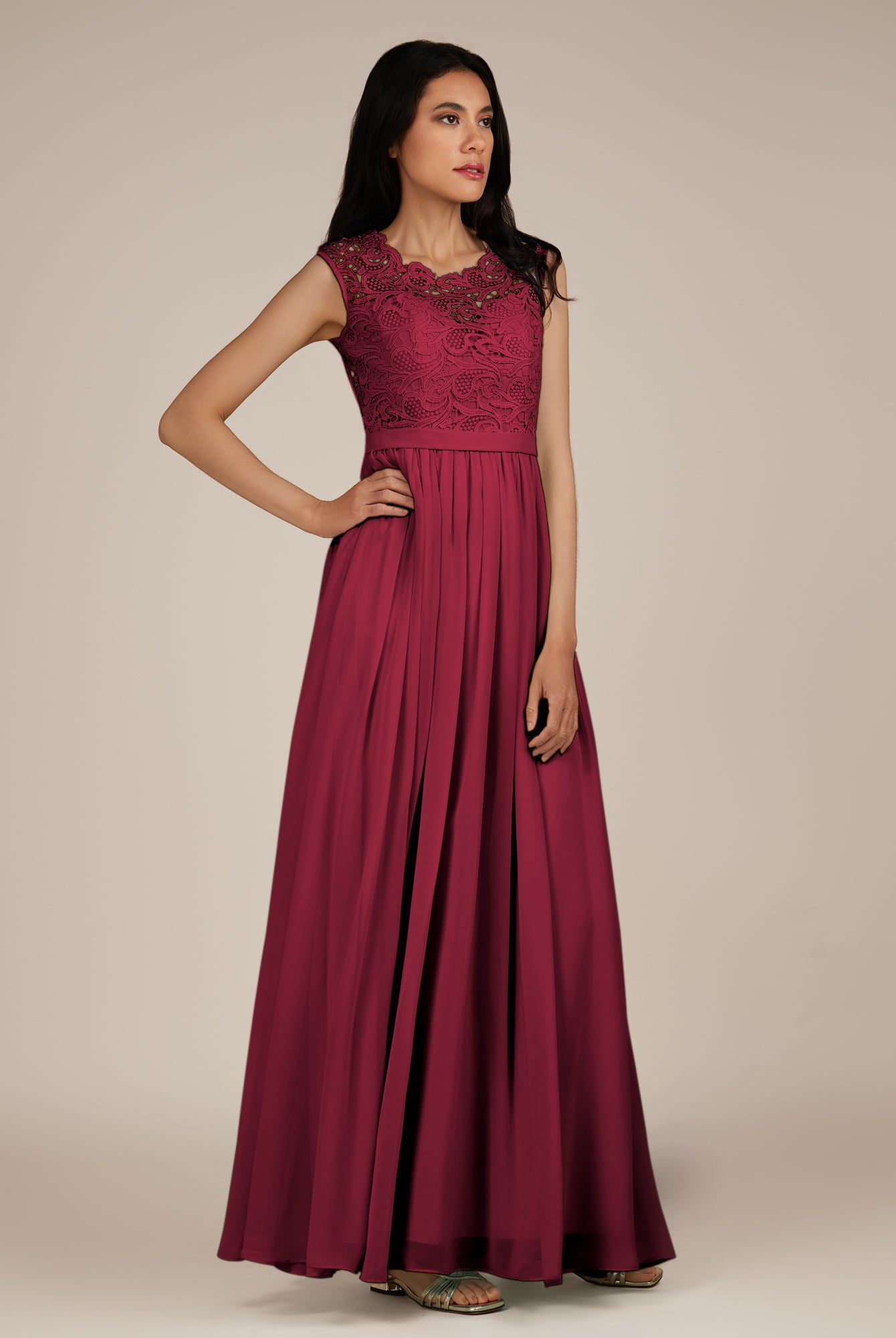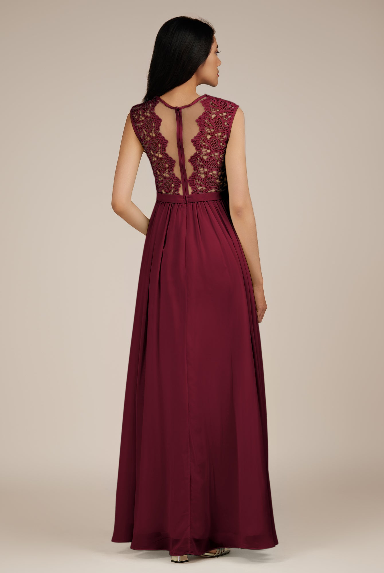 Niamh | Merlot - A Line Illusion Neck Chiffon Long Bridesmaid Dress