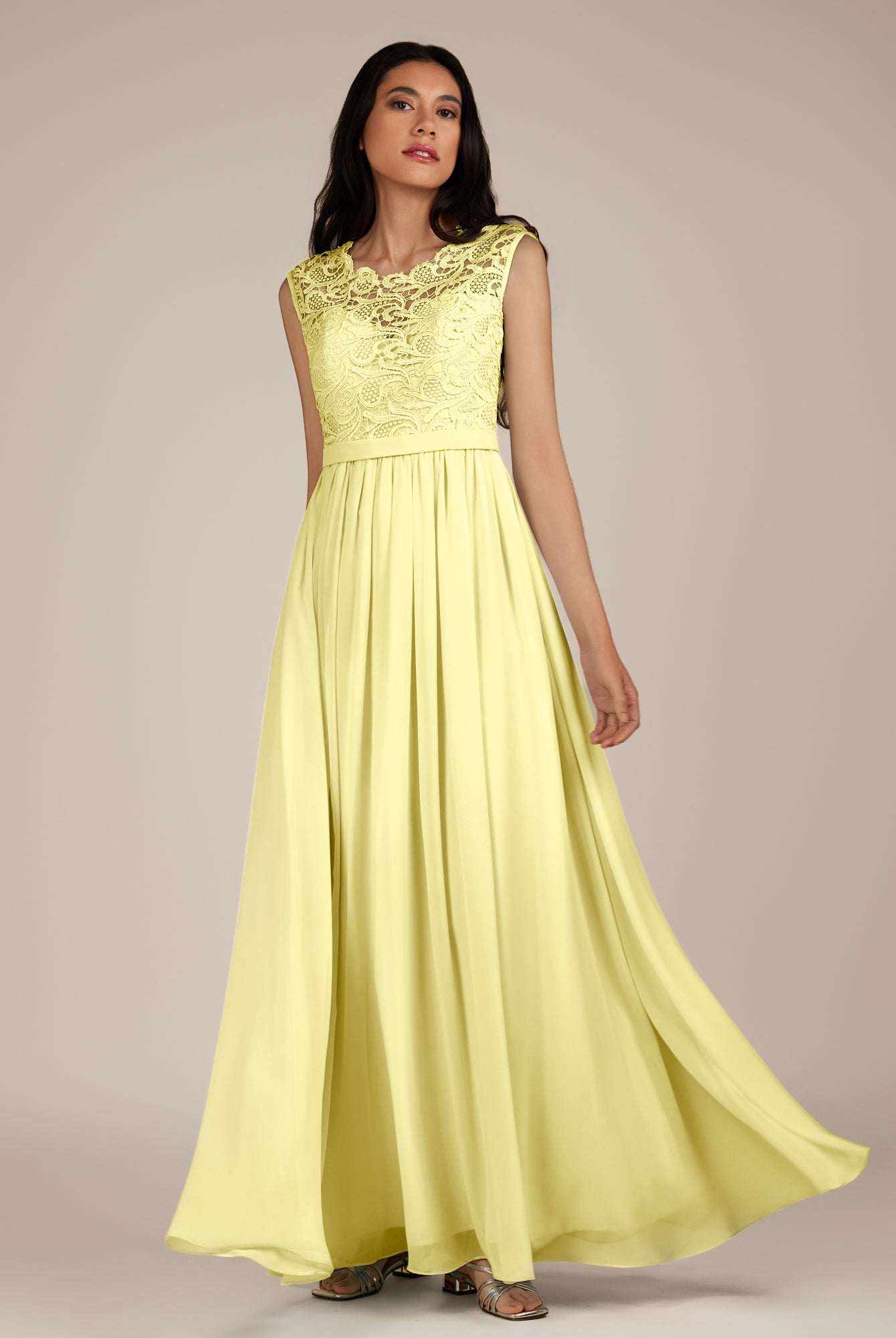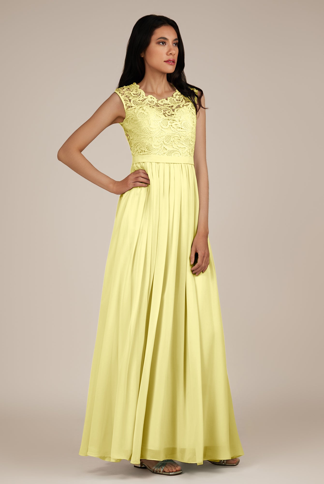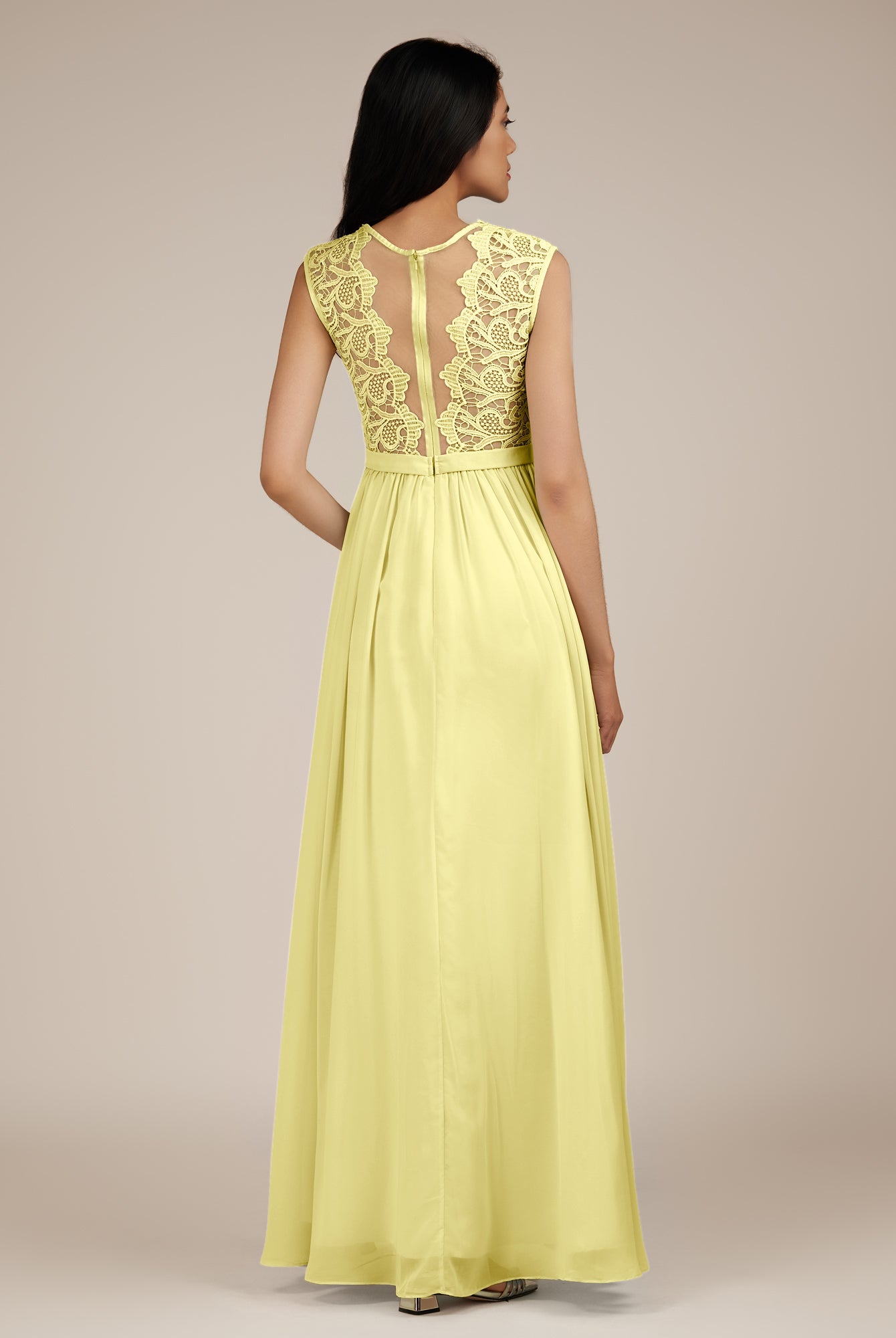 Niamh | Buttercup - A Line Illusion Neck Chiffon Long Bridesmaid Dress
