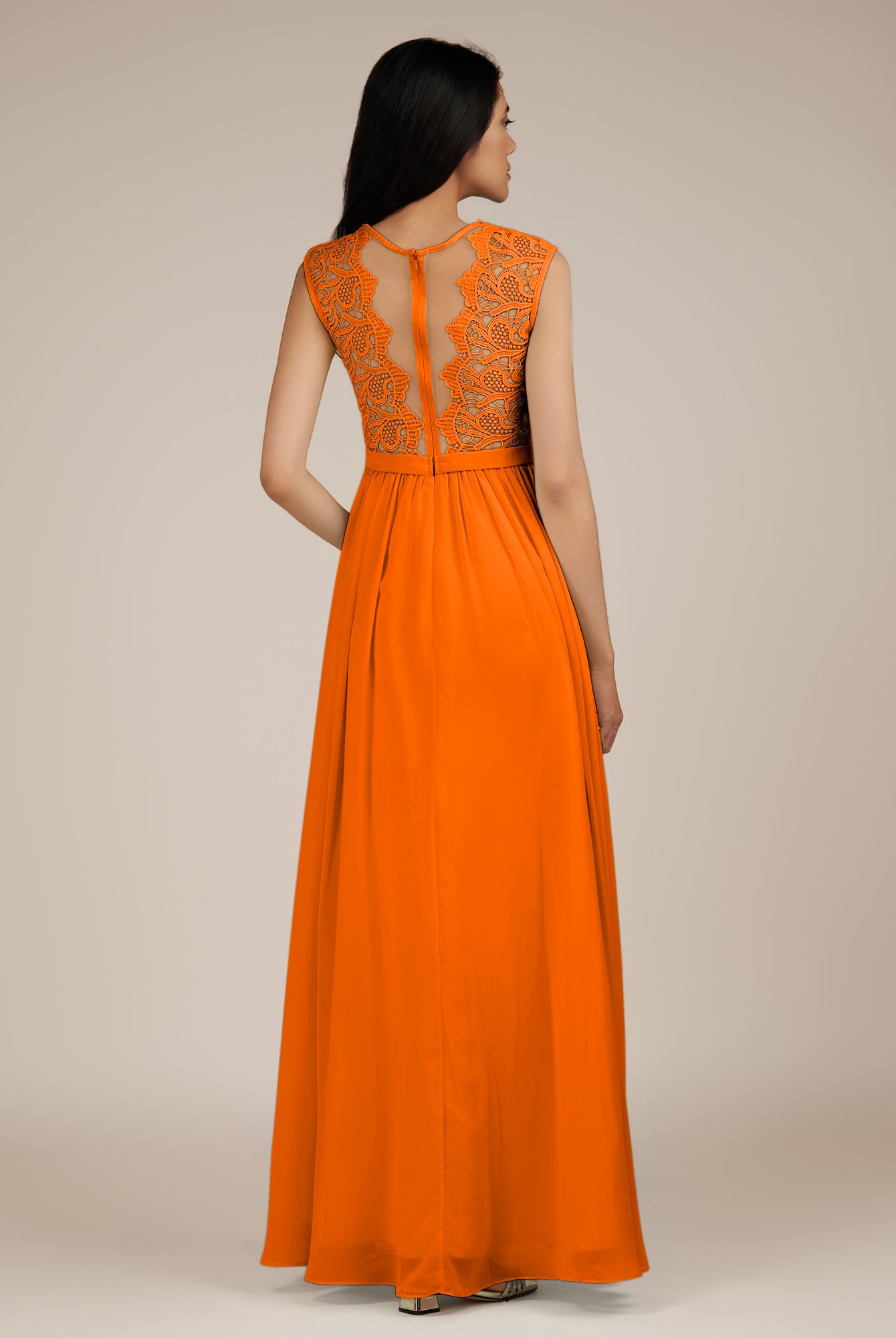Niamh | Cinnamon - A Line Illusion Neck Chiffon Long Bridesmaid Dress