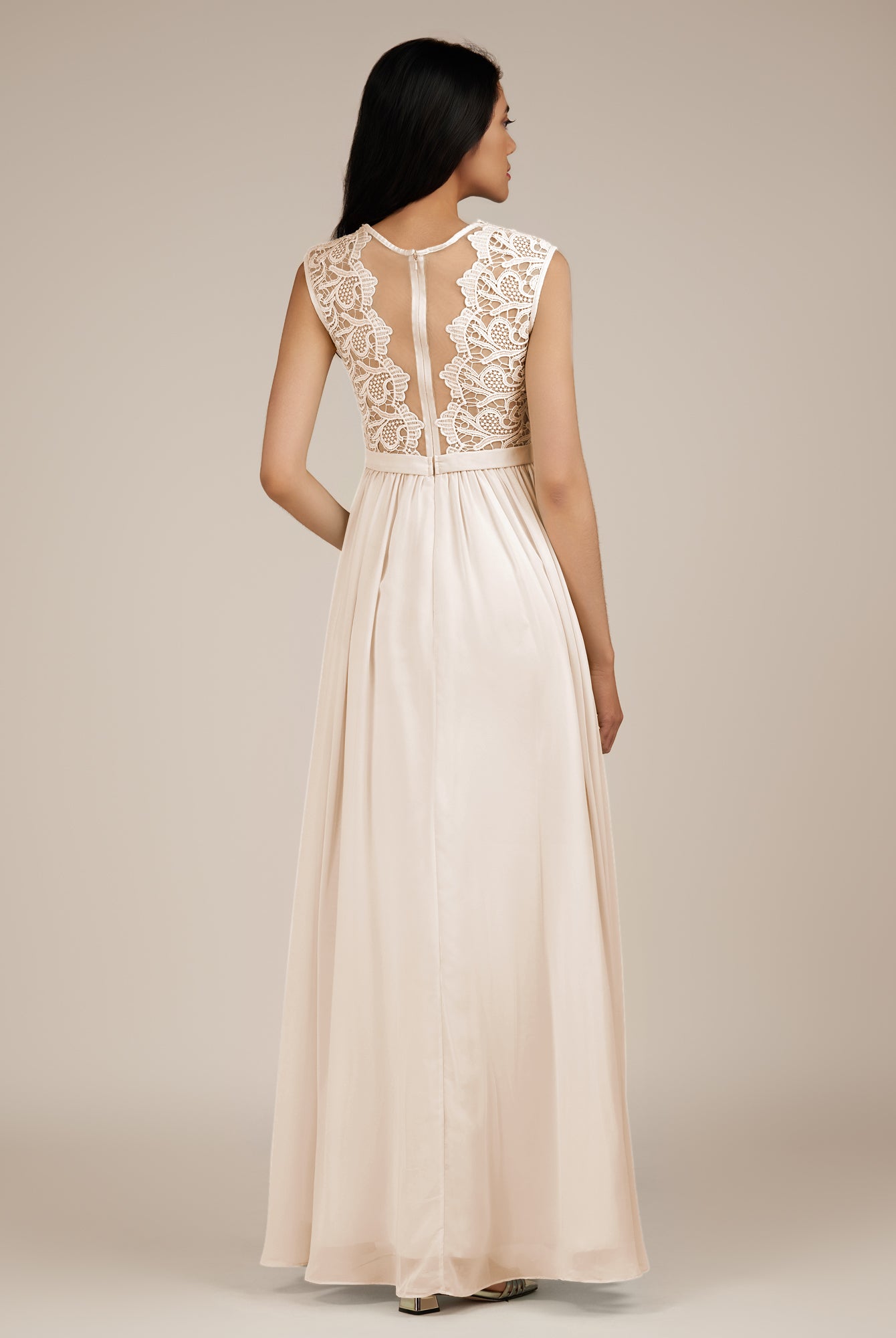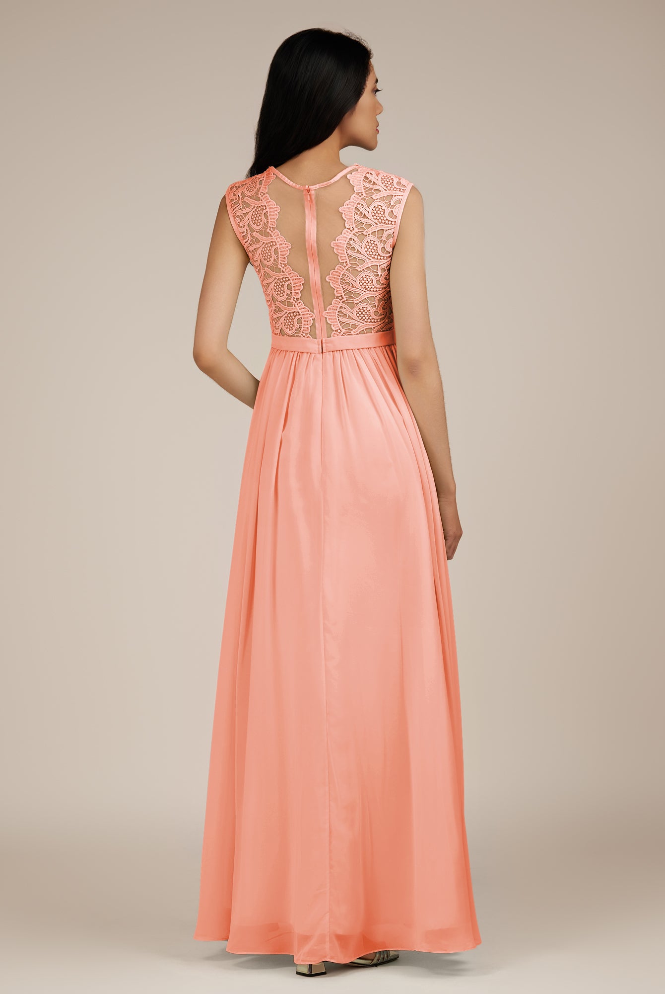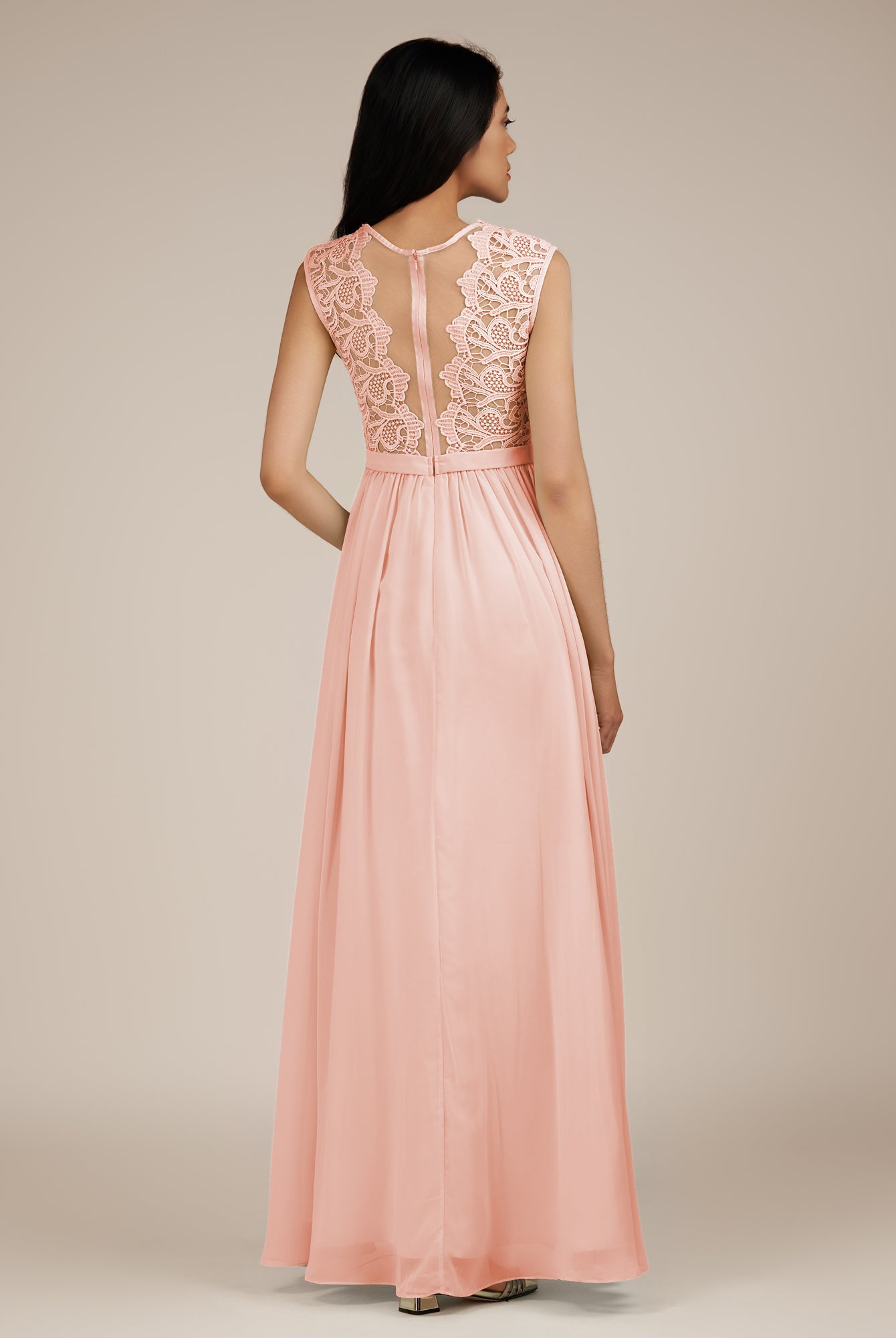 Niamh | Champagne Rose - A Line Illusion Neck Chiffon Long Bridesmaid Dress