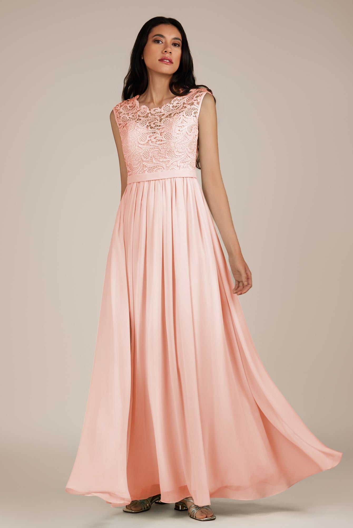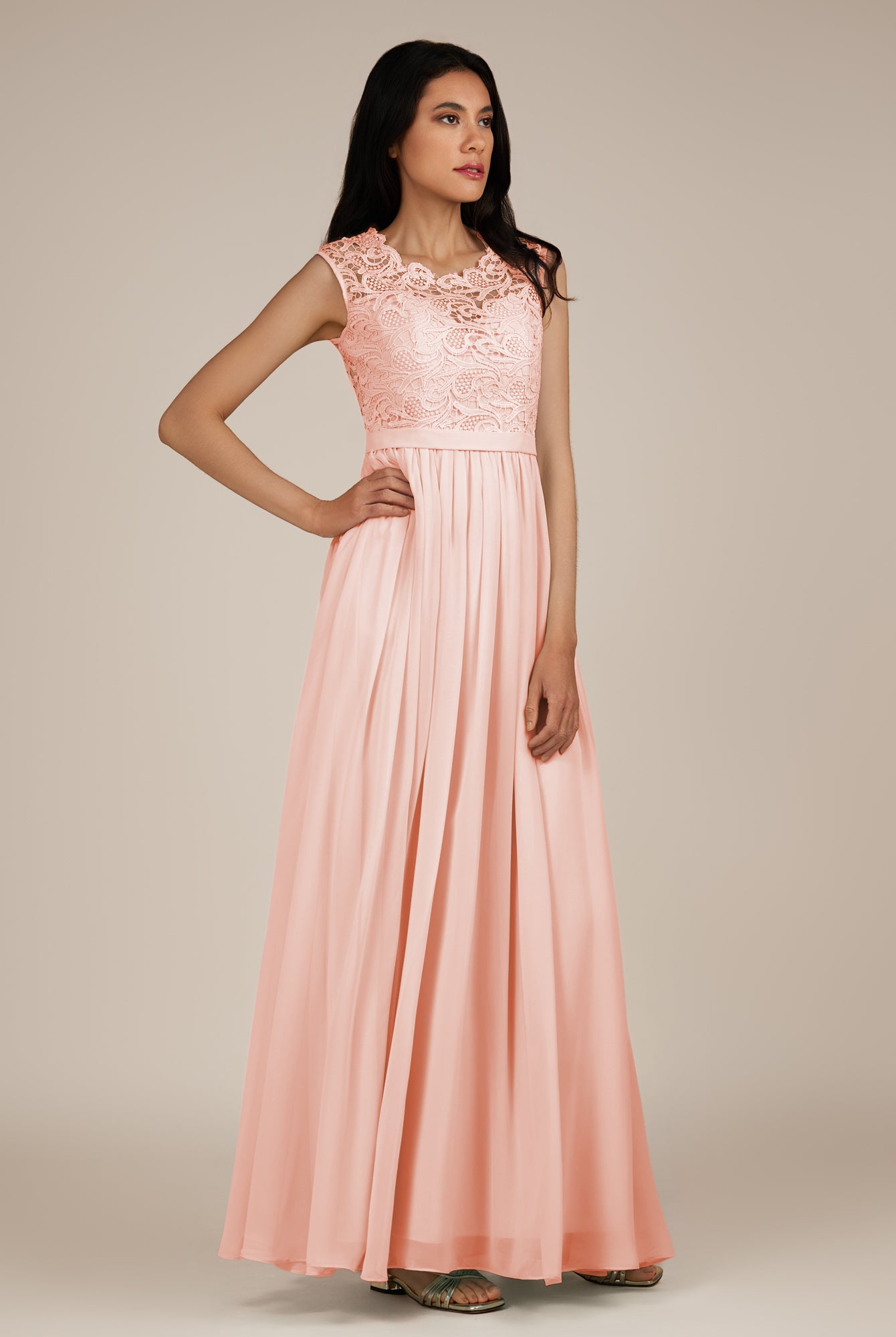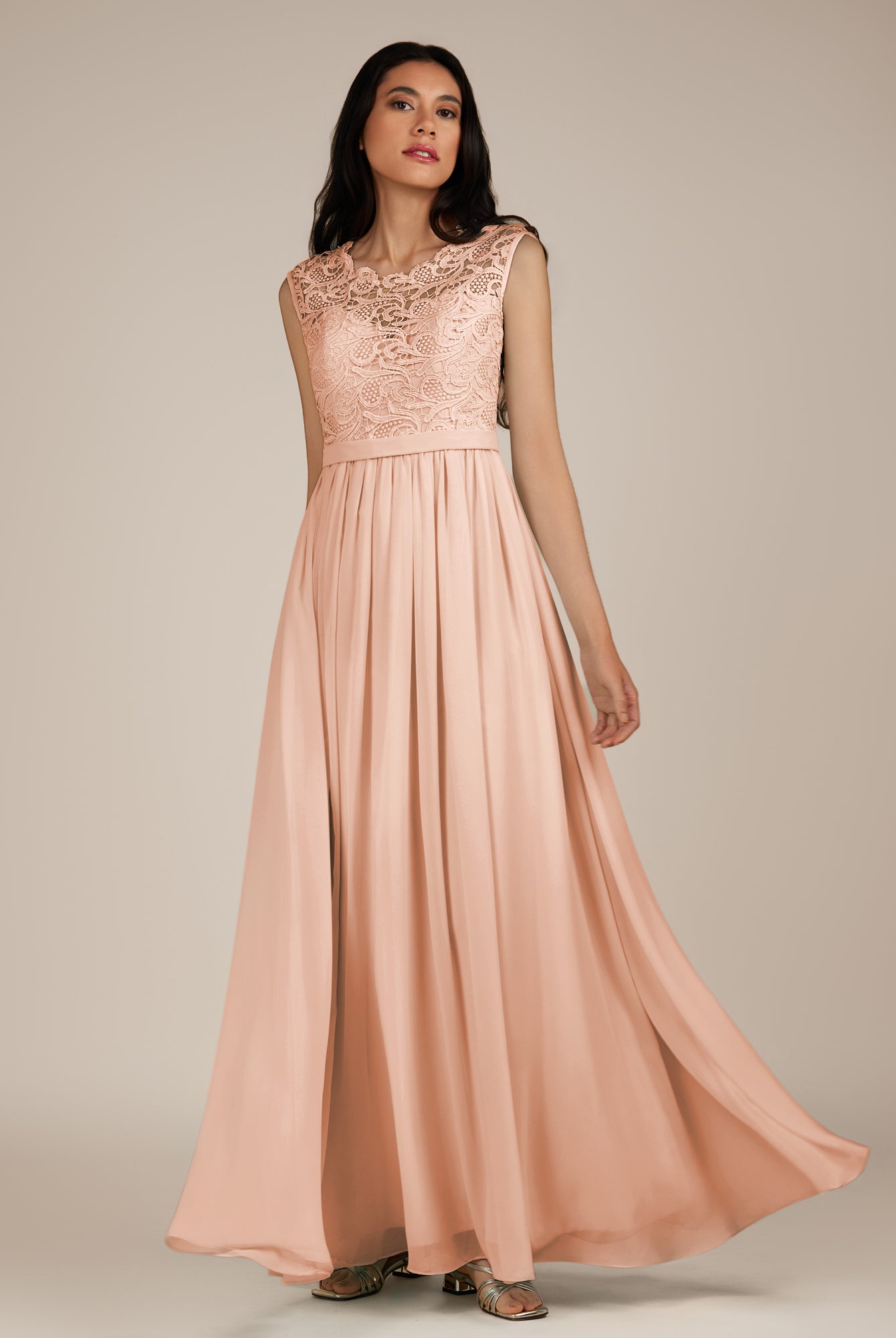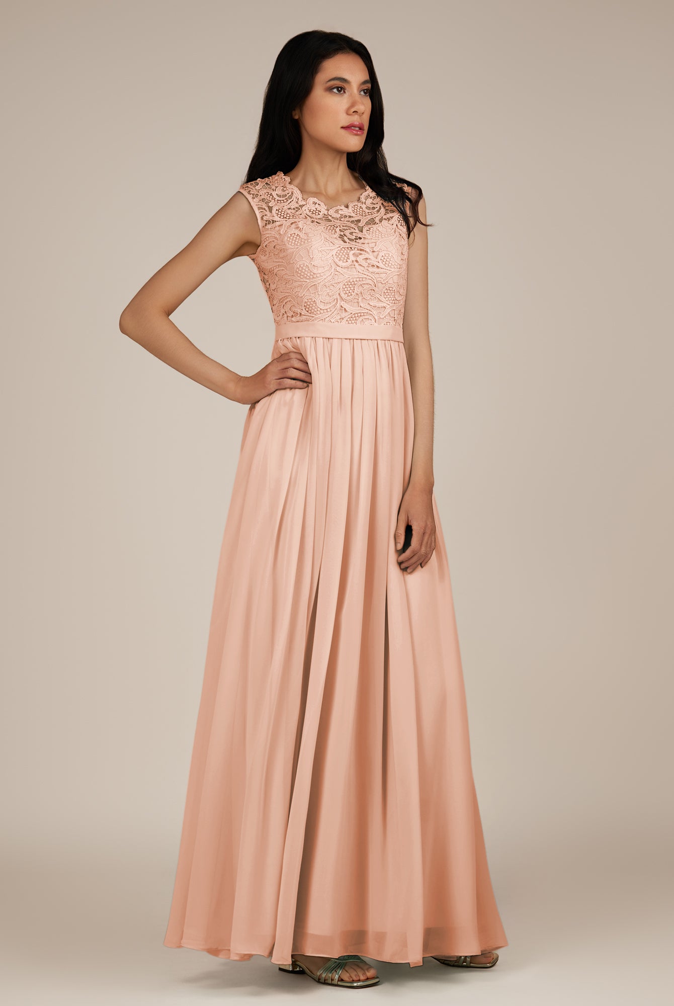 Niamh | Champagne Rose - A Line Illusion Neck Chiffon Long Bridesmaid Dress