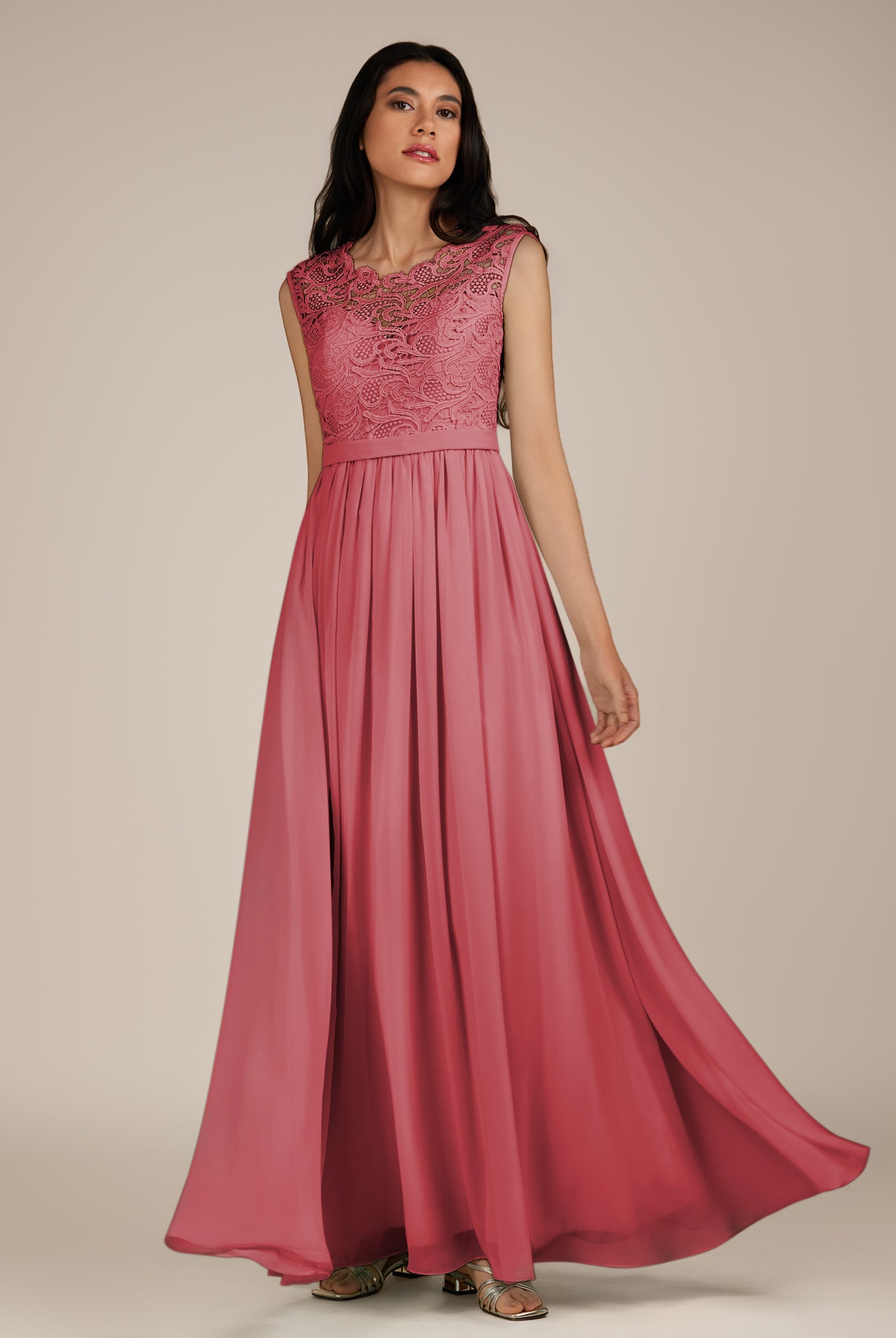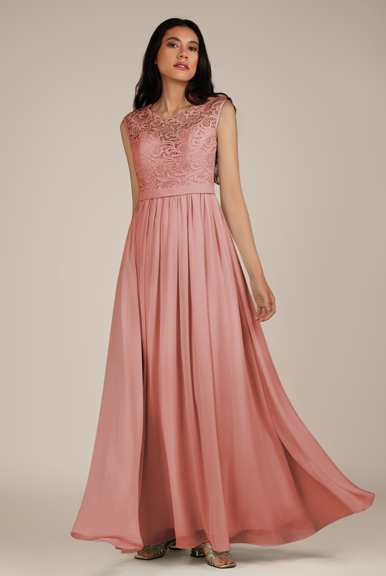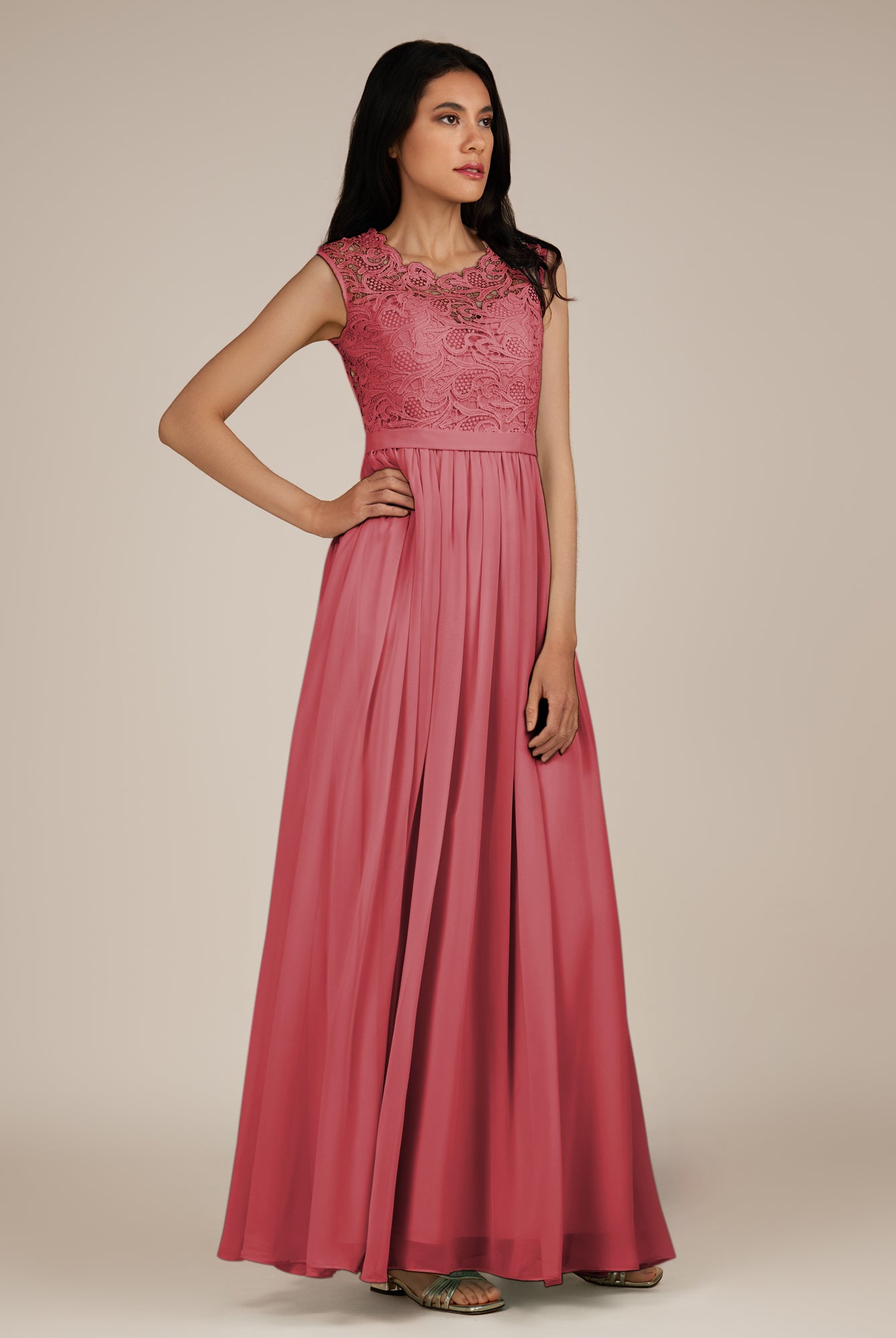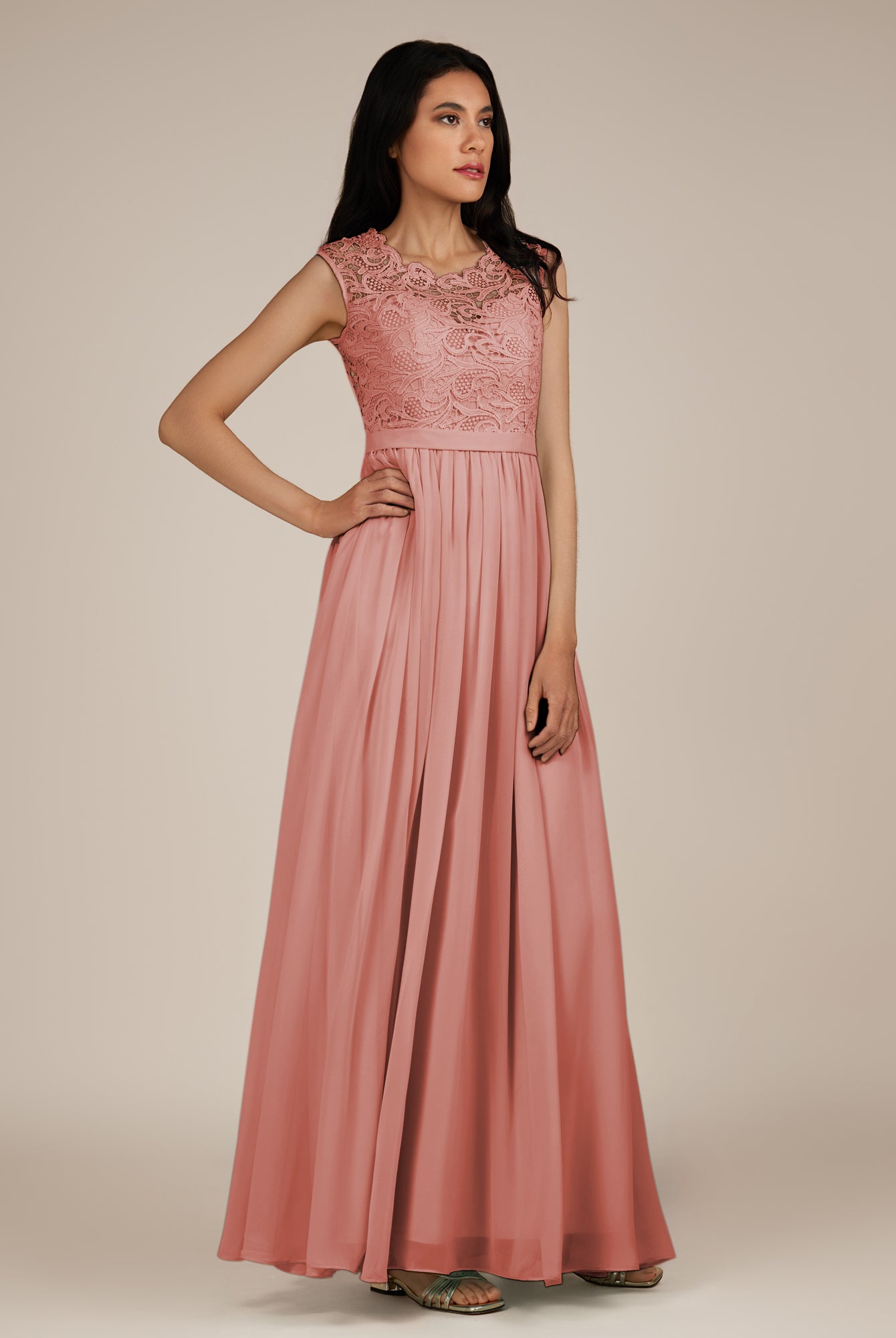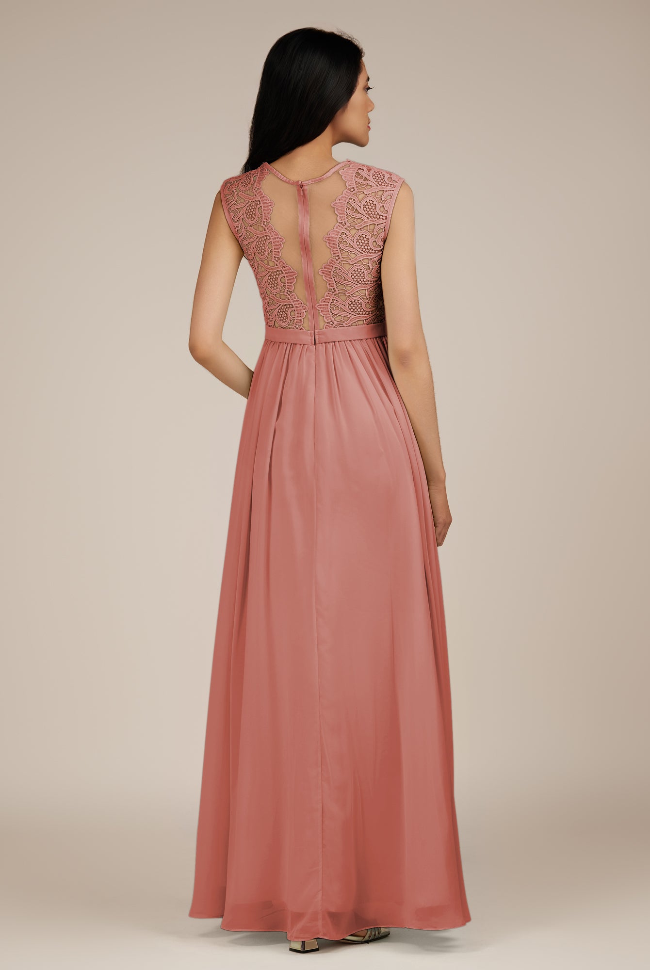 Niamh | Rose Petal - A Line Illusion Neck Chiffon Long Bridesmaid Dress