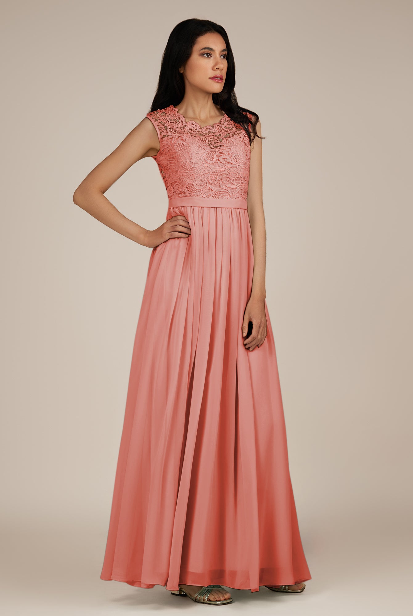 Niamh | English Rose - A Line Illusion Neck Chiffon Long Bridesmaid Dress
