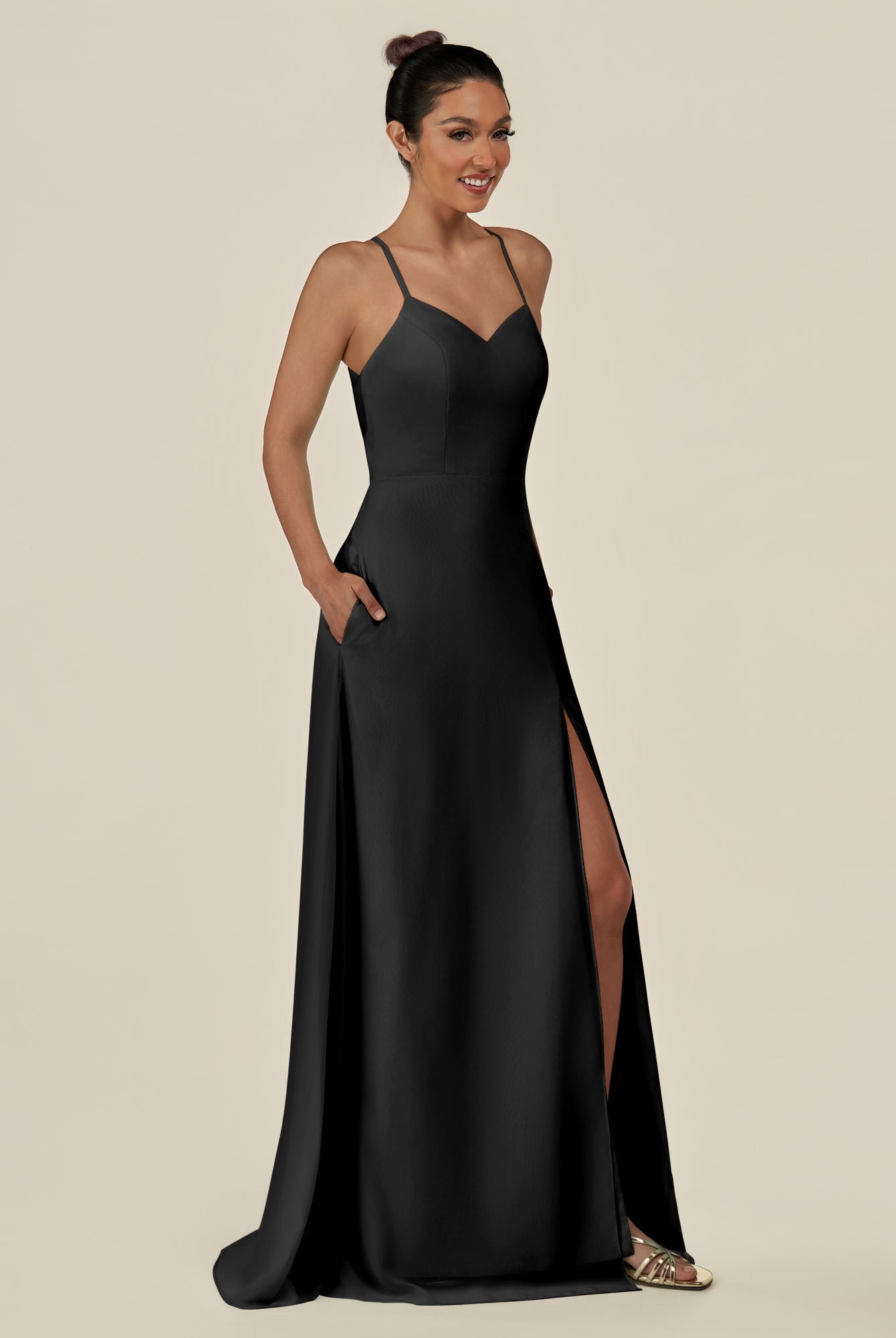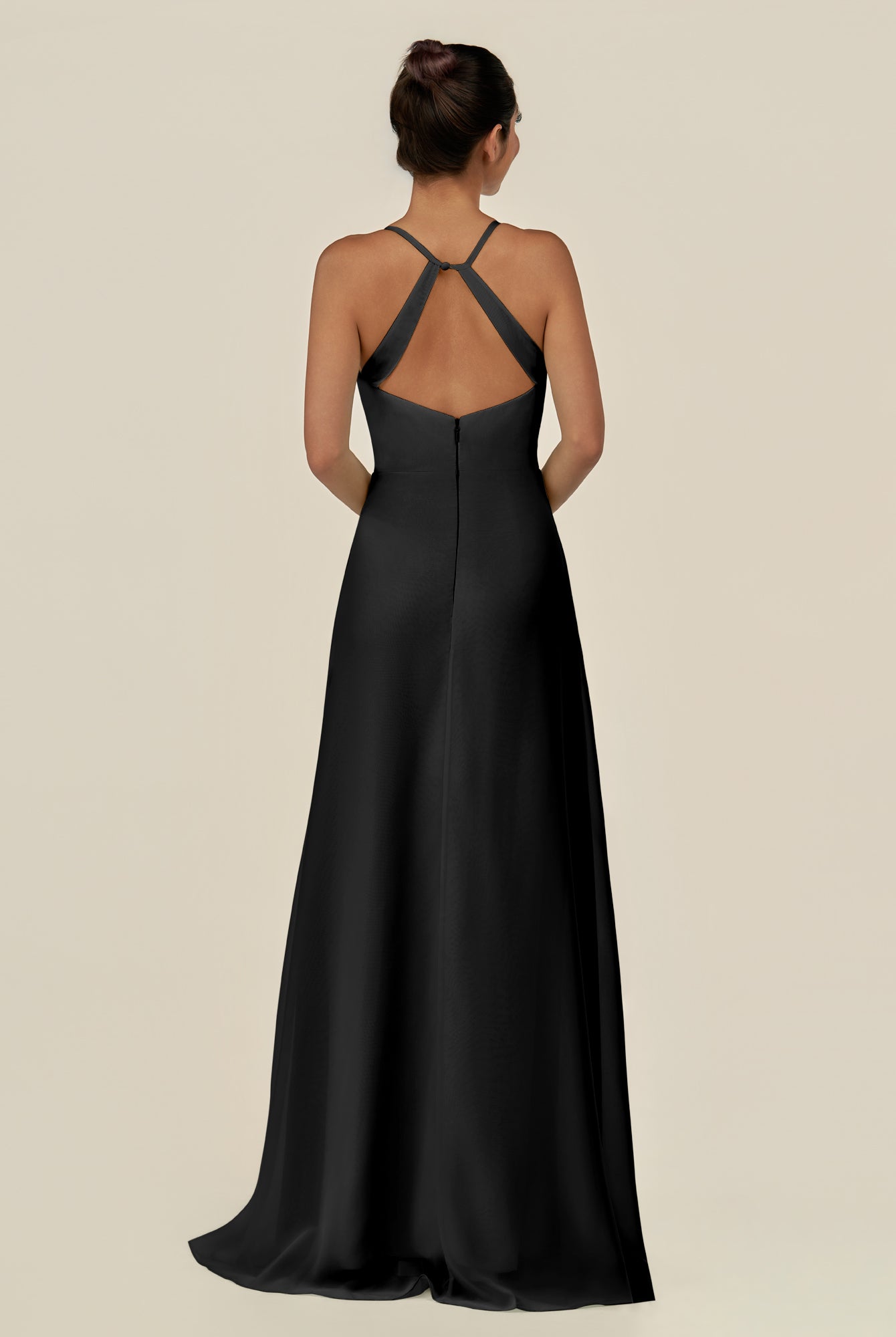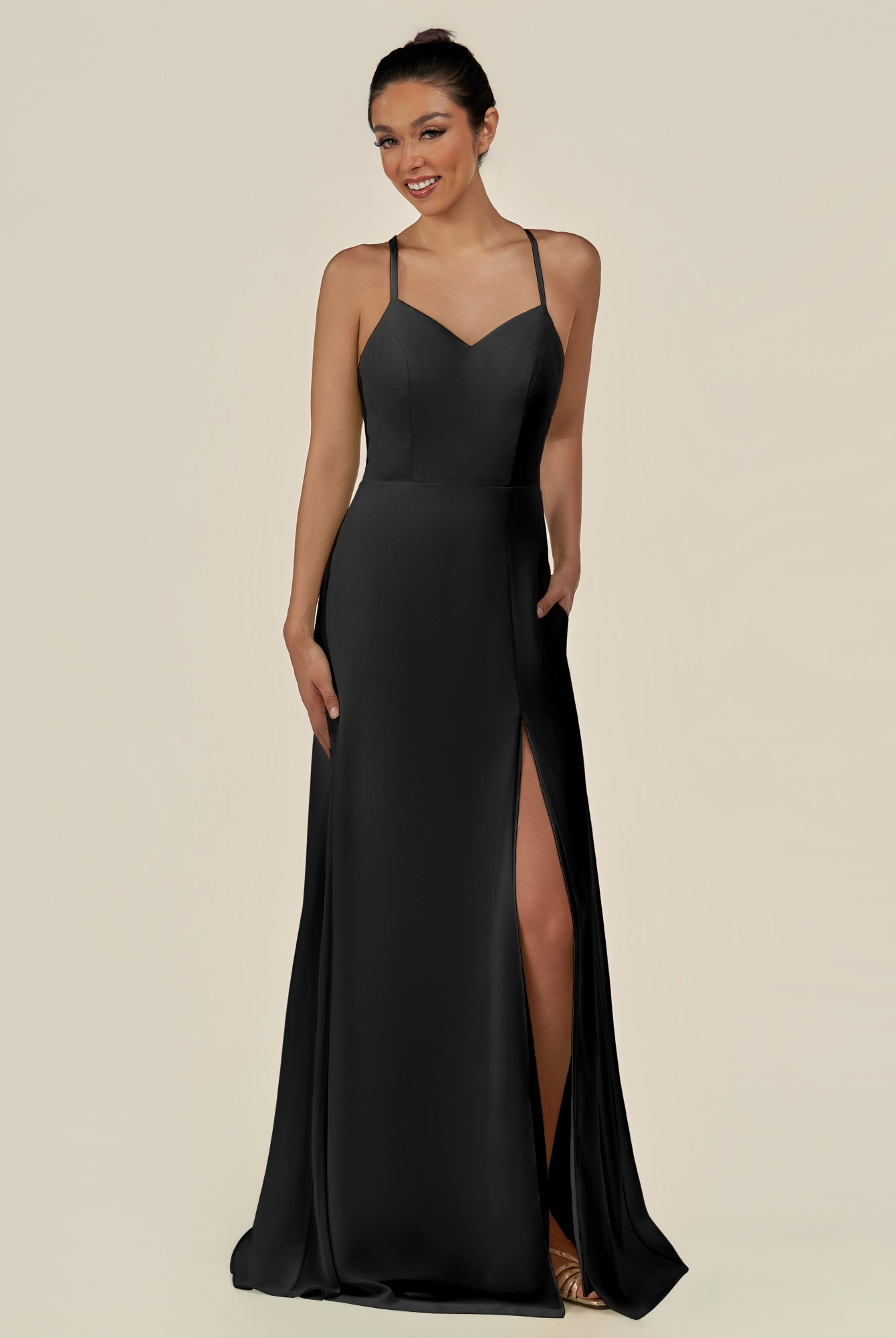 Cerin | Black - Sheath V Neck Chiffon Long Bridesmaid Dress with Slit