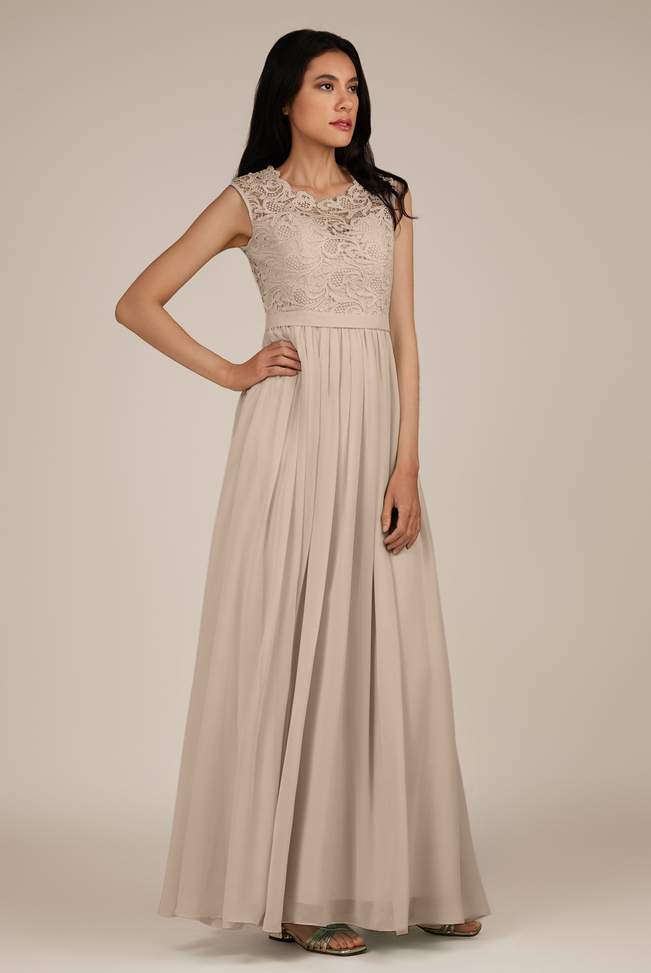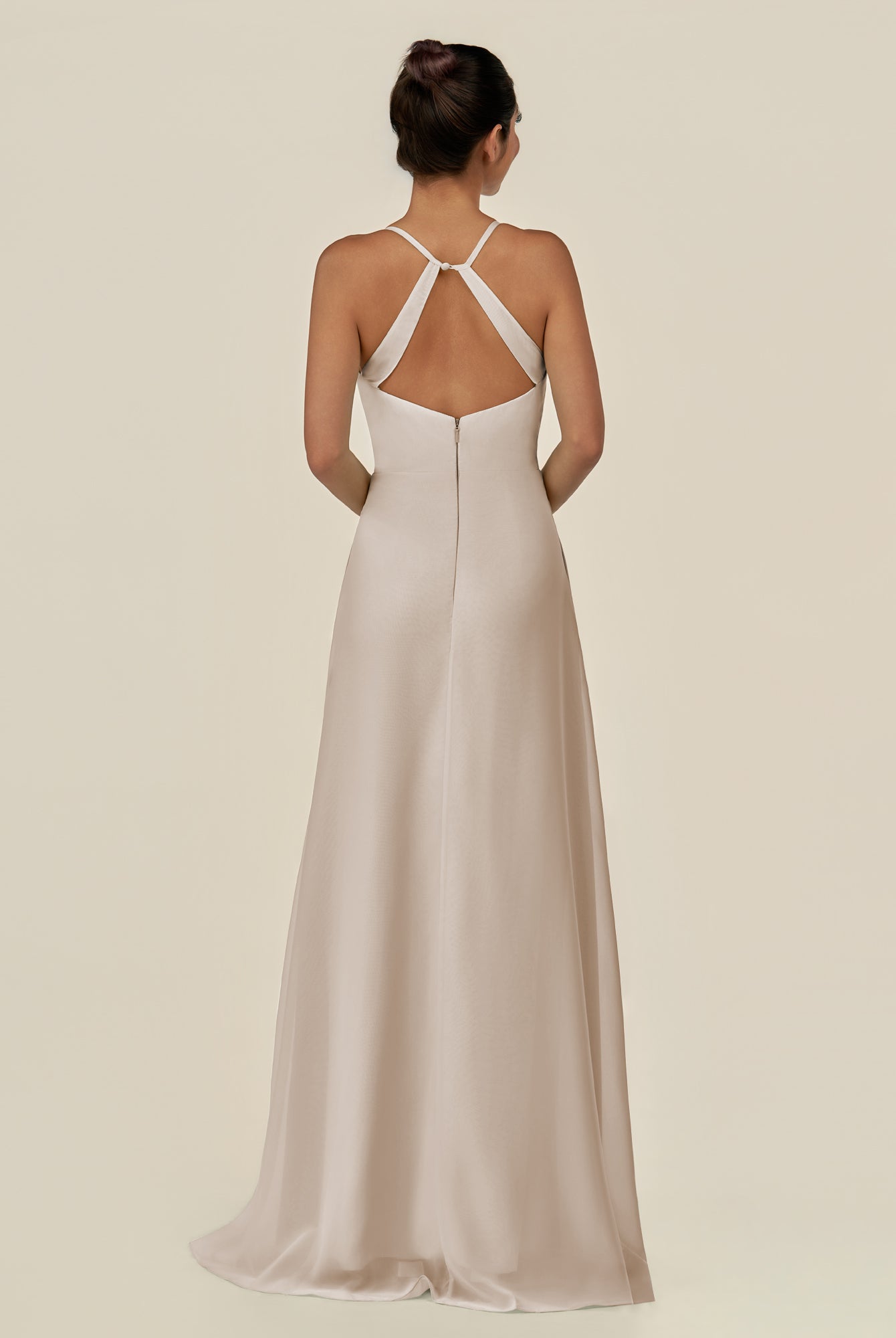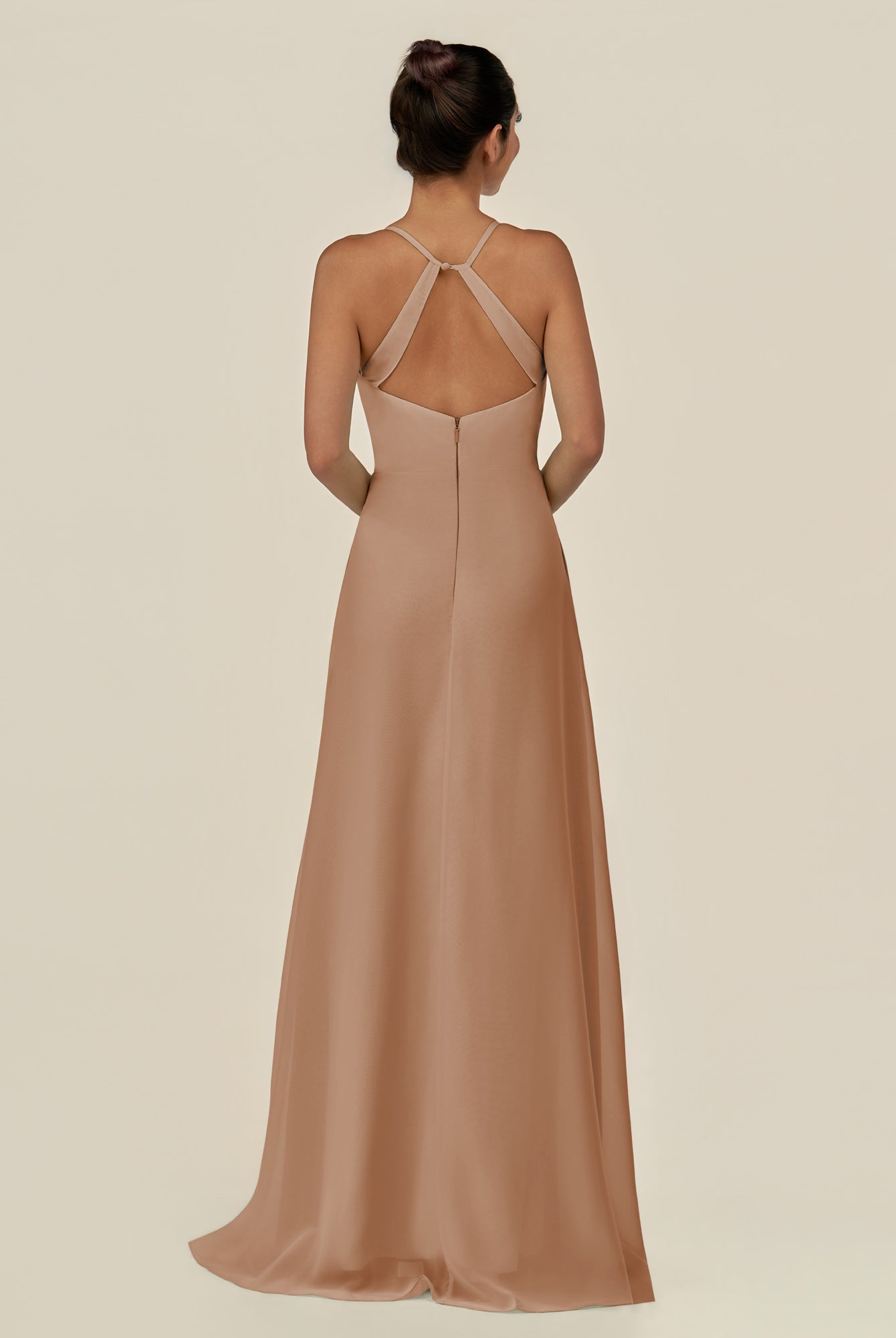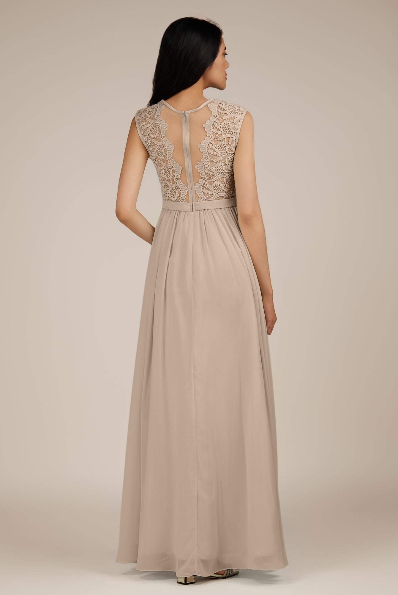 Niamh | Almond - A Line Illusion Neck Chiffon Long Bridesmaid Dress