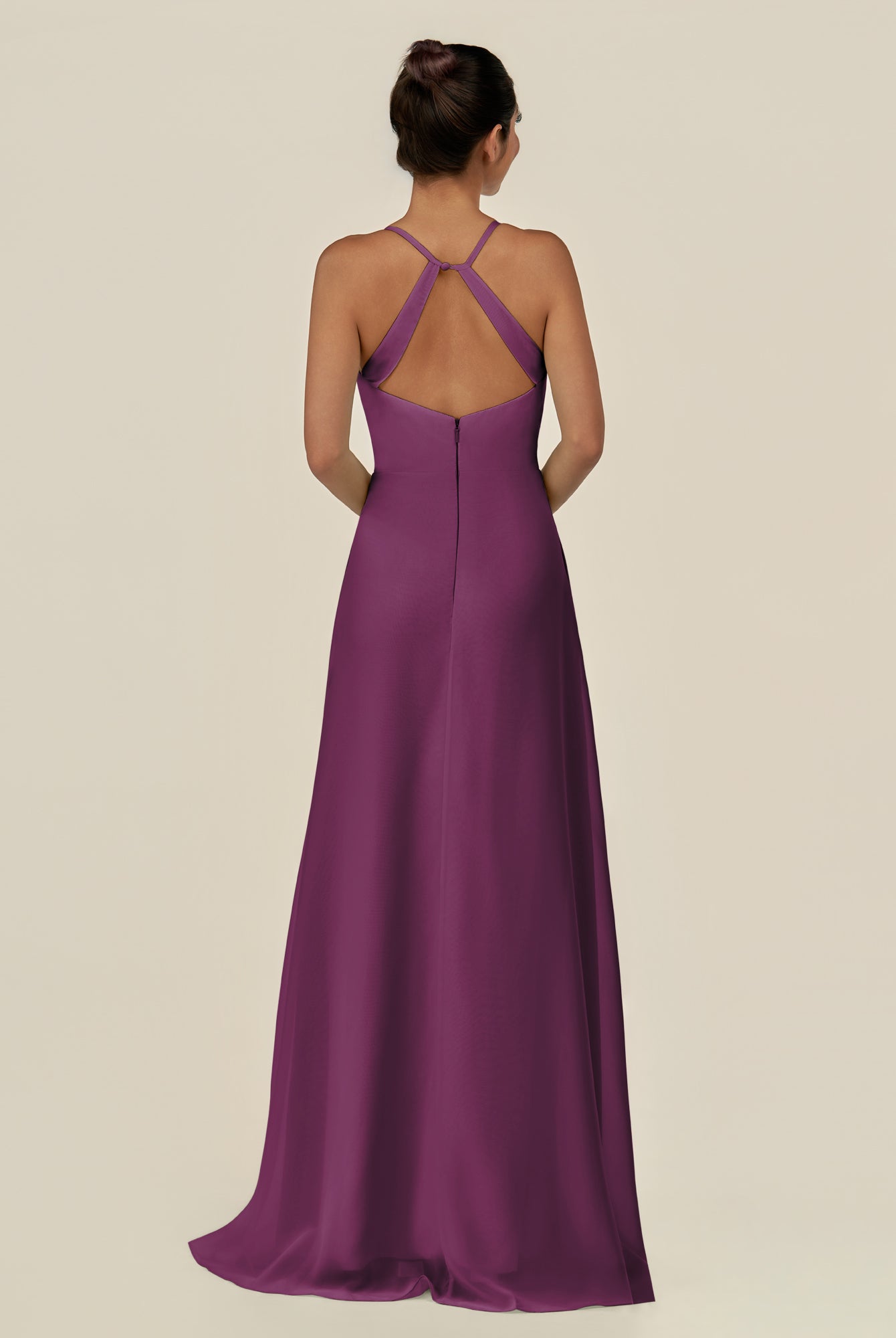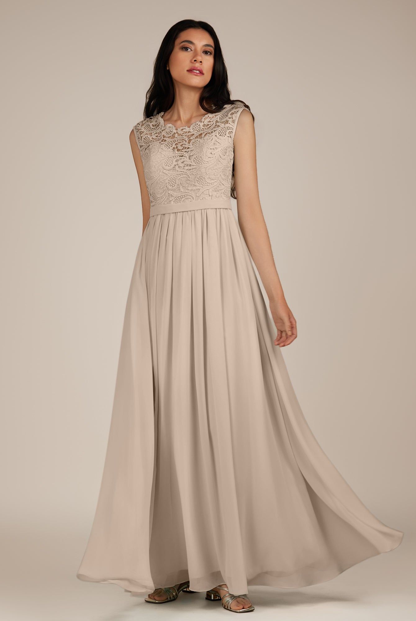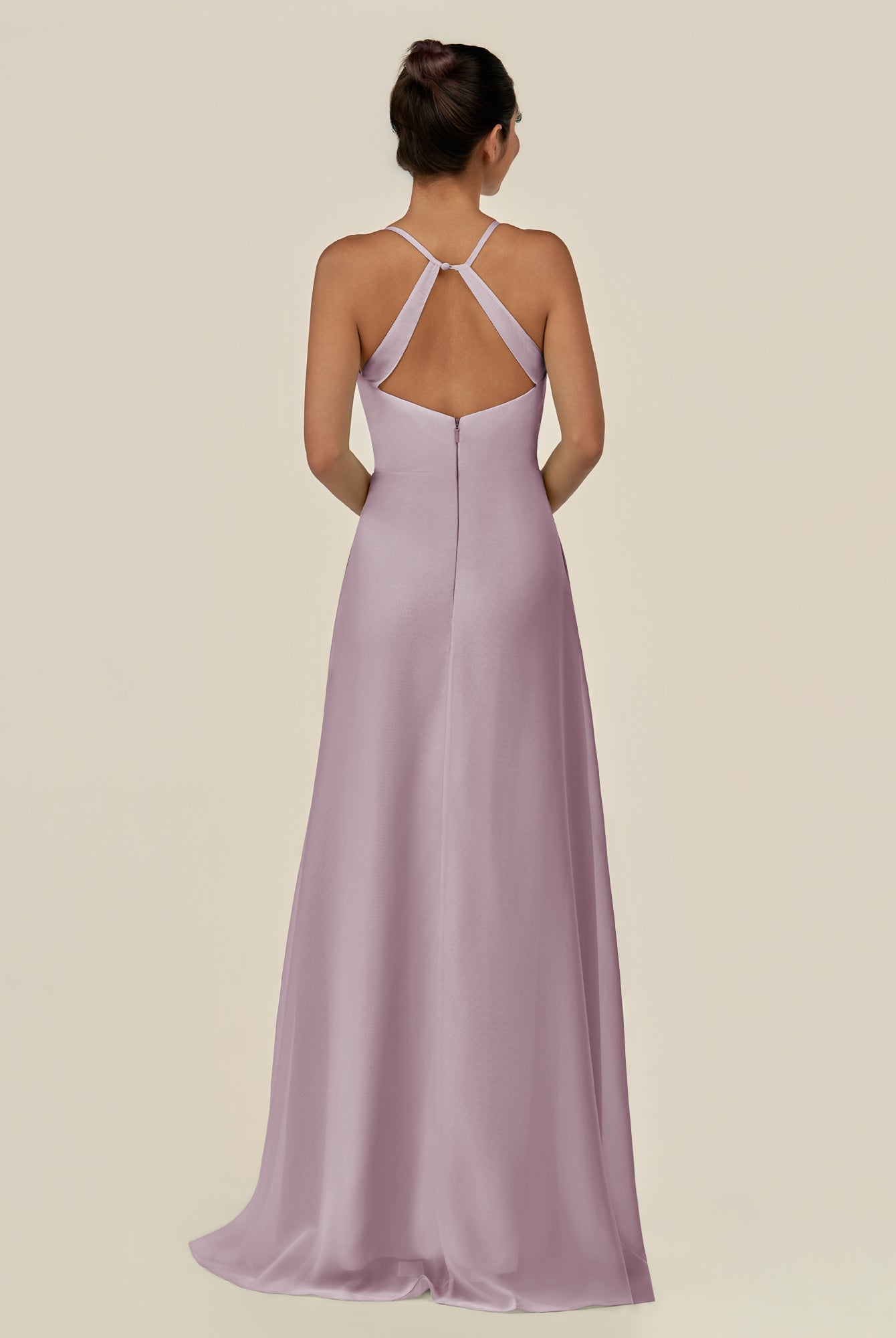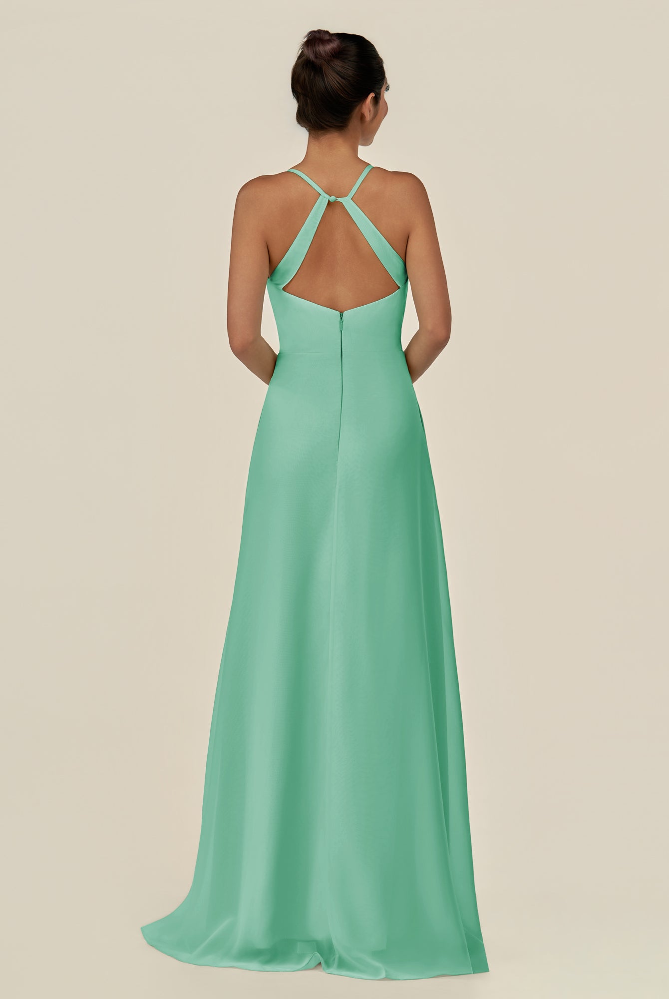 Niamh | Almond - A Line Illusion Neck Chiffon Long Bridesmaid Dress