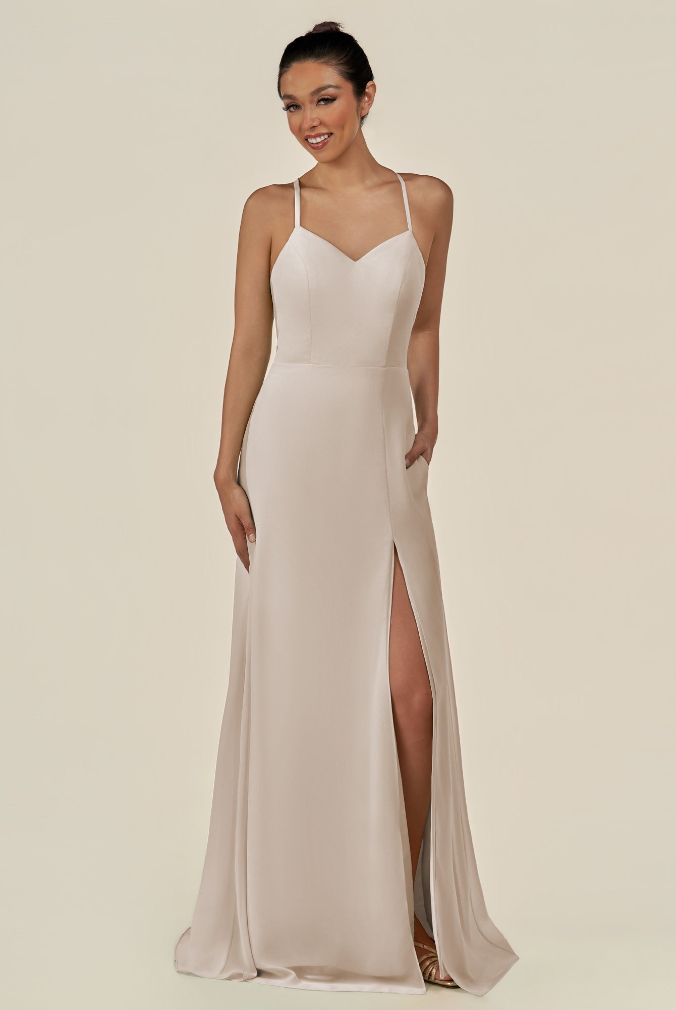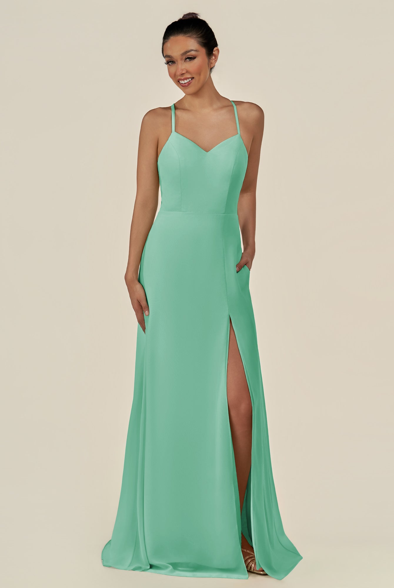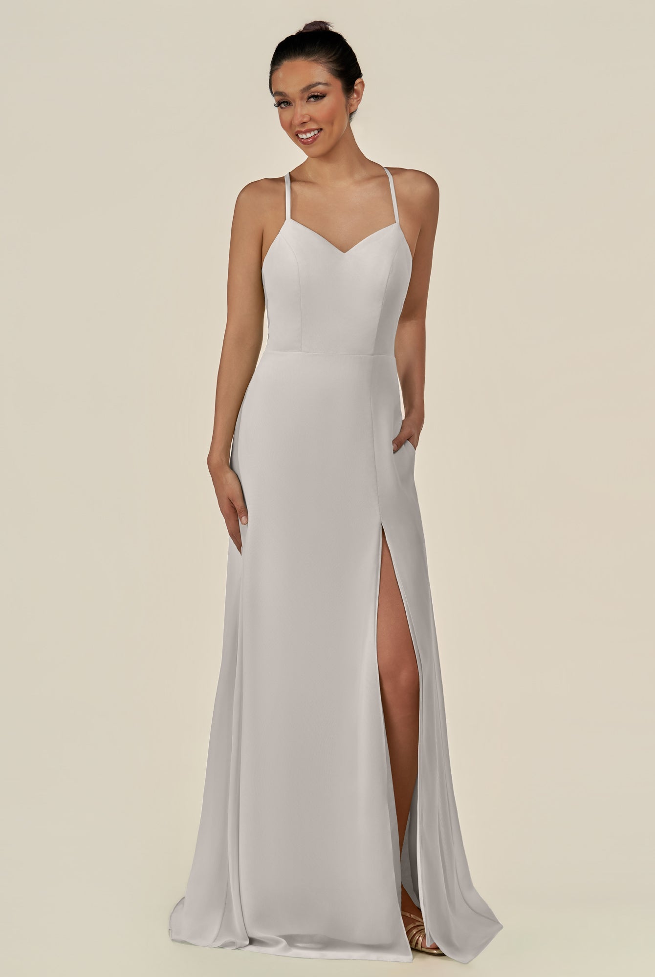 Cerin | Frost - Sheath V Neck Chiffon Long Bridesmaid Dress with Slit