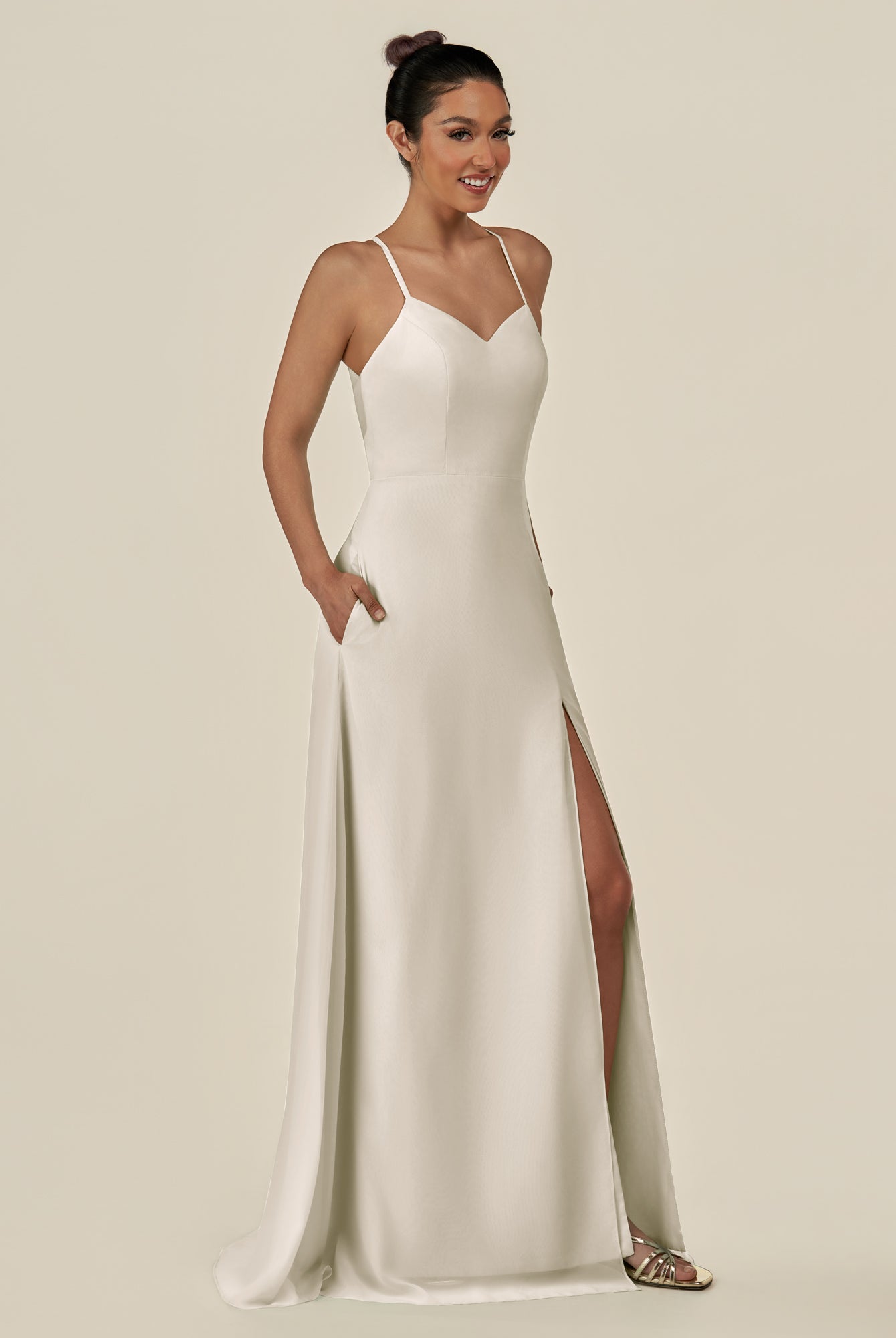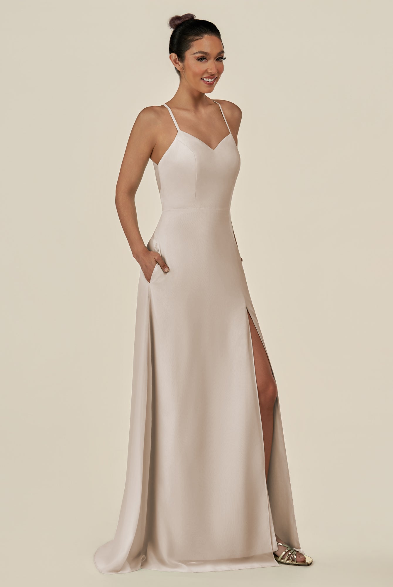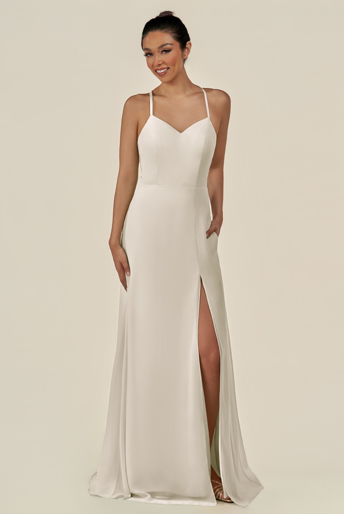 Cerin | Frost - Sheath V Neck Chiffon Long Bridesmaid Dress with Slit