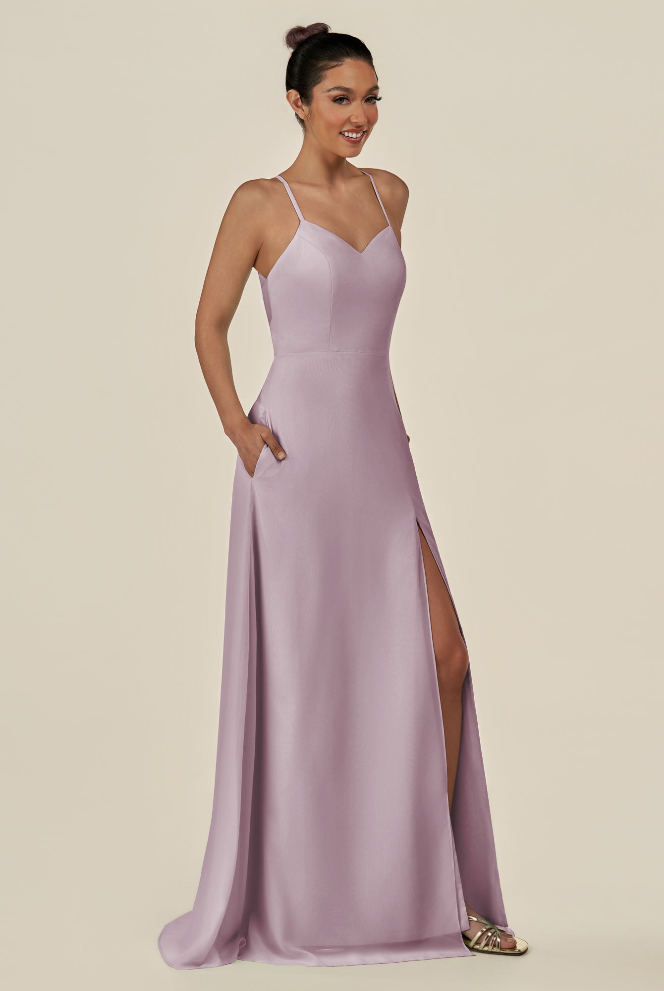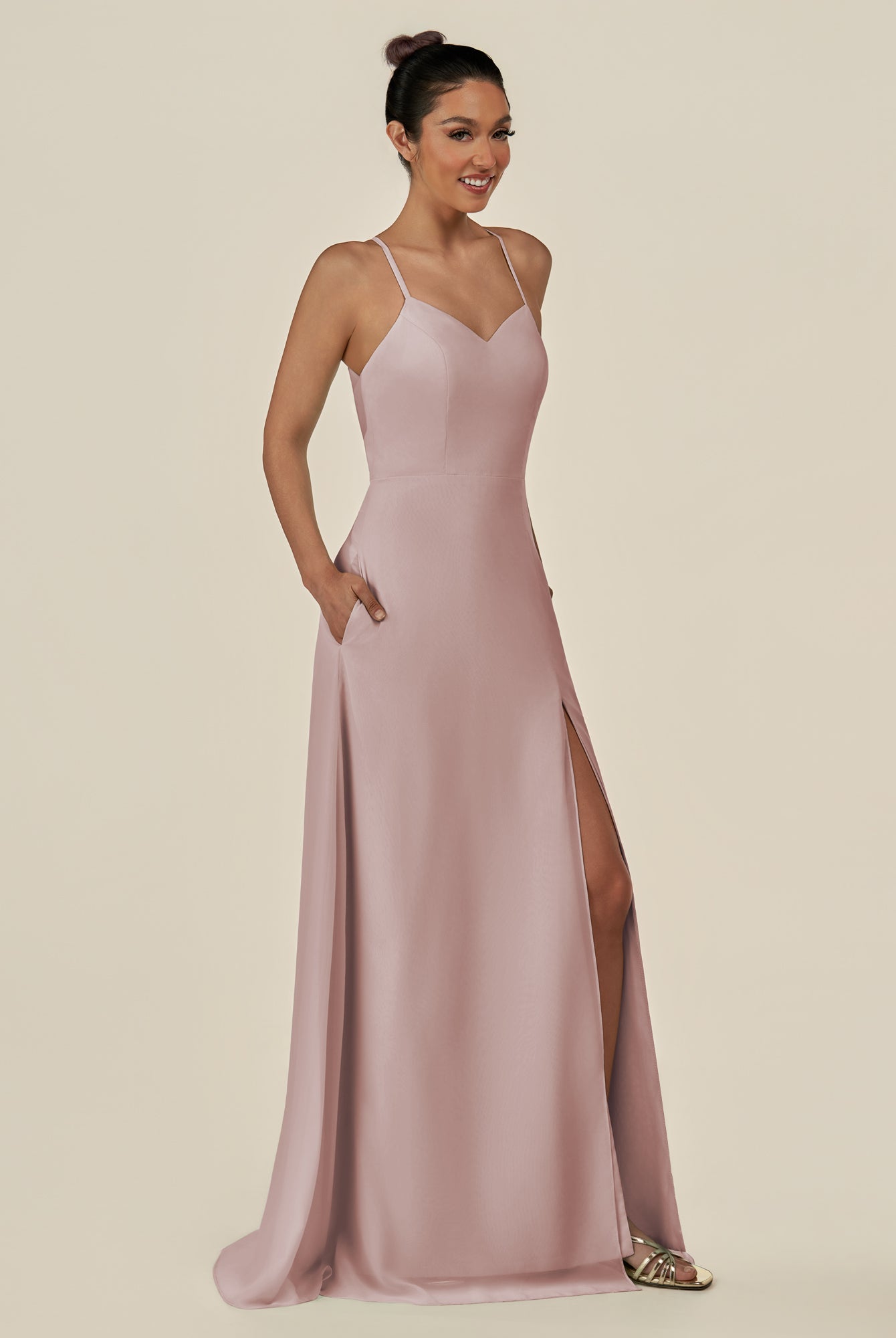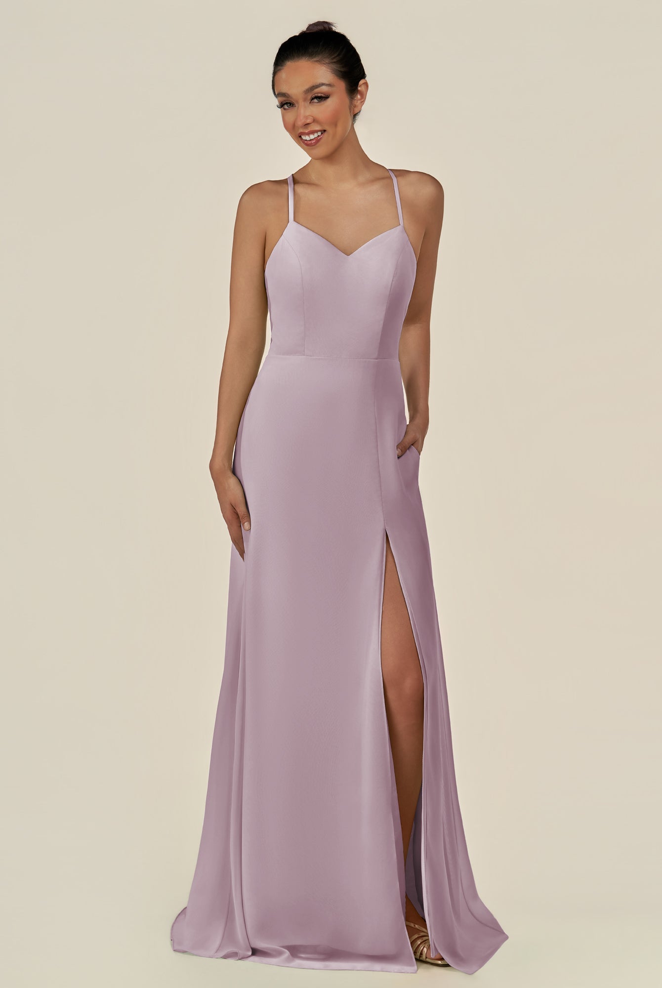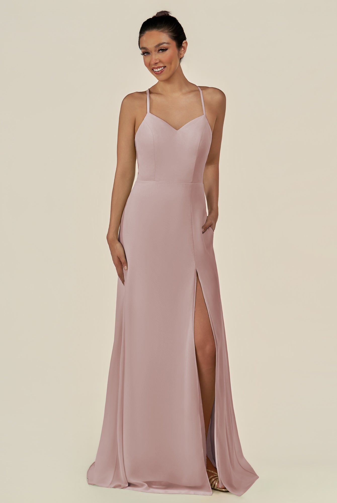 Cerin | Dusk - Sheath V Neck Chiffon Long Bridesmaid Dress with Slit