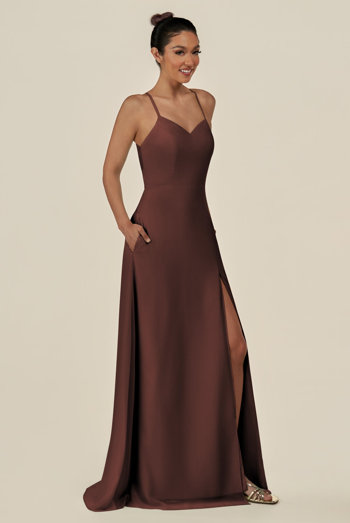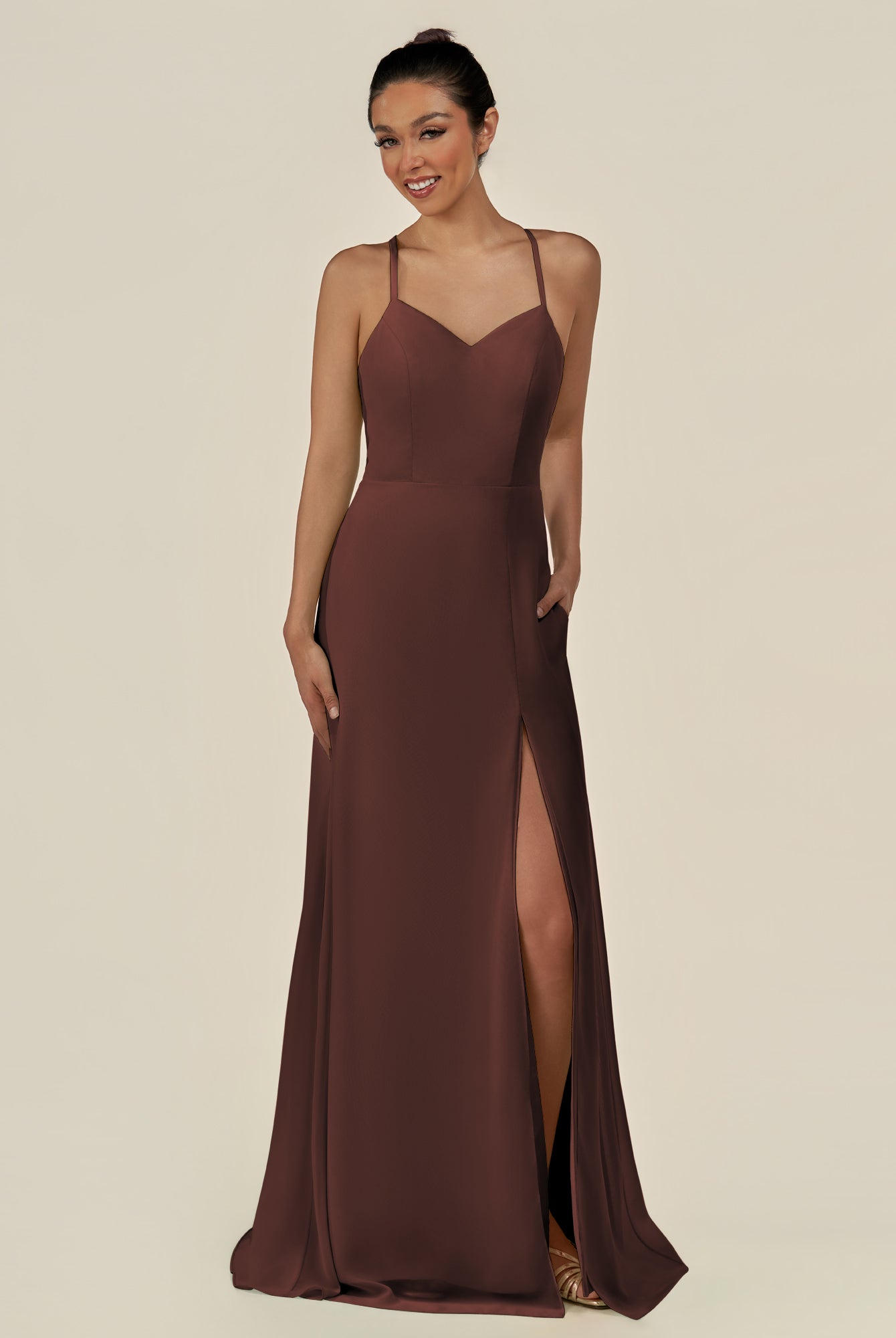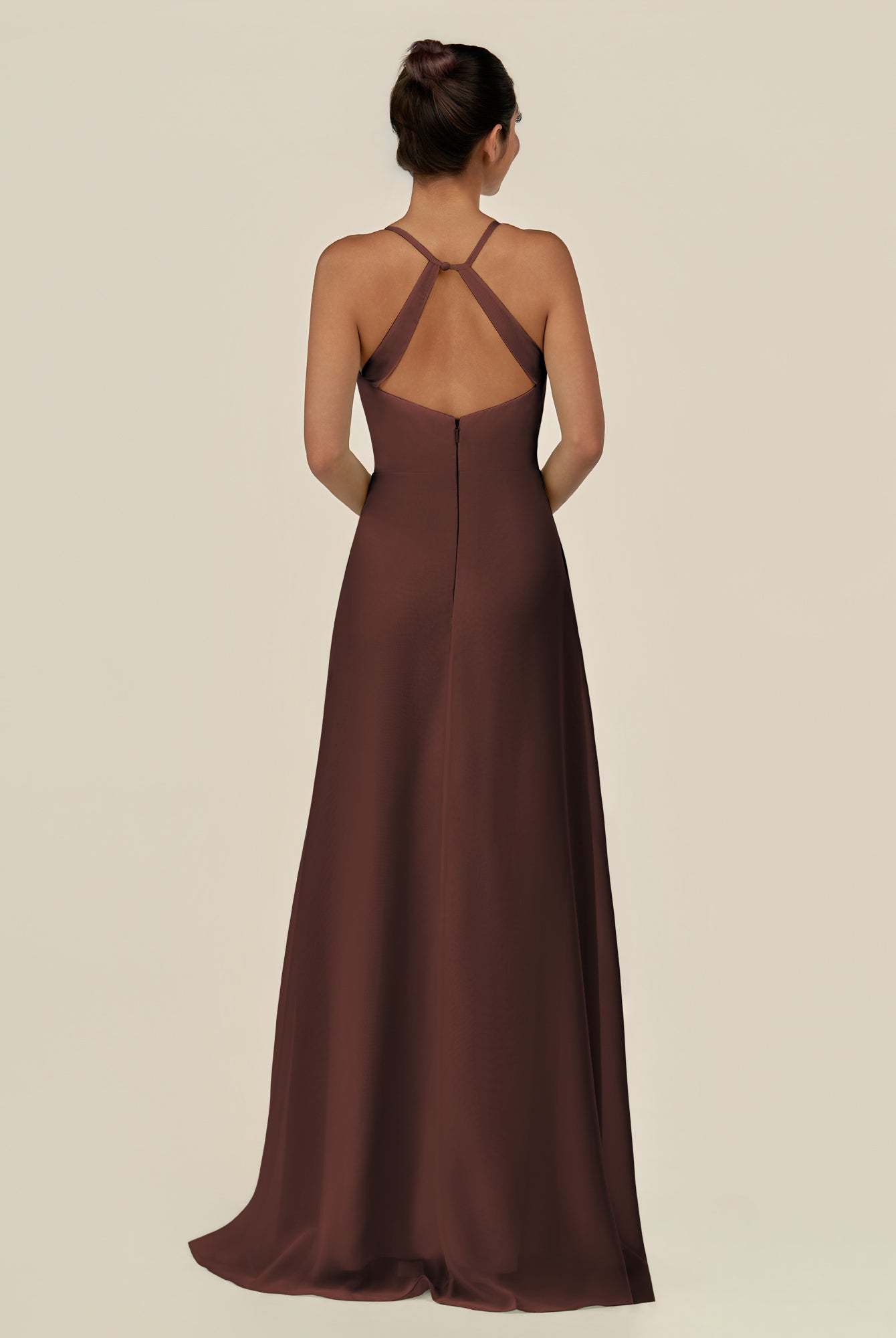 Cerin | Espresso - Sheath V Neck Chiffon Long Bridesmaid Dress with Slit