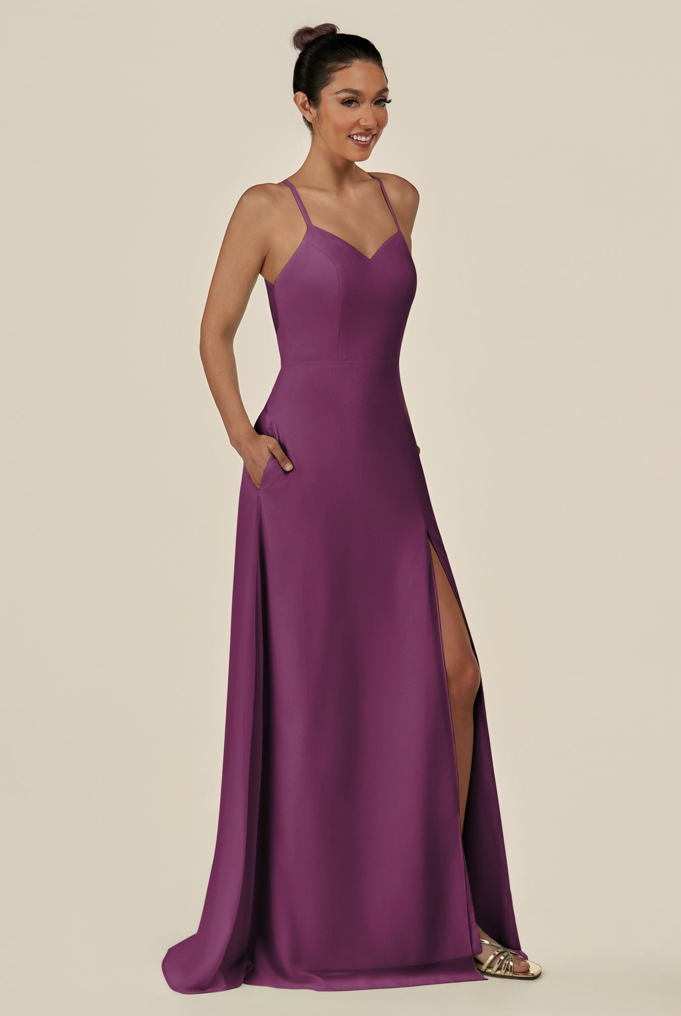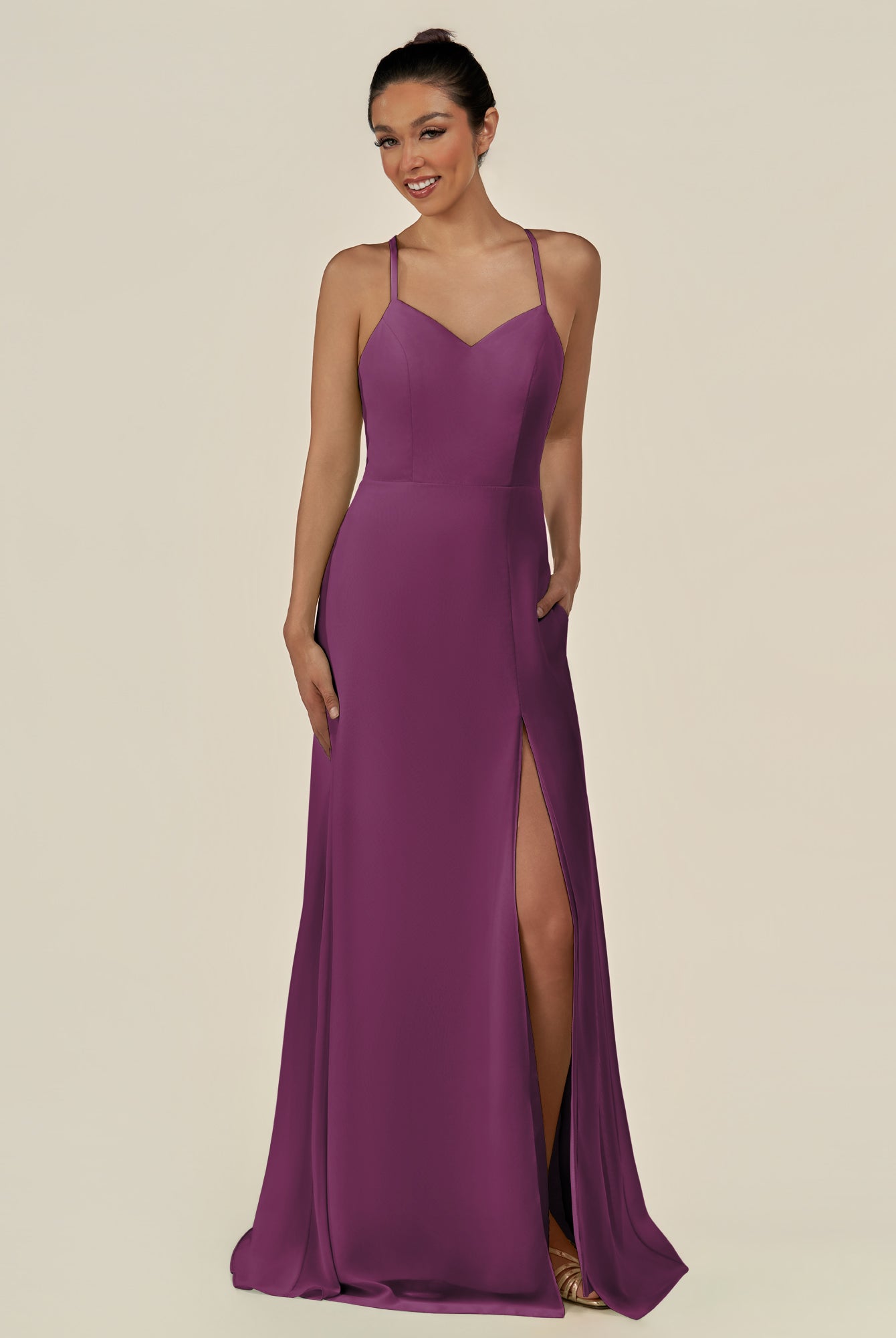 Cerin | Fig - Sheath V Neck Chiffon Long Bridesmaid Dress with Slit