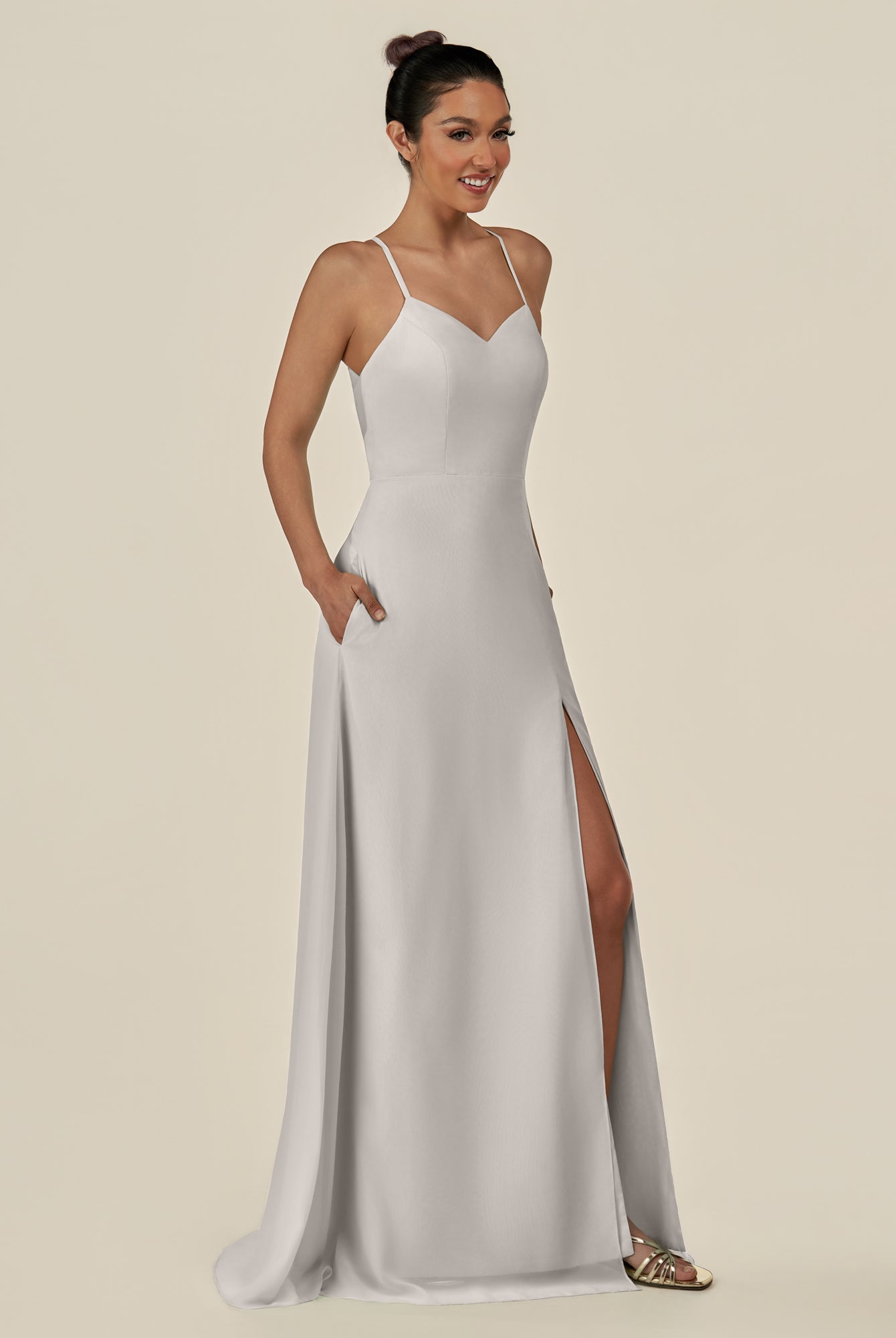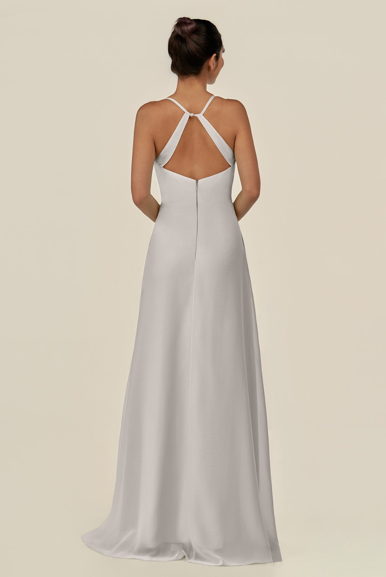 Cerin | Silver - Sheath V Neck Chiffon Long Bridesmaid Dress with Slit