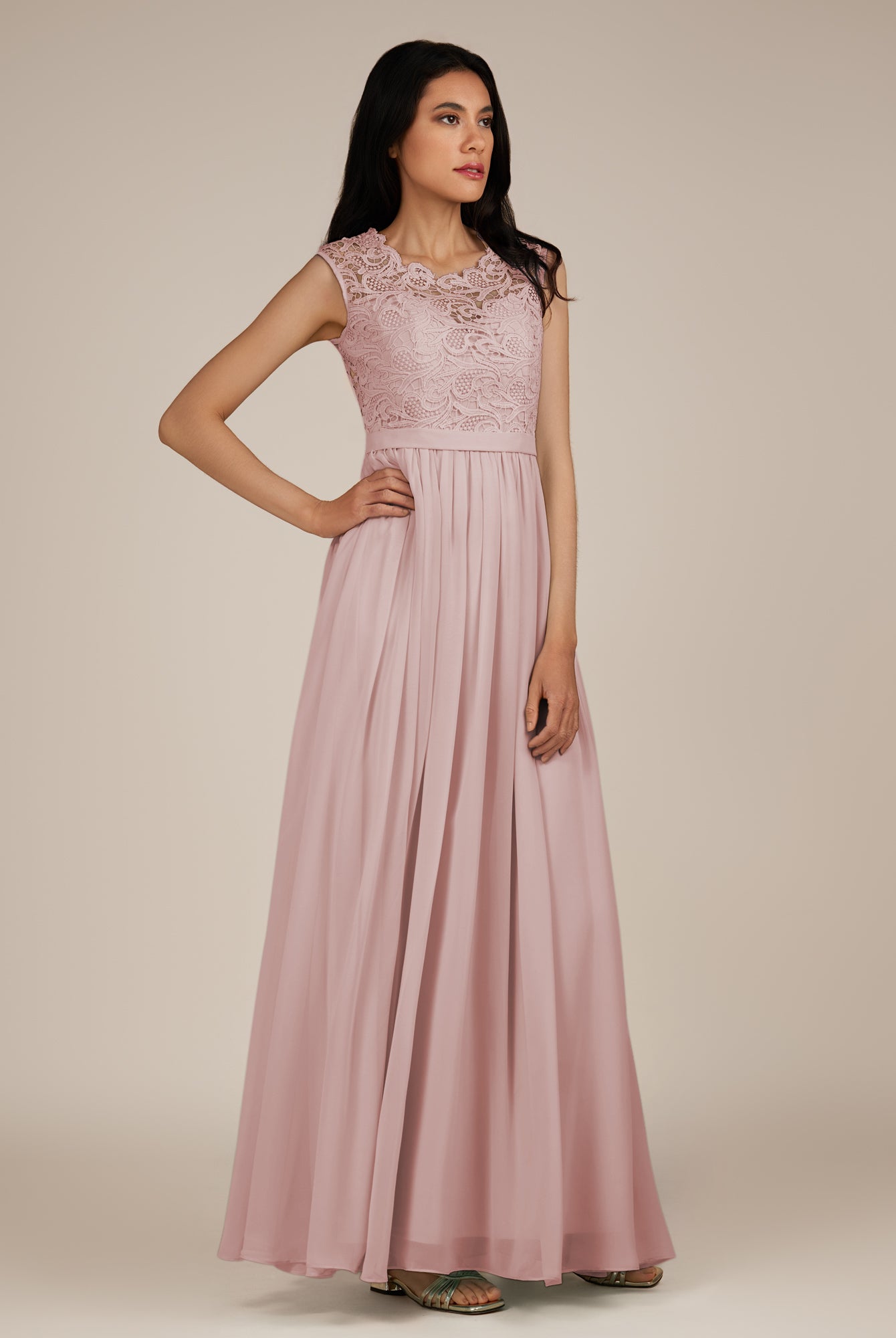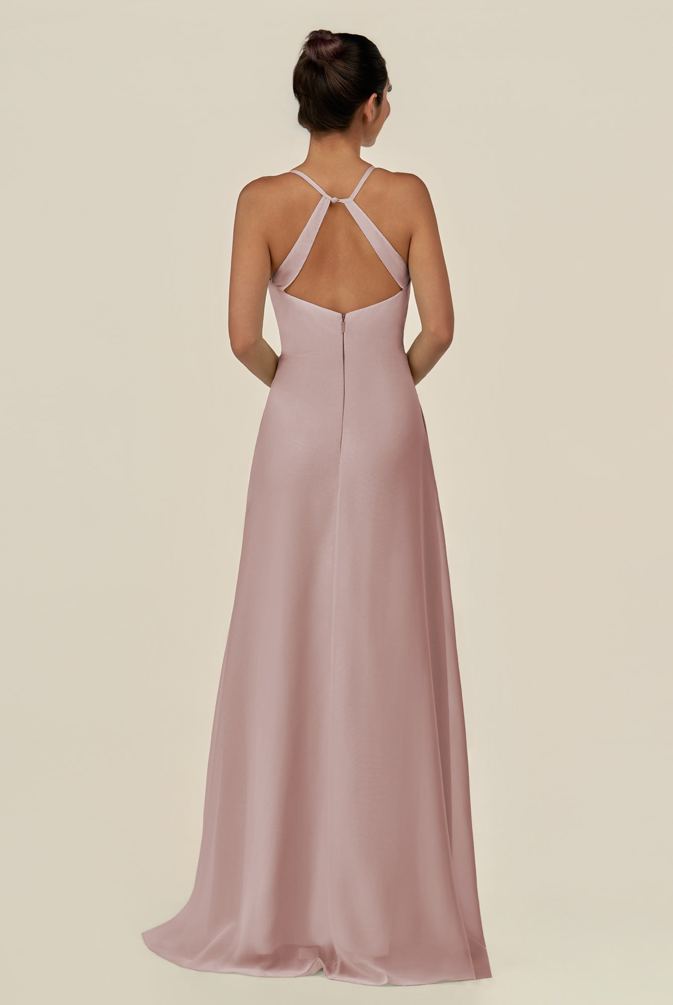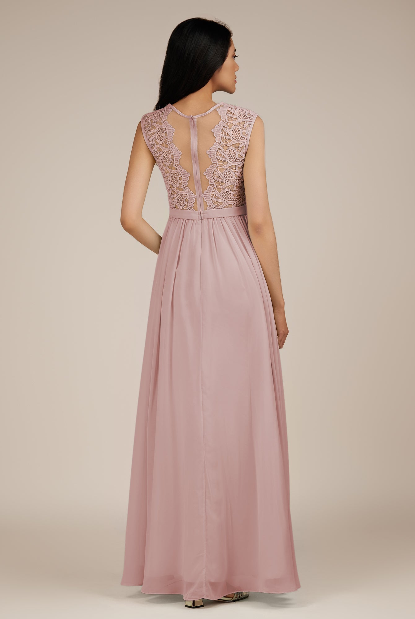 Niamh | Dusty Rose - A Line Illusion Neck Chiffon Long Bridesmaid Dress