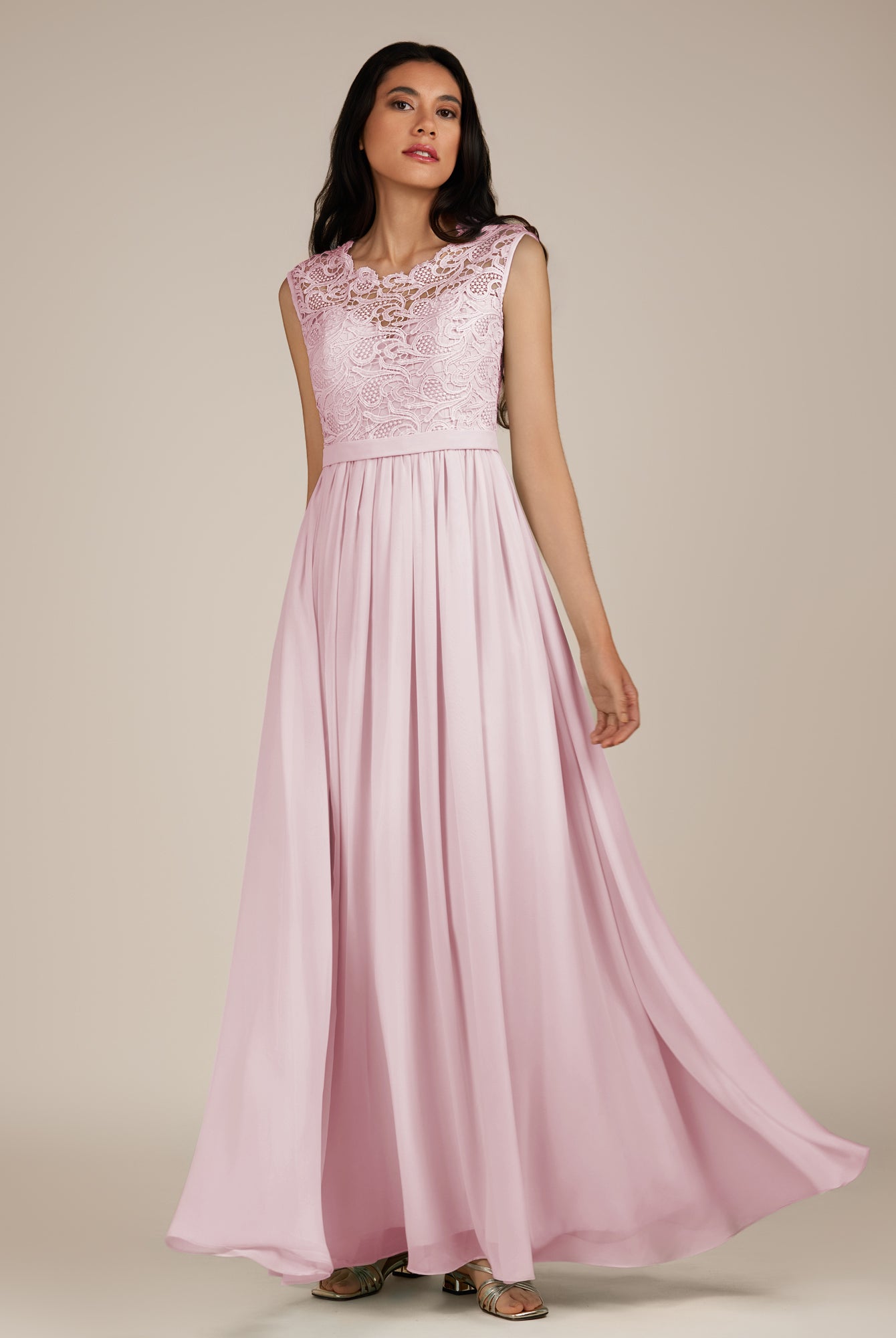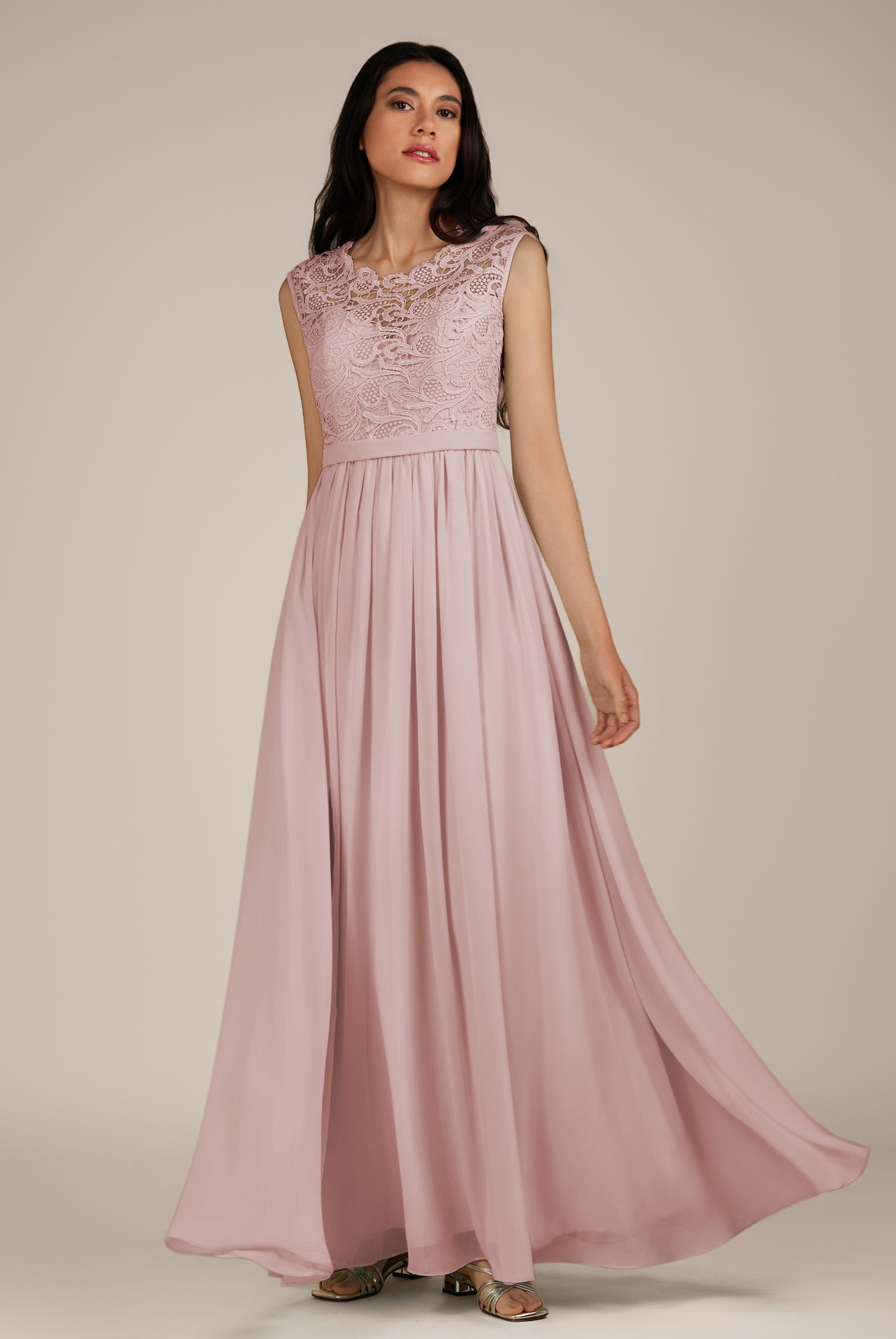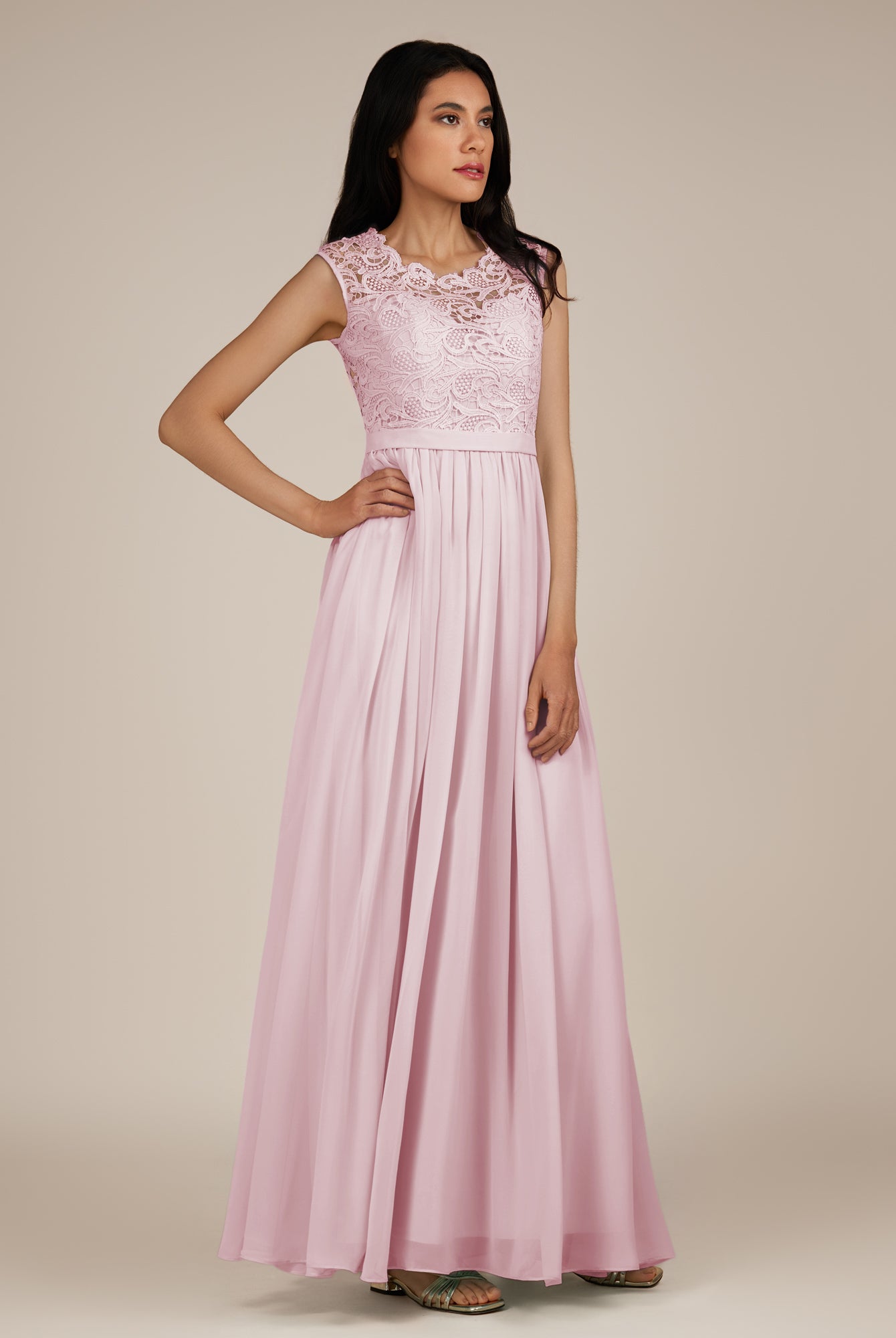 Niamh | Dusty Rose - A Line Illusion Neck Chiffon Long Bridesmaid Dress