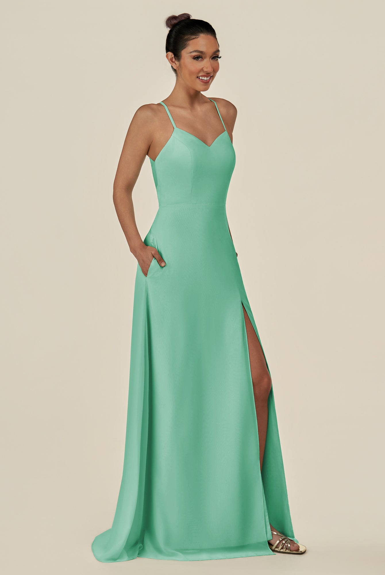Cerin | Turquoise - Sheath V Neck Chiffon Long Bridesmaid Dress with Slit