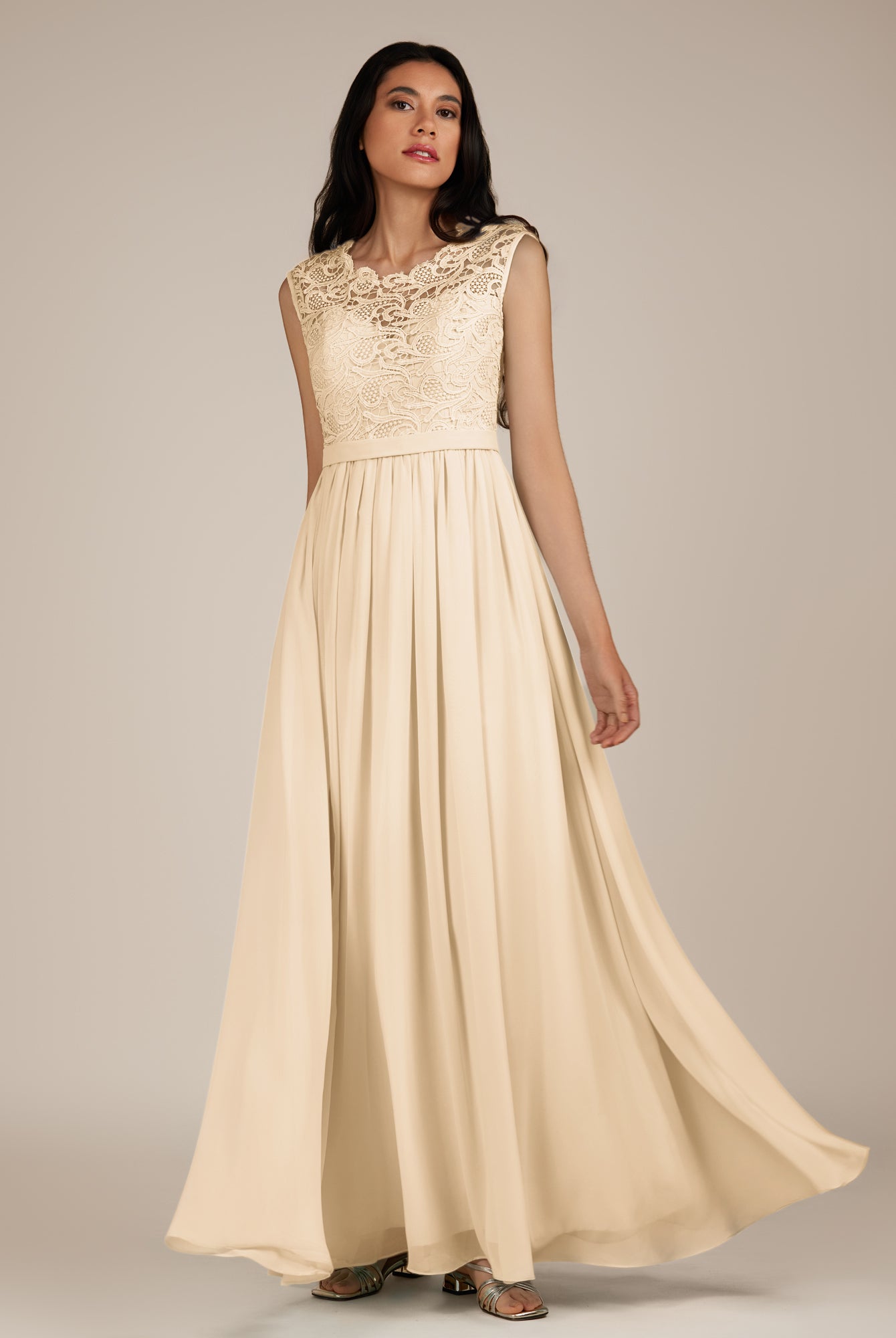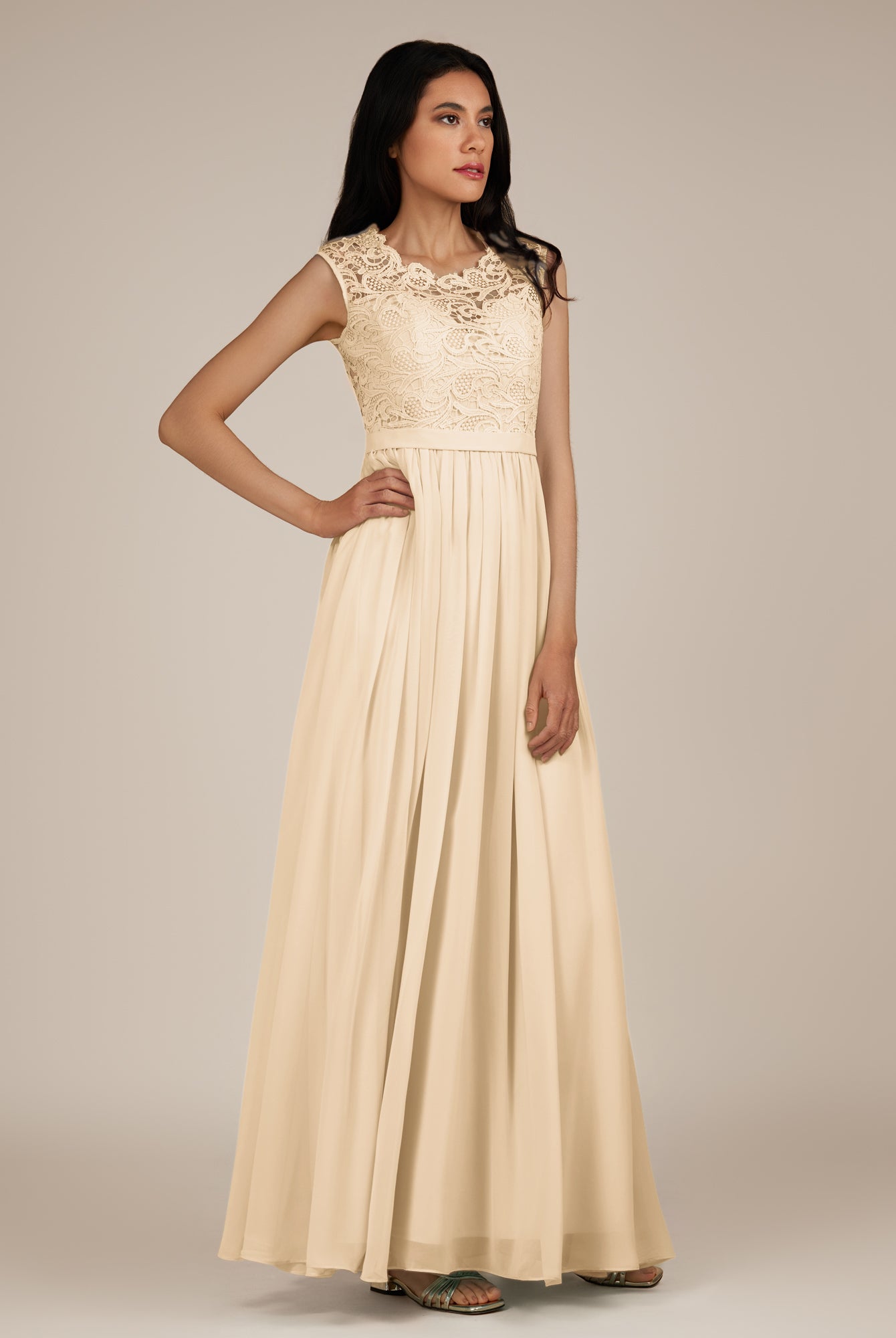 Niamh | Champagne - A Line Illusion Neck Chiffon Long Bridesmaid Dress