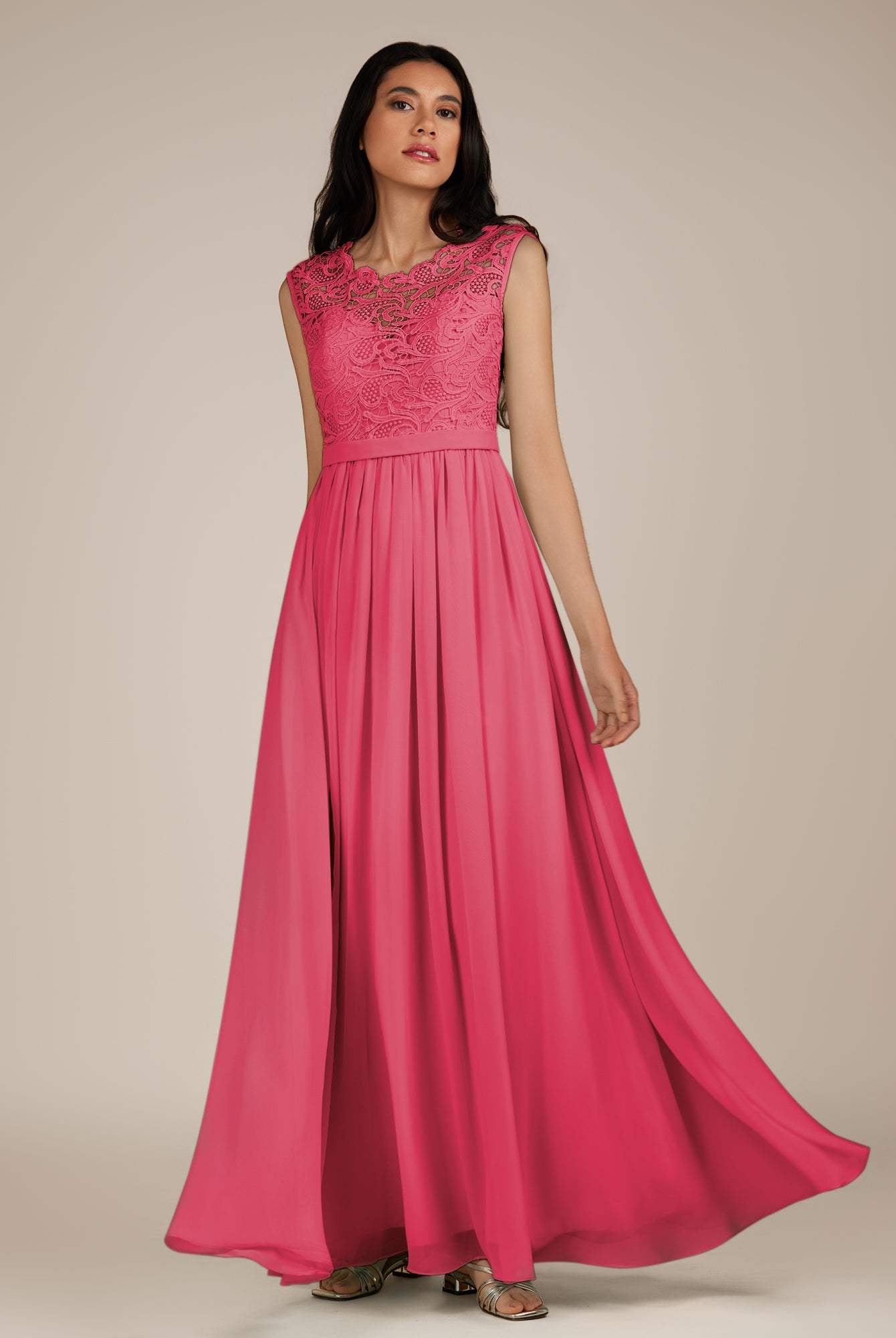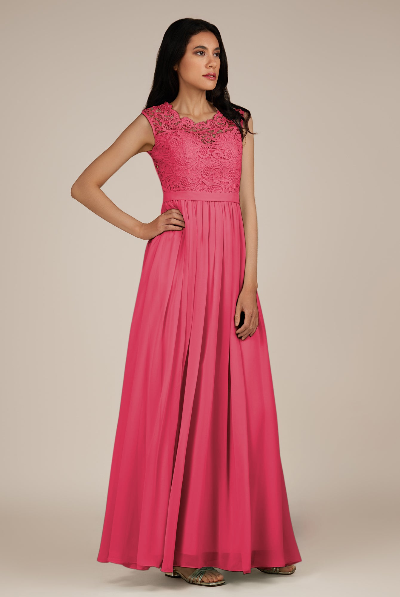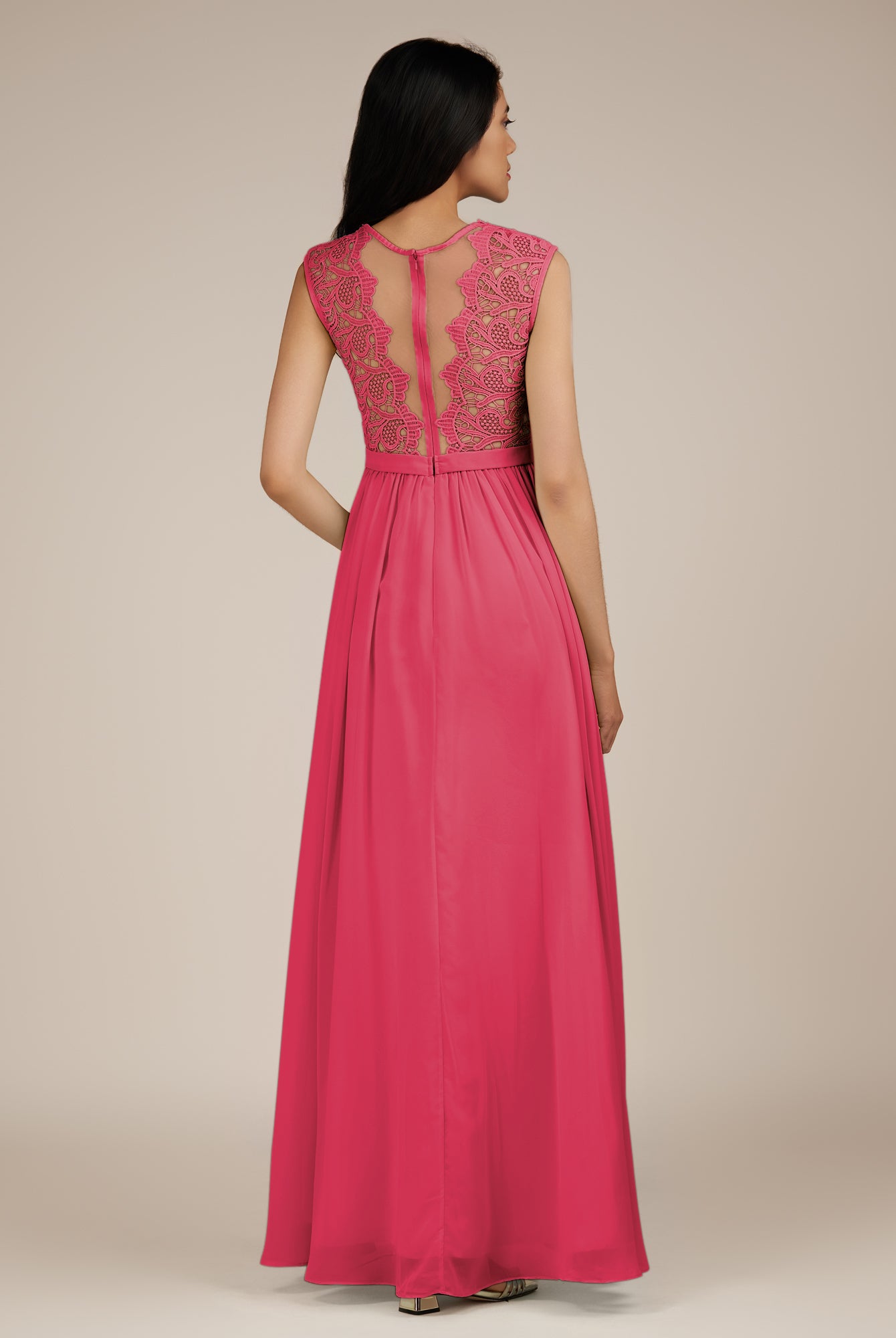 Niamh | Candy Pink - A Line Illusion Neck Chiffon Long Bridesmaid Dress