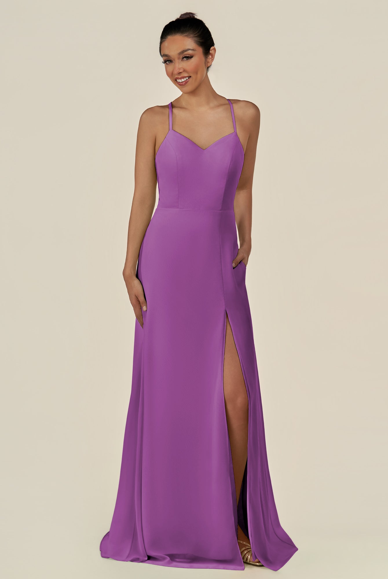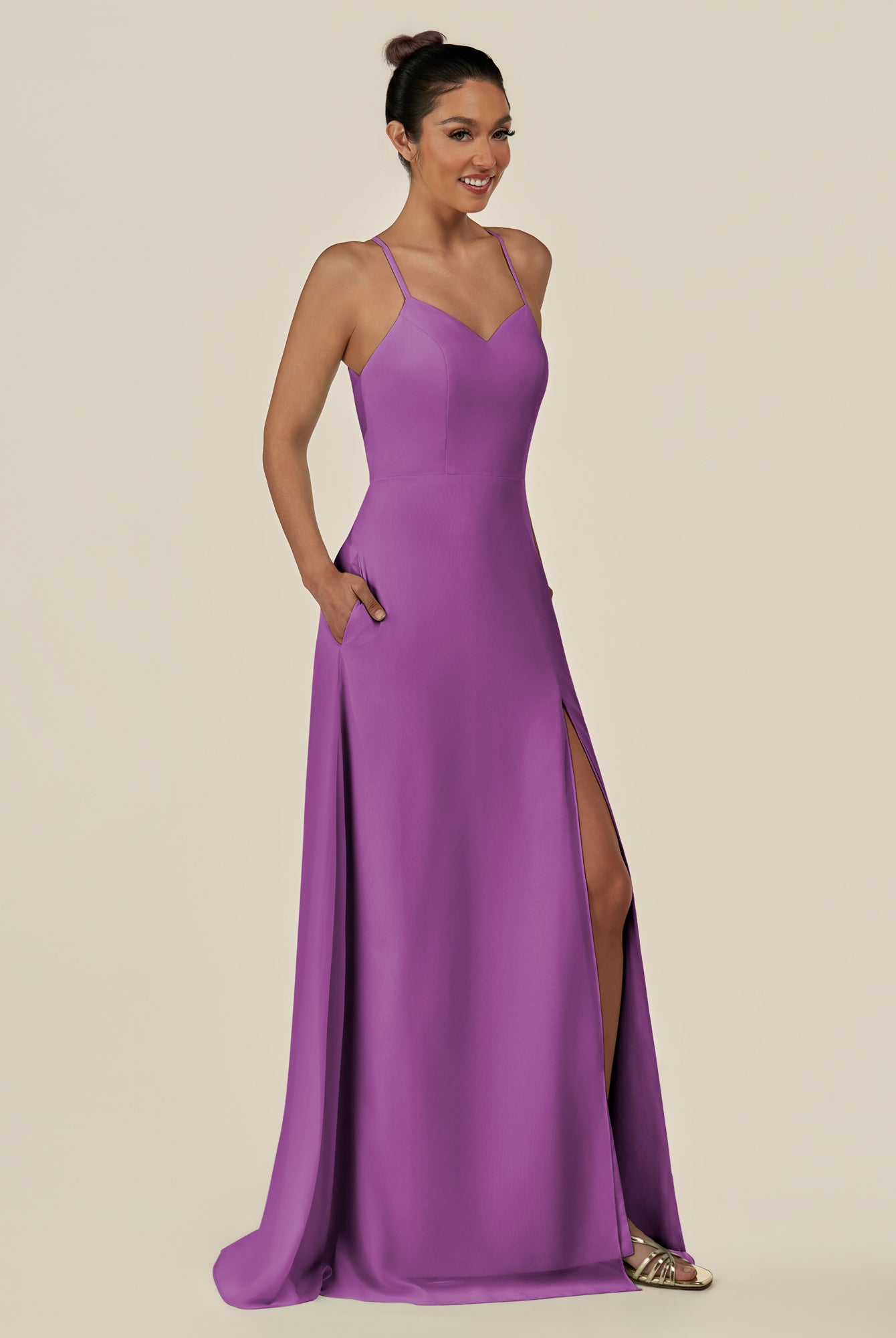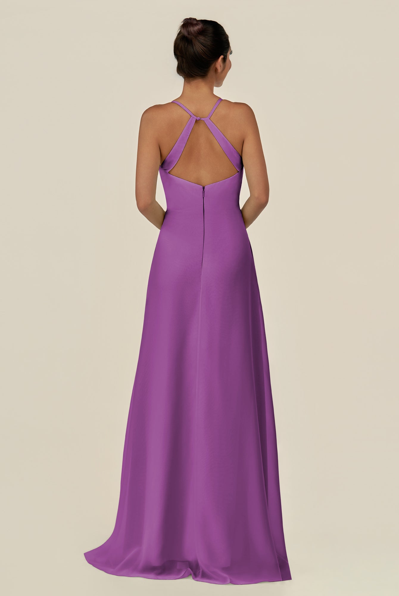 Cerin | Amethyst - Sheath V Neck Chiffon Long Bridesmaid Dress with Slit