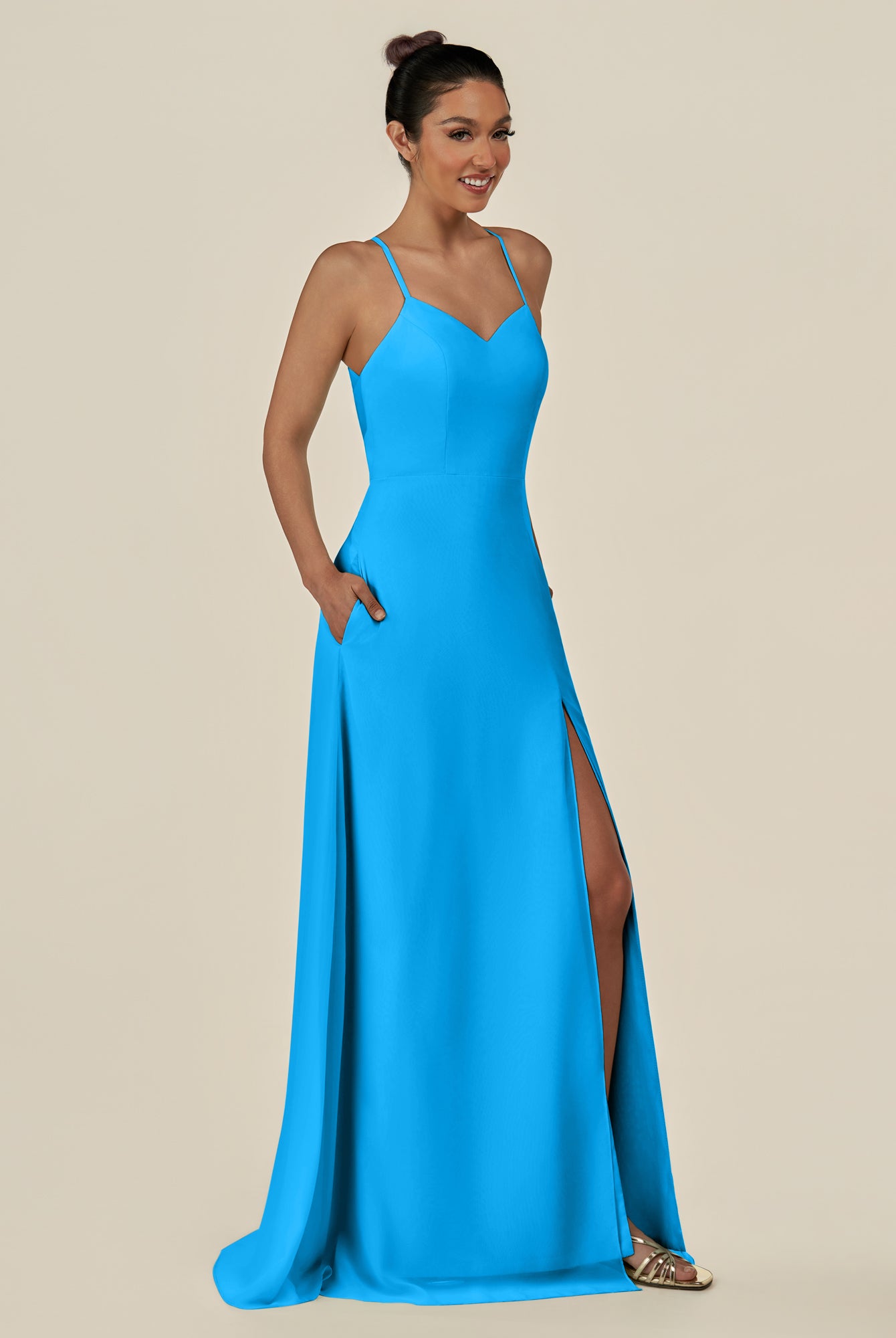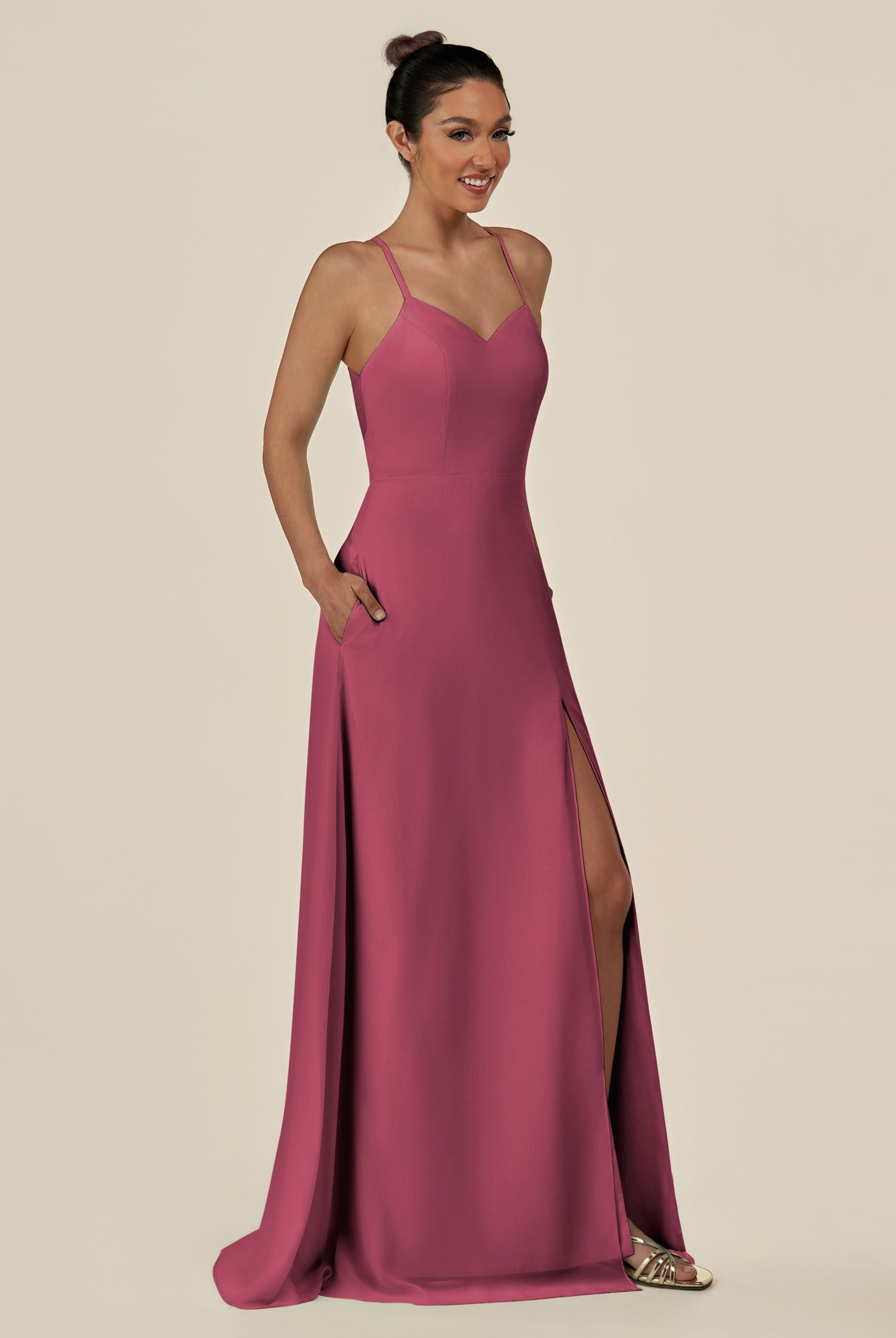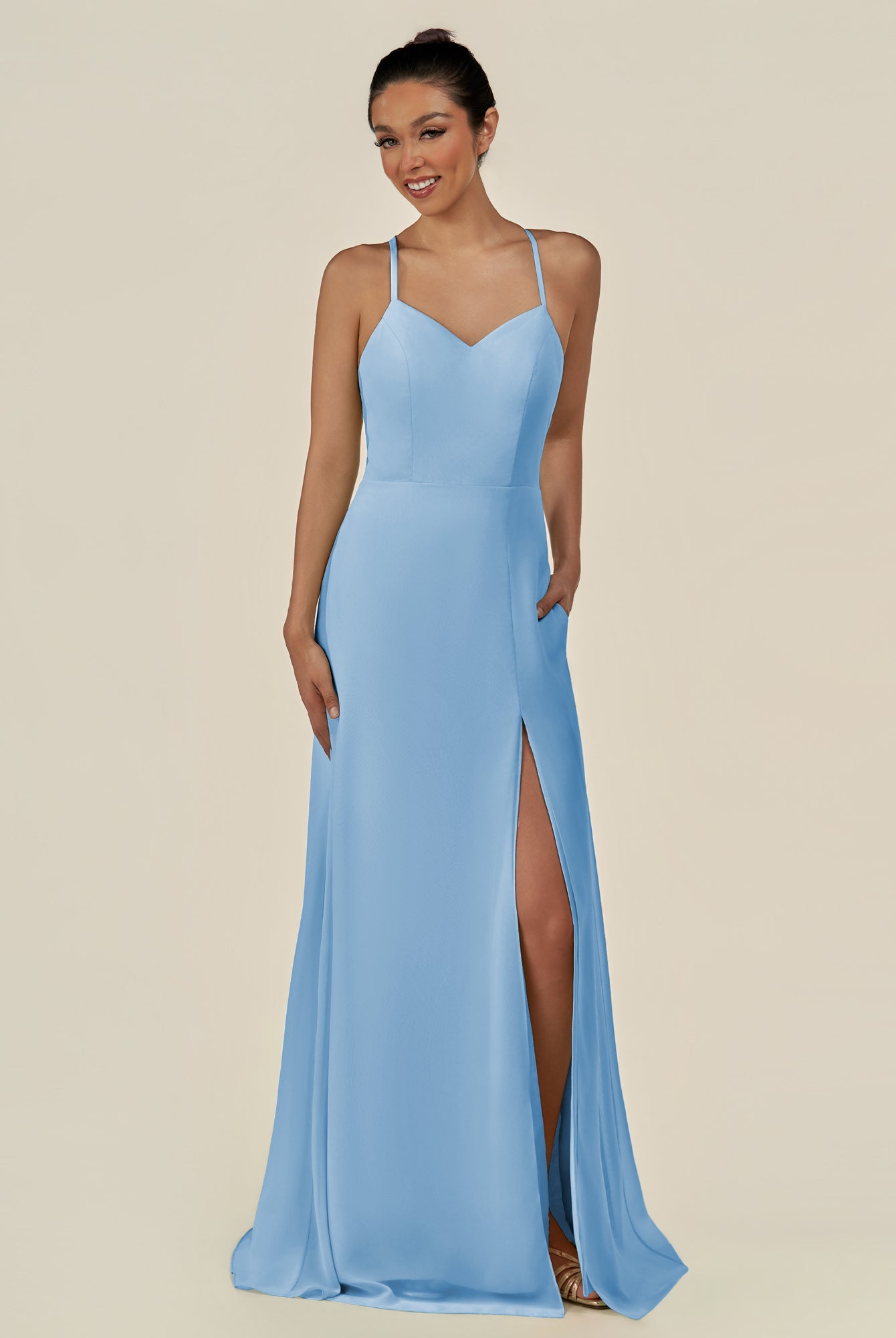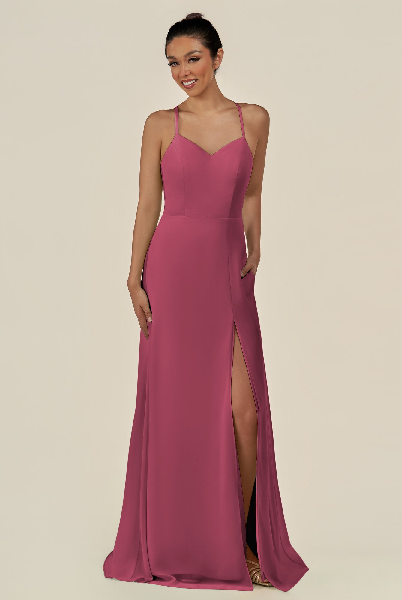 Cerin | Tahiti - Sheath V Neck Chiffon Long Bridesmaid Dress with Slit