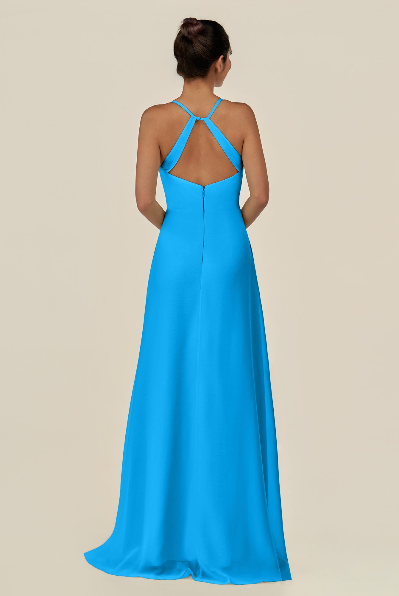 Cerin | Neptune - Sheath V Neck Chiffon Long Bridesmaid Dress with Slit