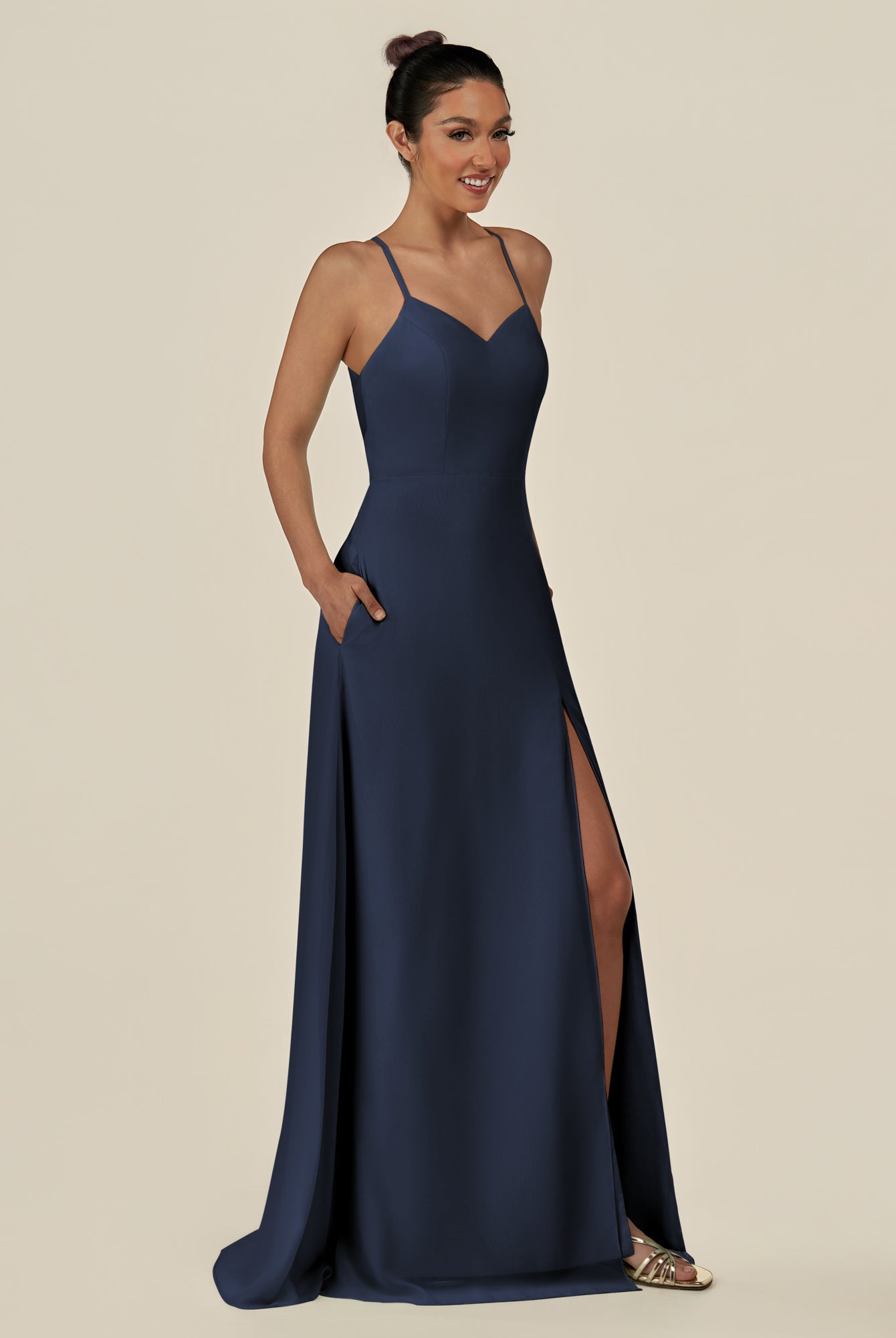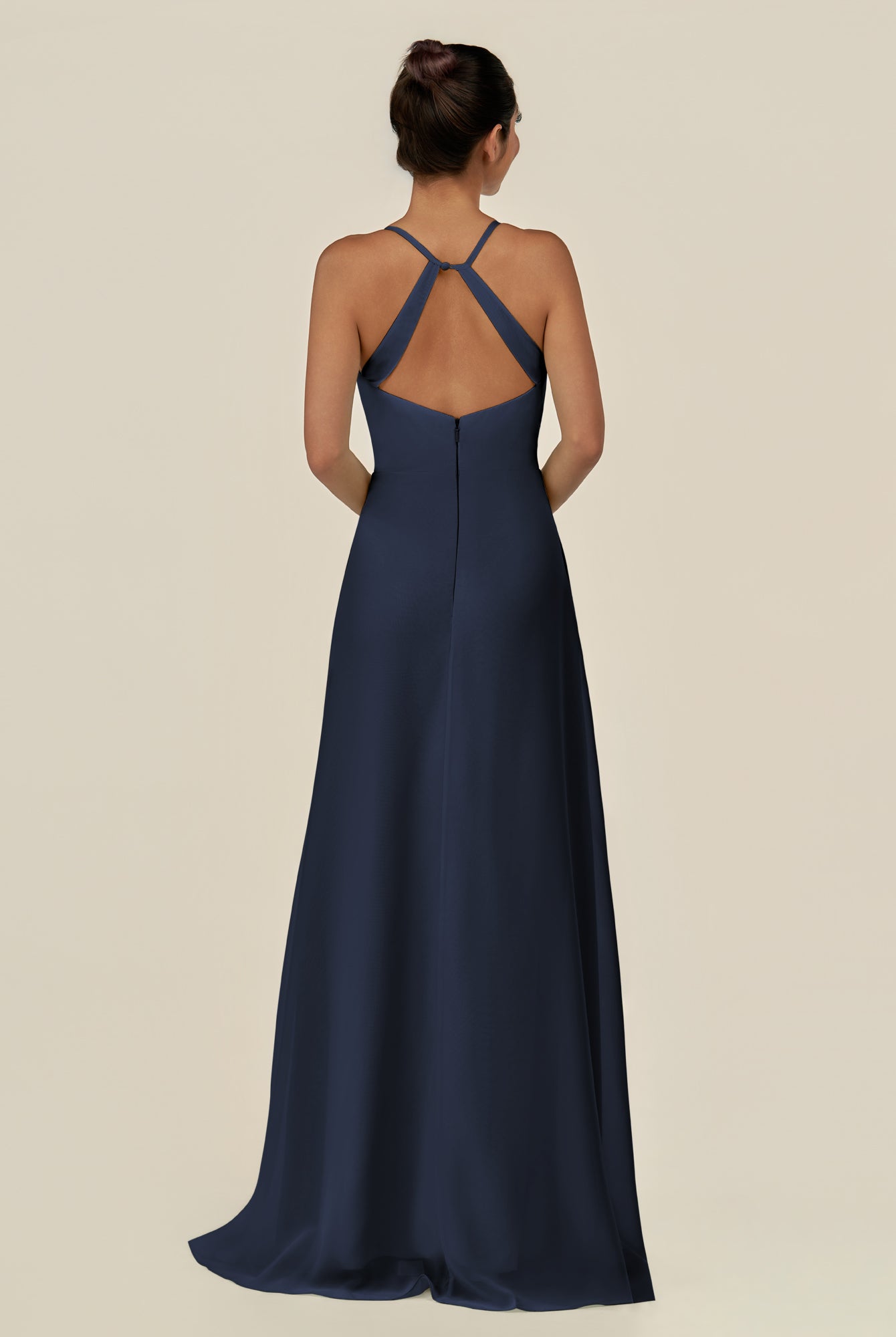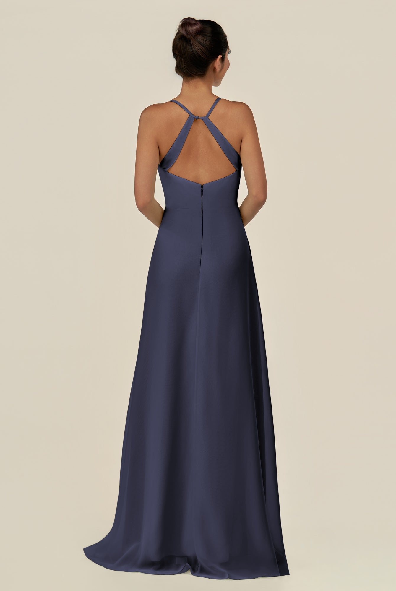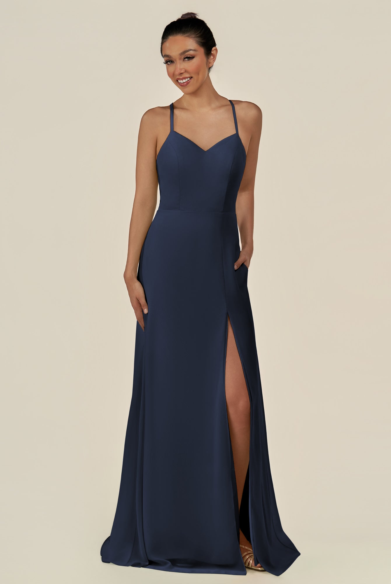 Cerin | Navy - Sheath V Neck Chiffon Long Bridesmaid Dress with Slit