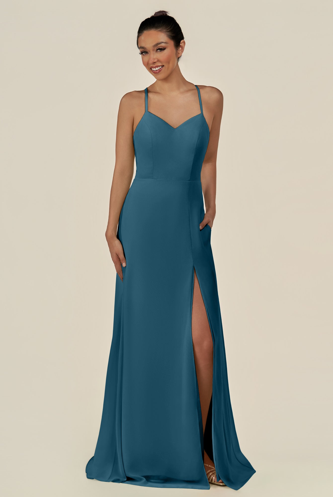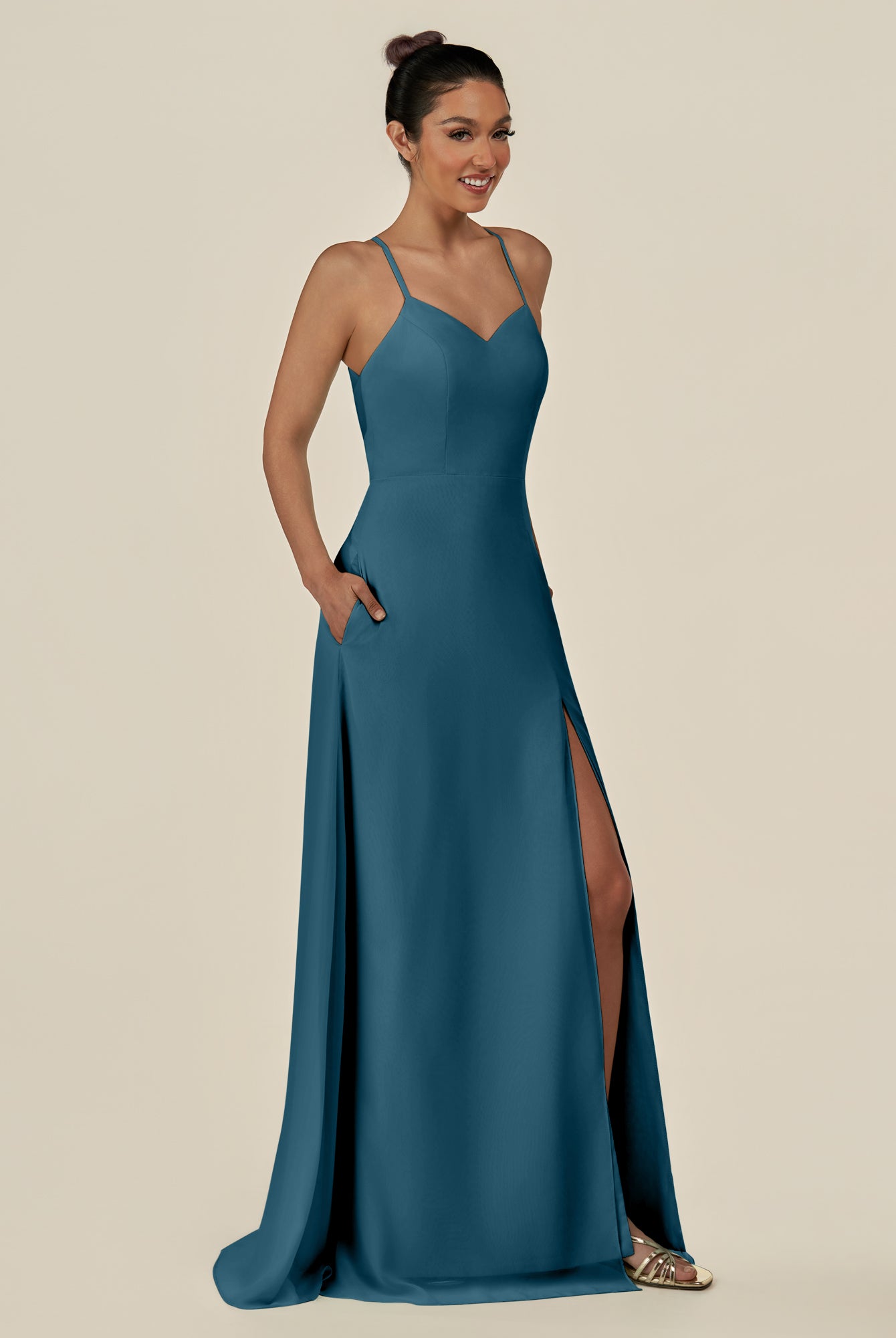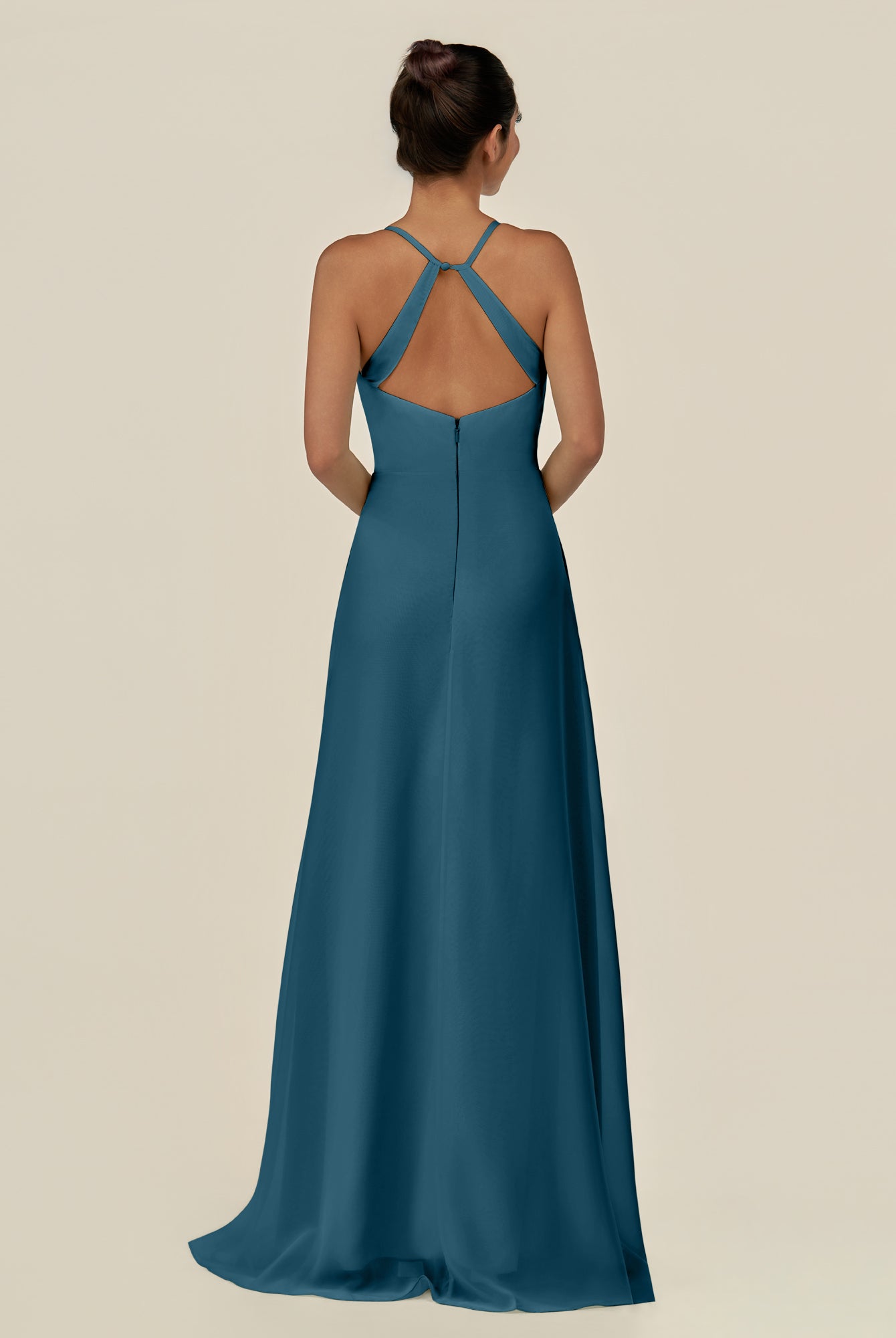 Cerin | Dark Teal - Sheath V Neck Chiffon Long Bridesmaid Dress with Slit