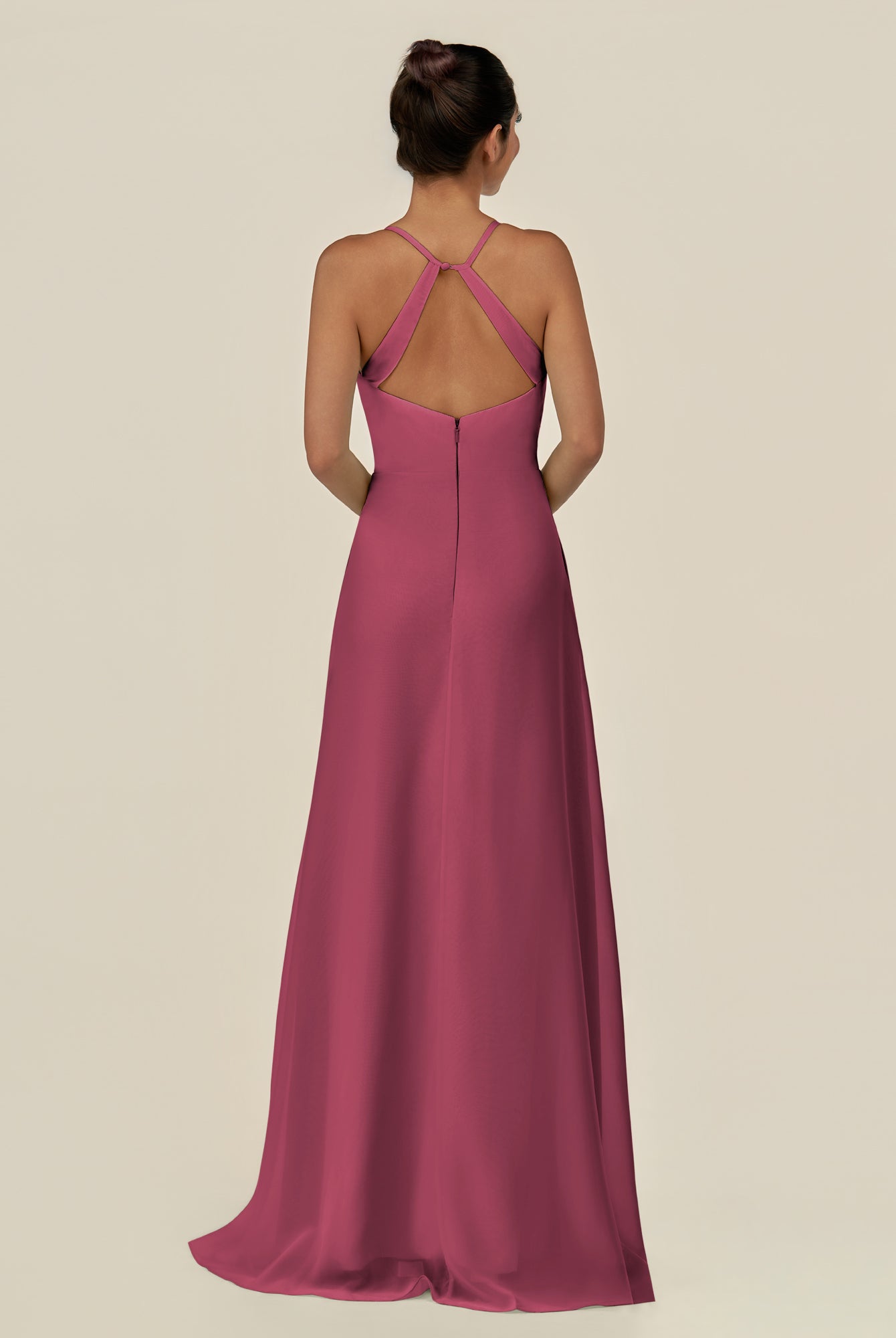 Cerin | Vintage Mauve - Sheath V Neck Chiffon Long Bridesmaid Dress with Slit