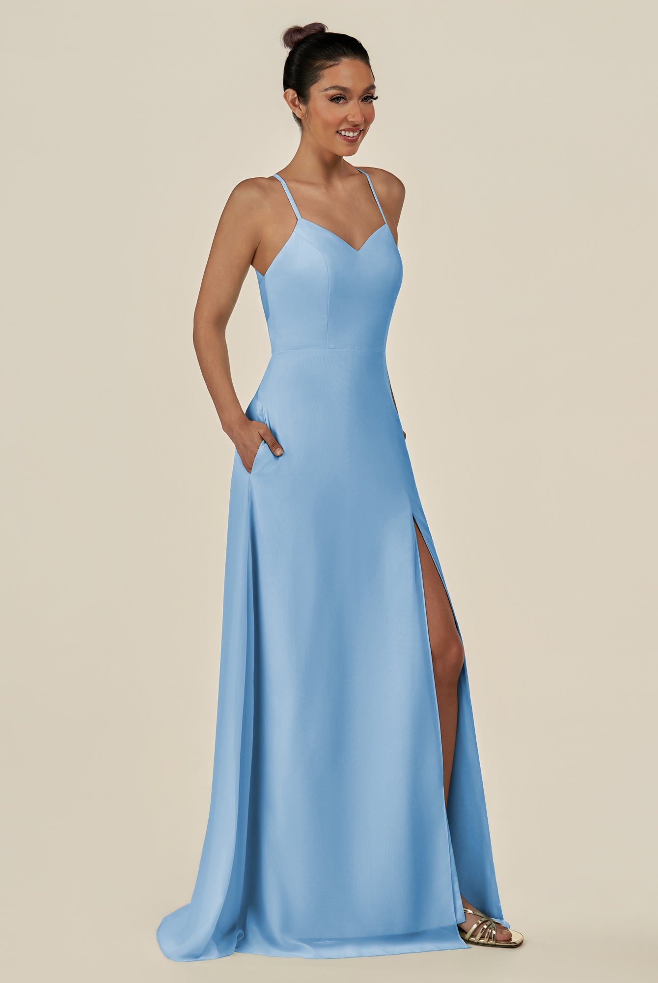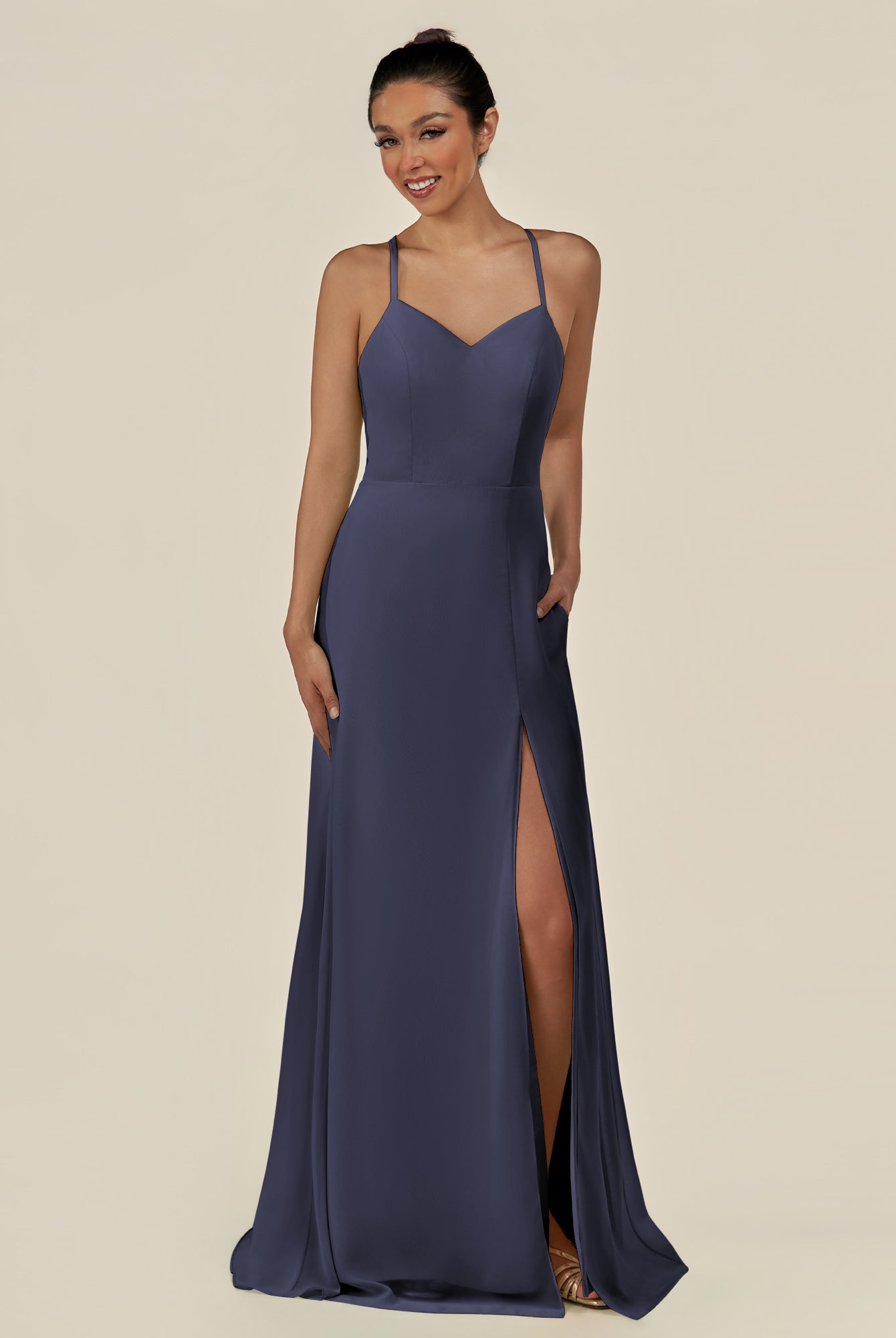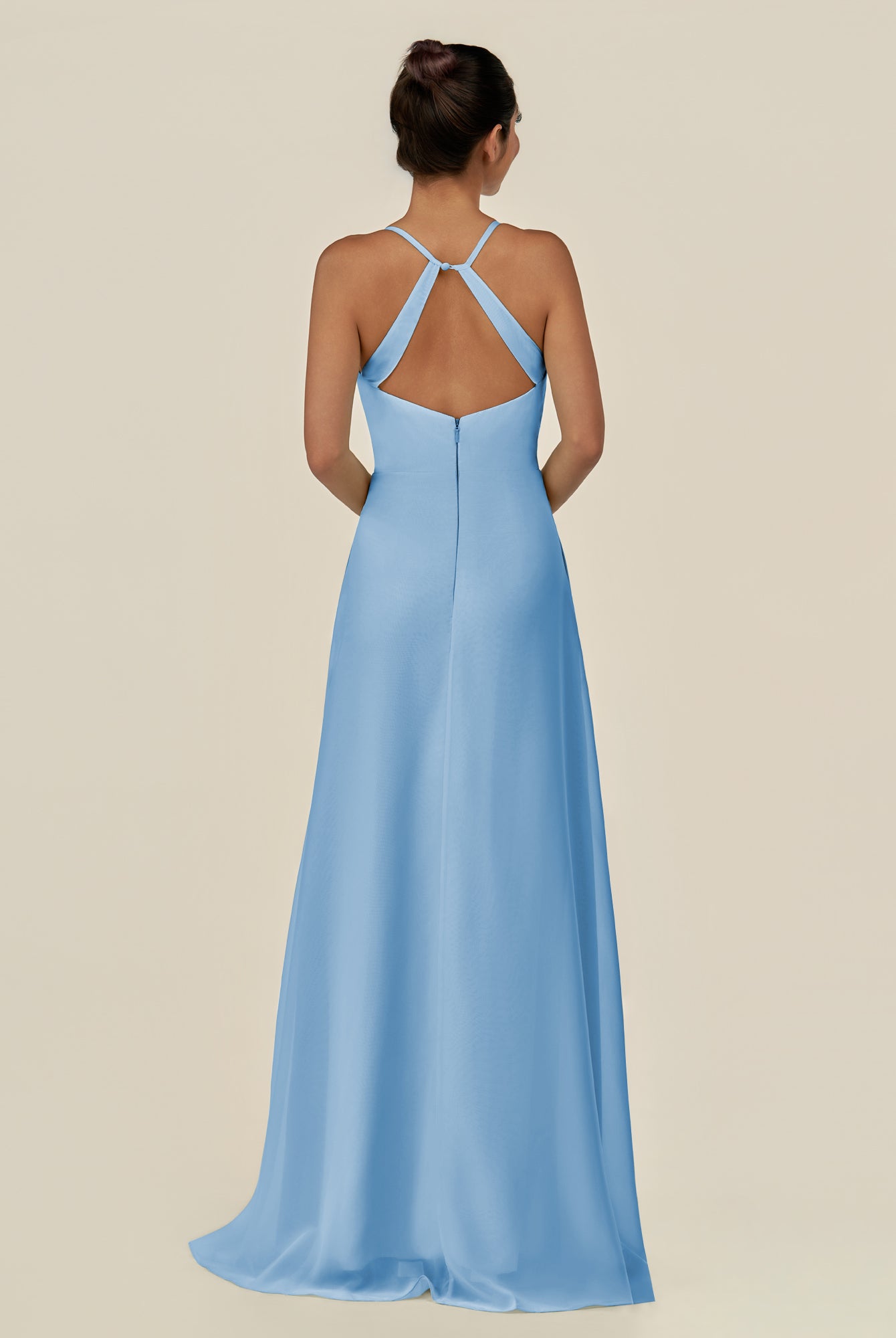 Cerin | Blue Jay - Sheath V Neck Chiffon Long Bridesmaid Dress with Slit