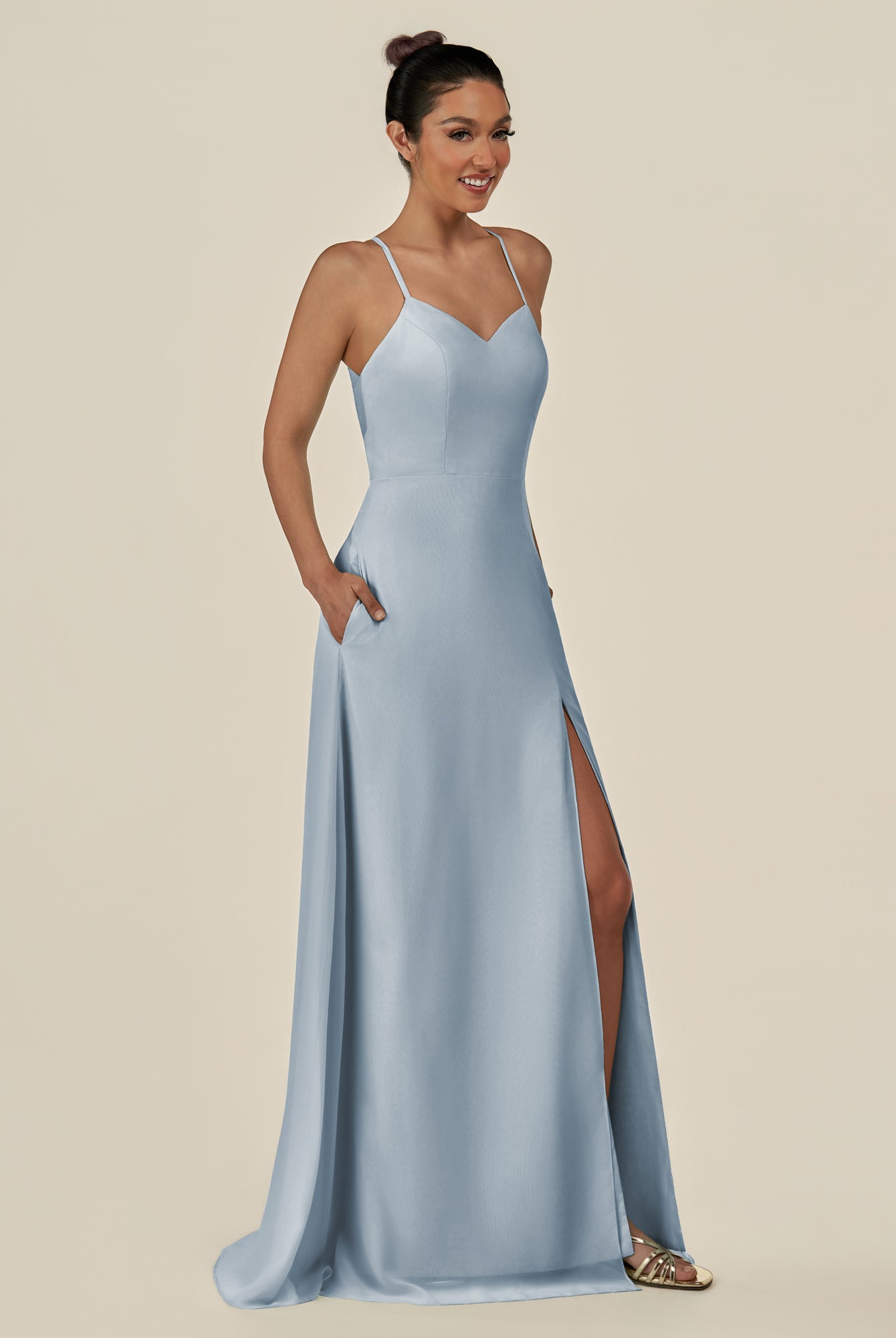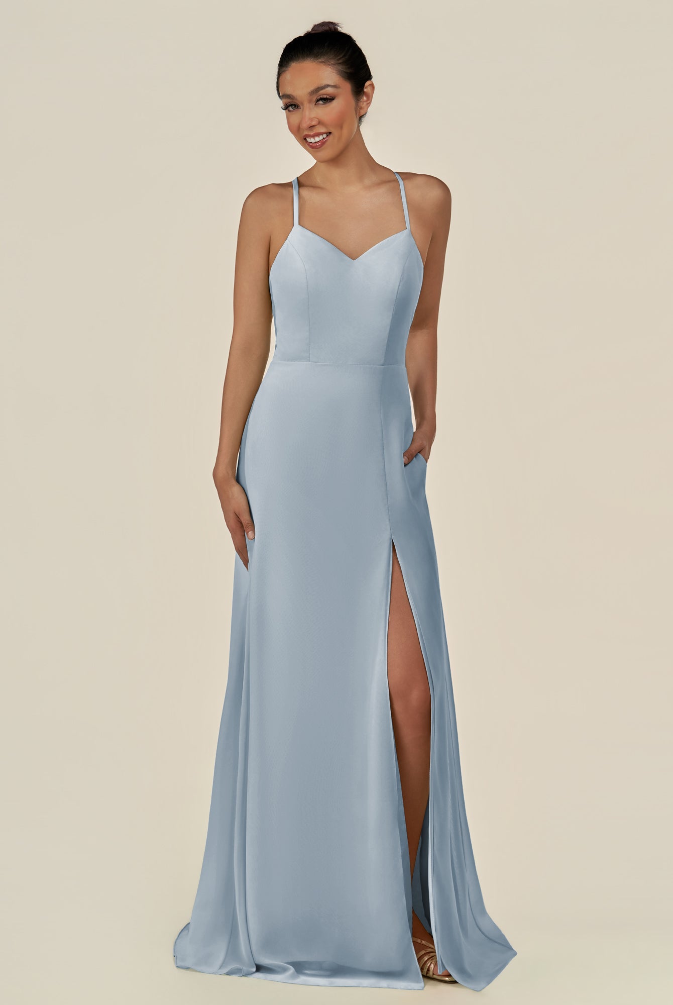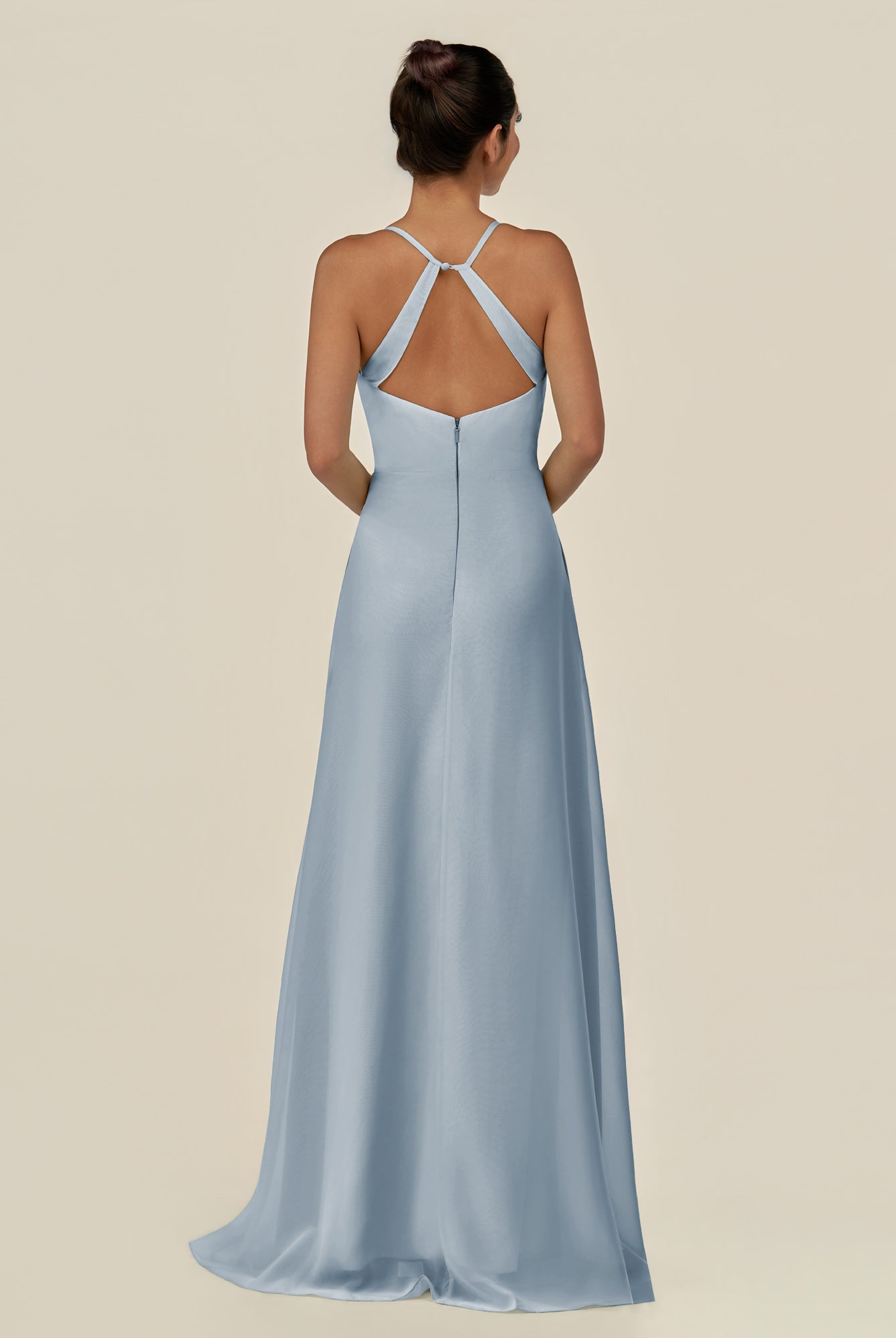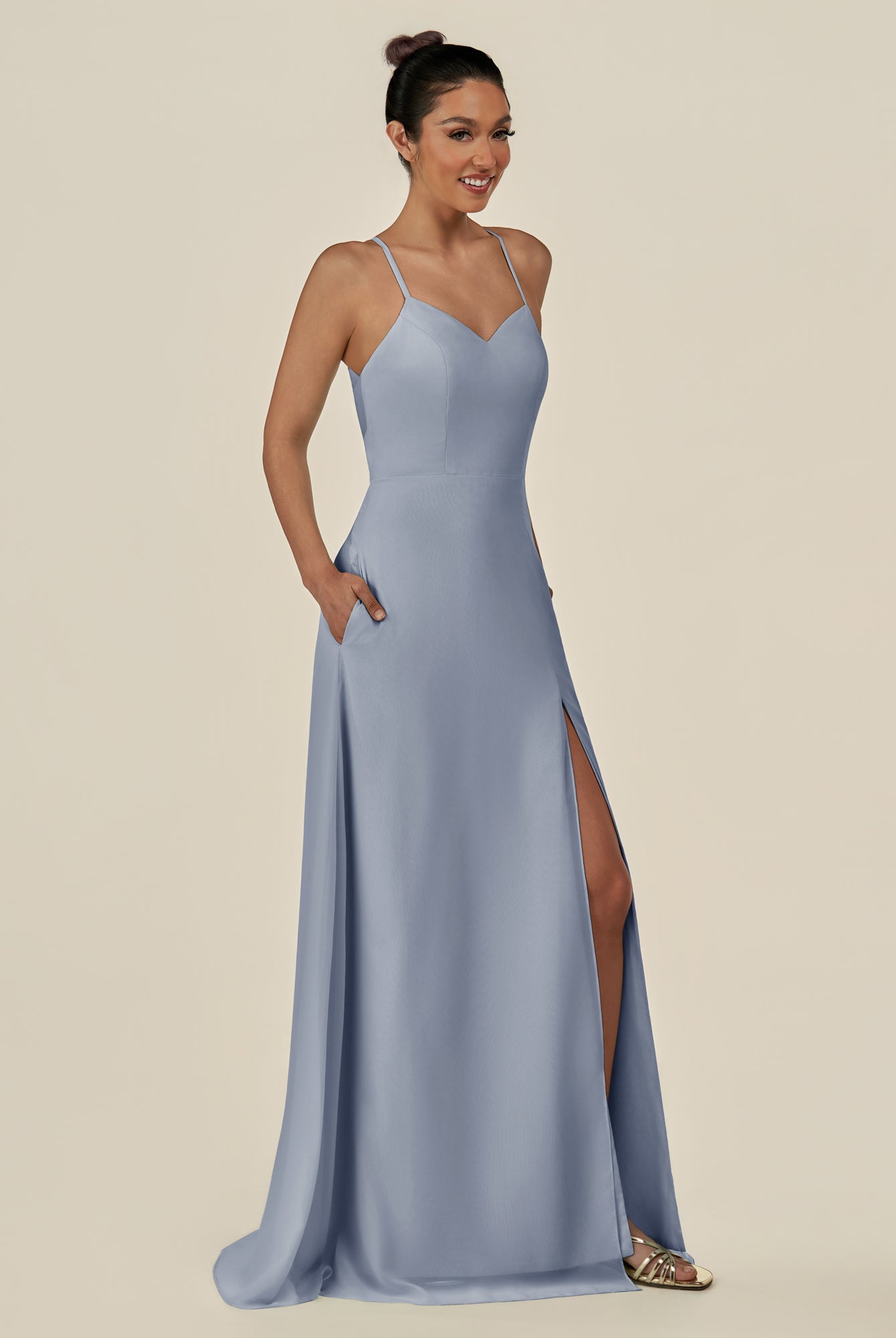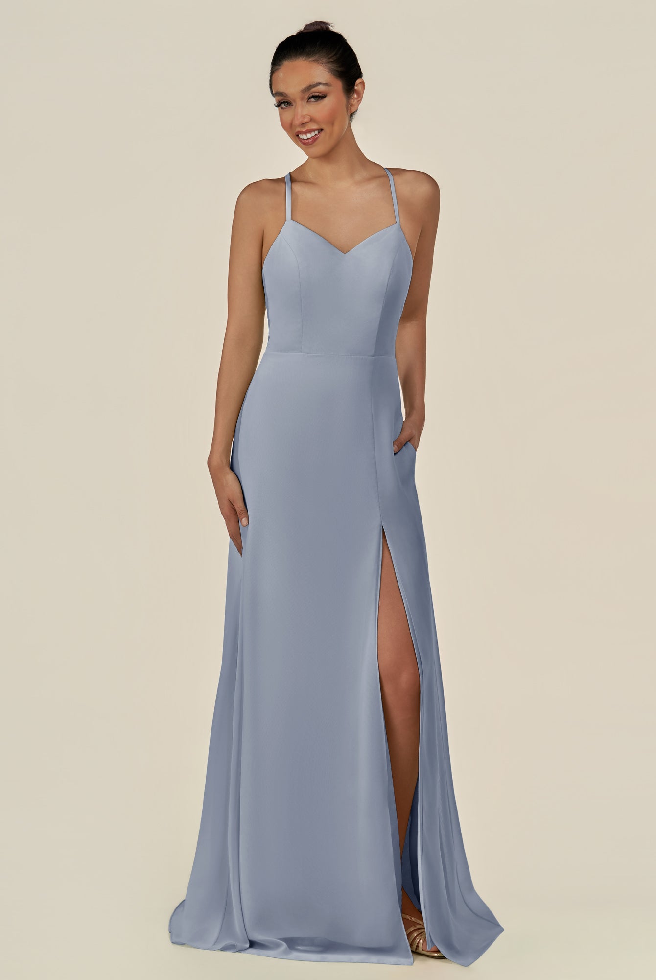 Cerin | Dusty Blue - Sheath V Neck Chiffon Long Bridesmaid Dress with Slit