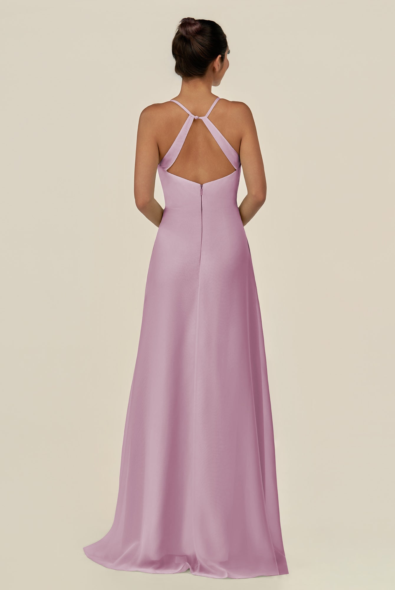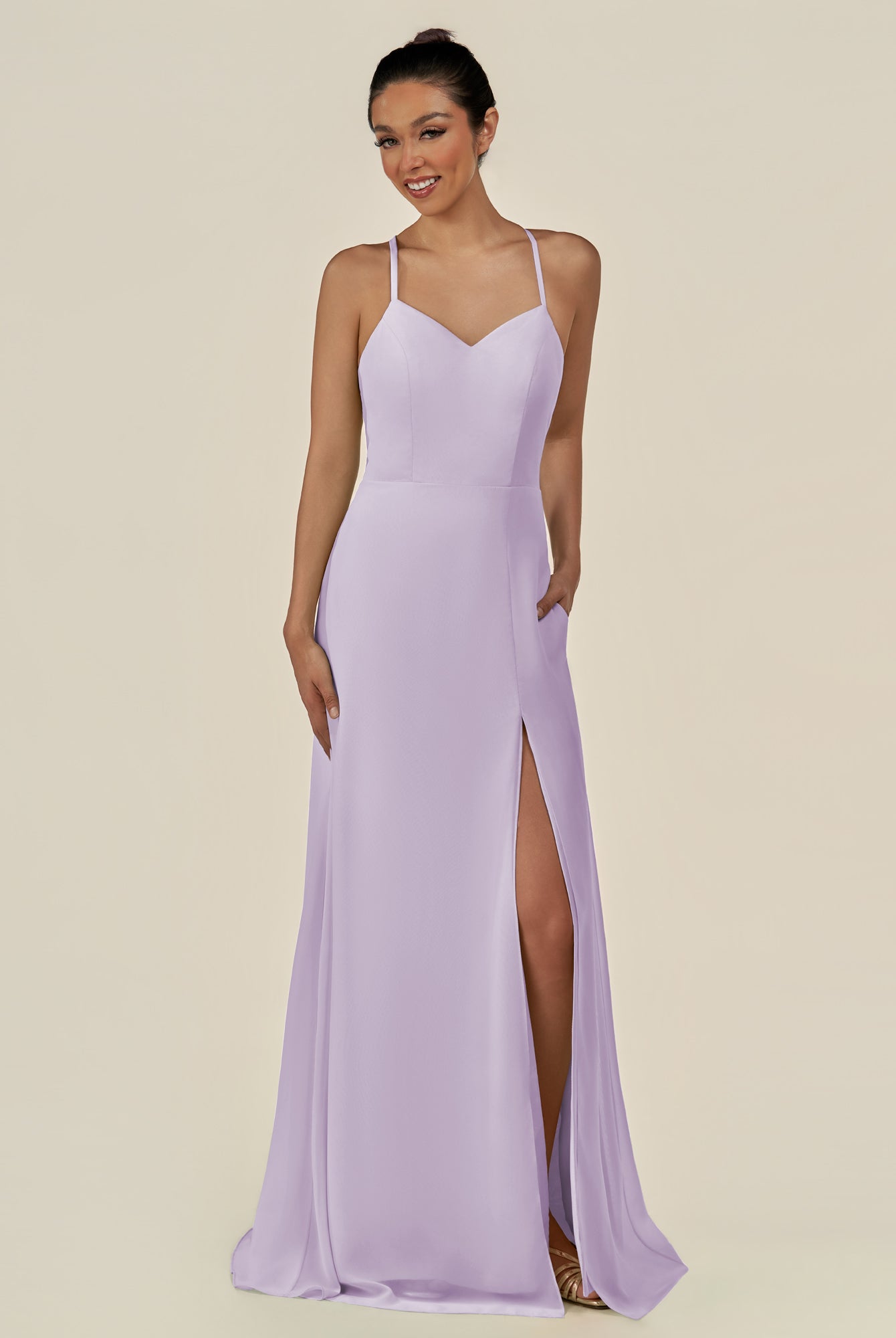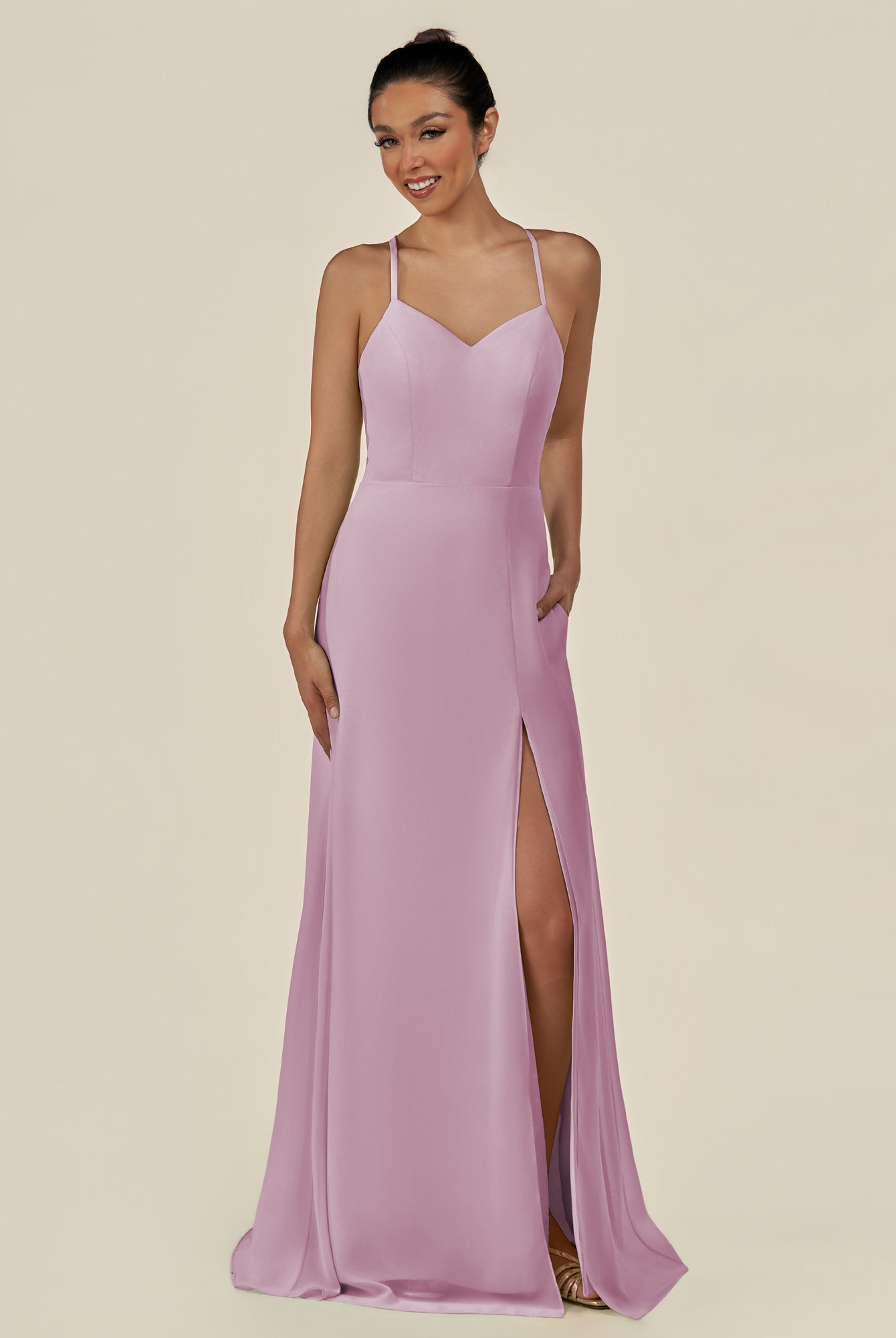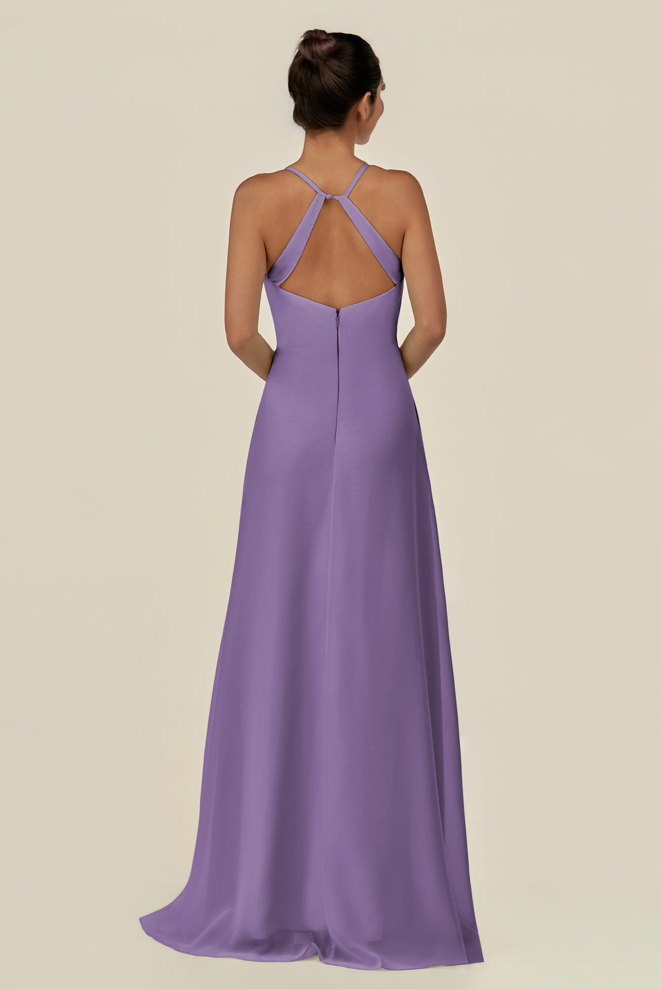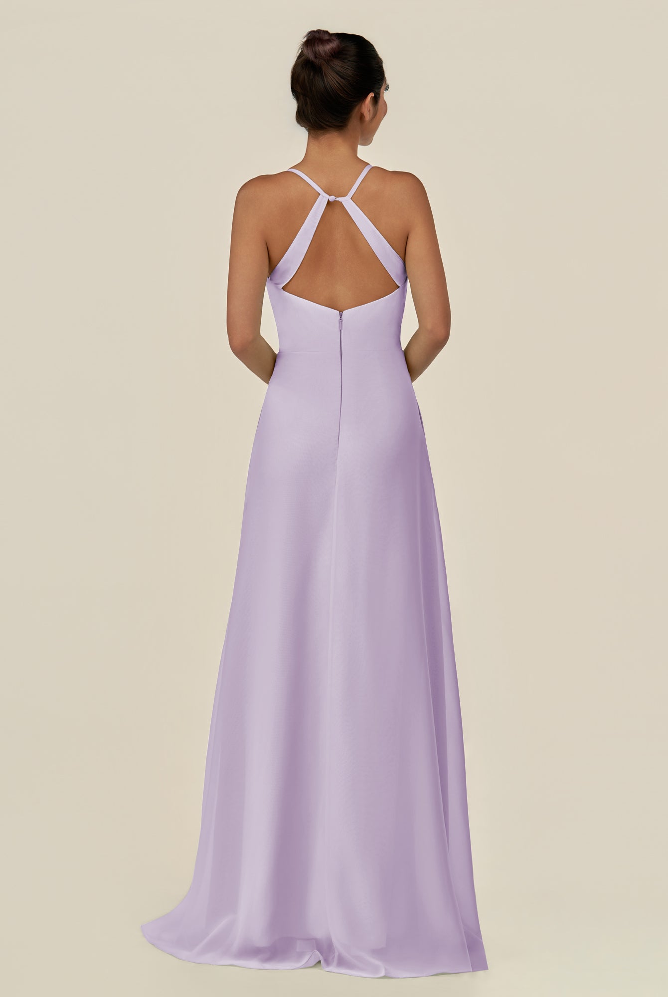 Cerin | Lavender - Sheath V Neck Chiffon Long Bridesmaid Dress with Slit