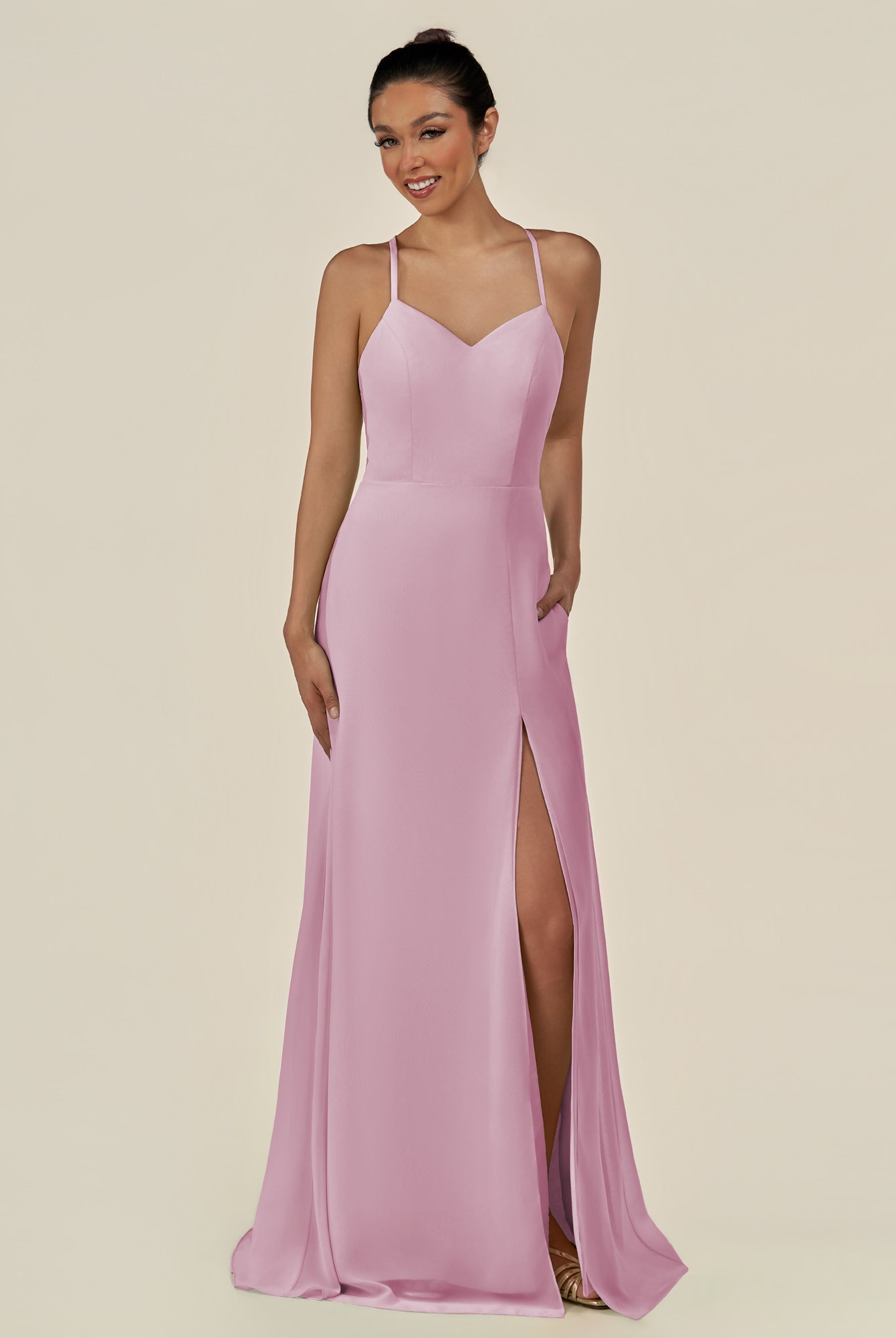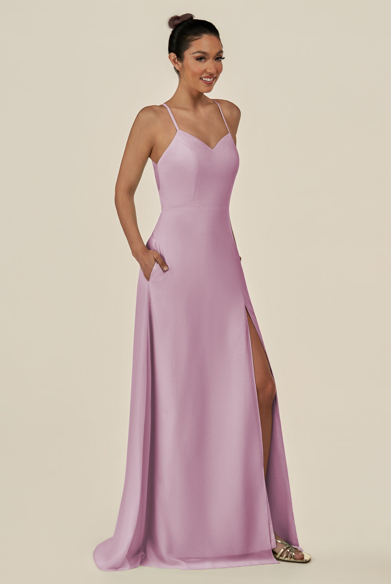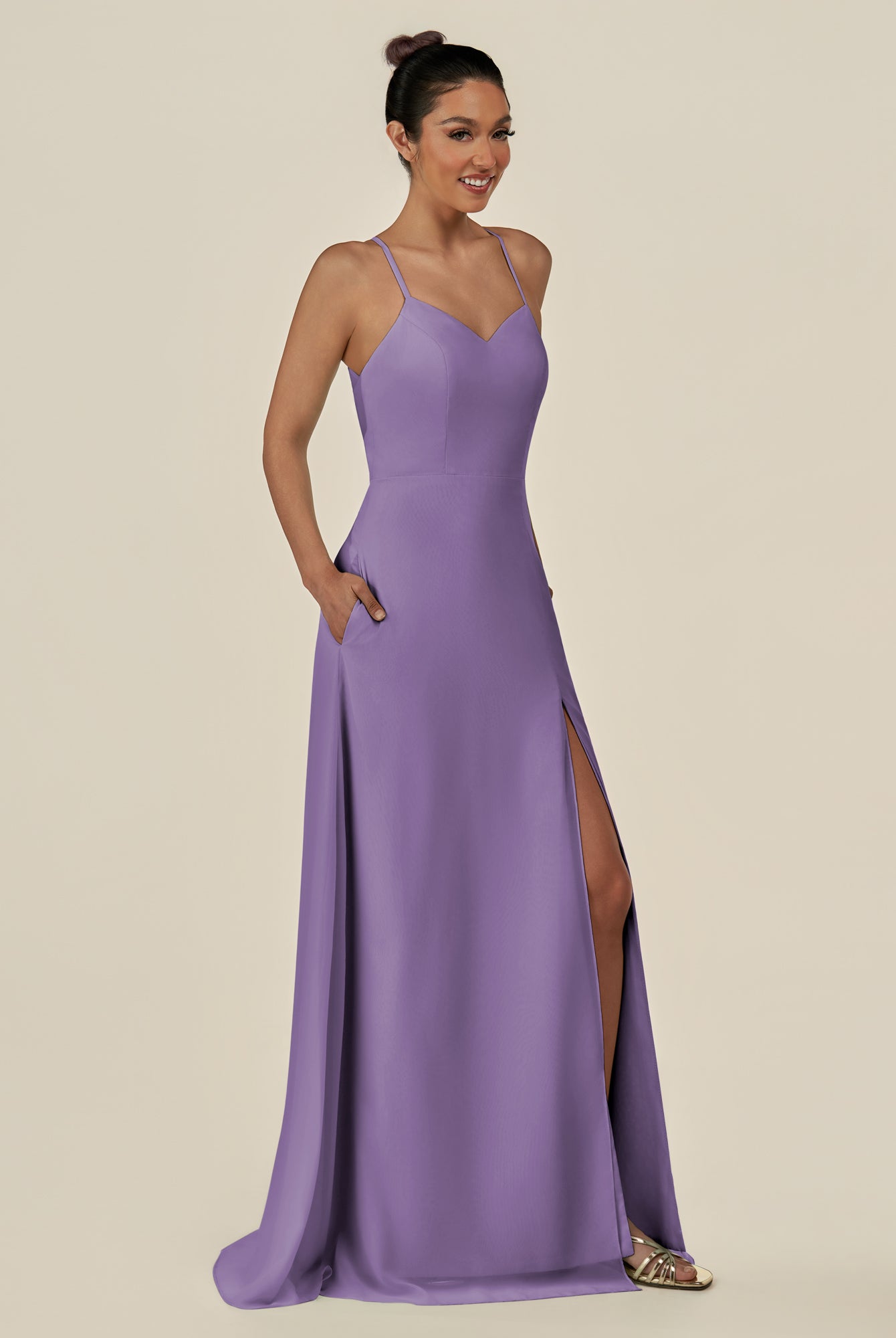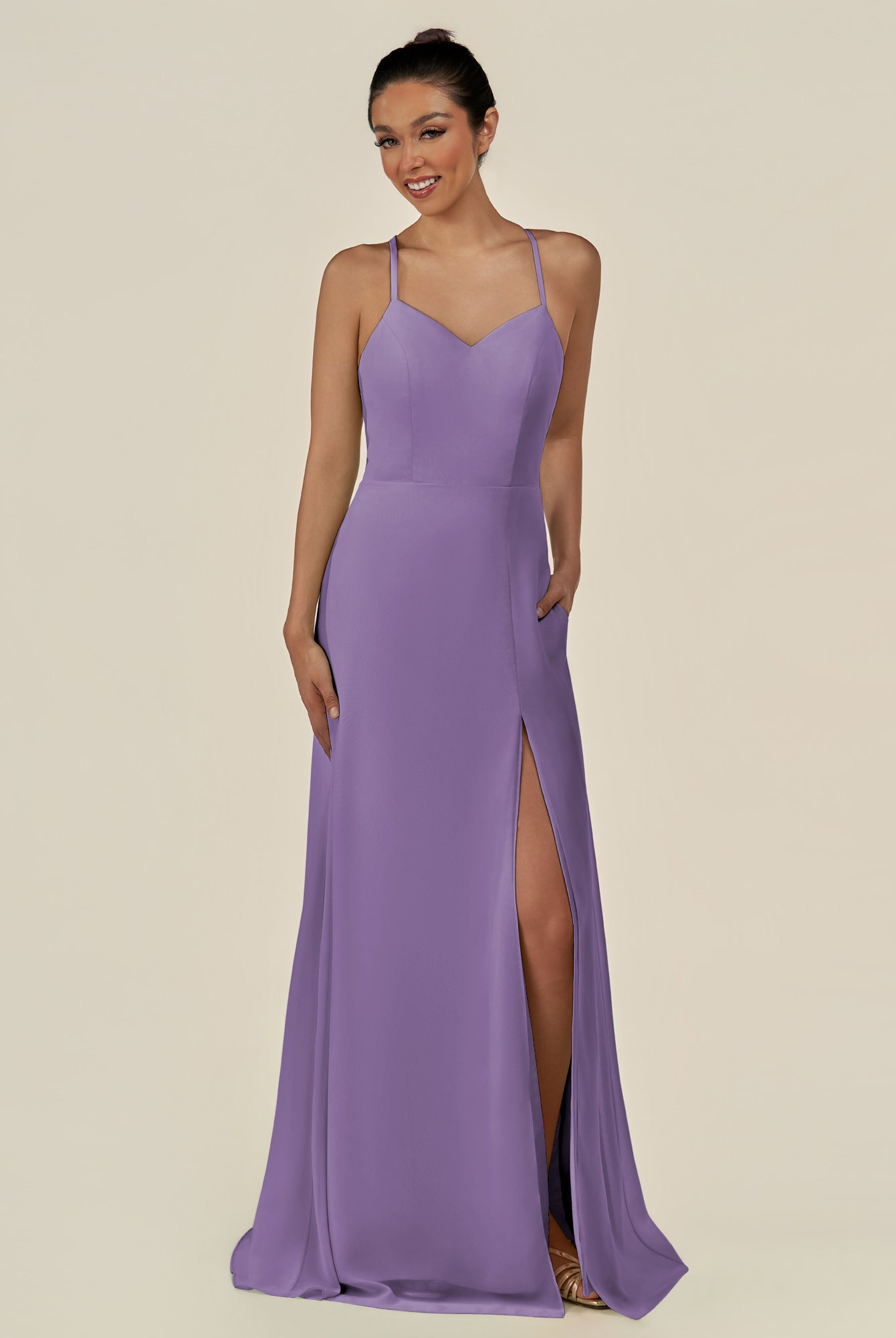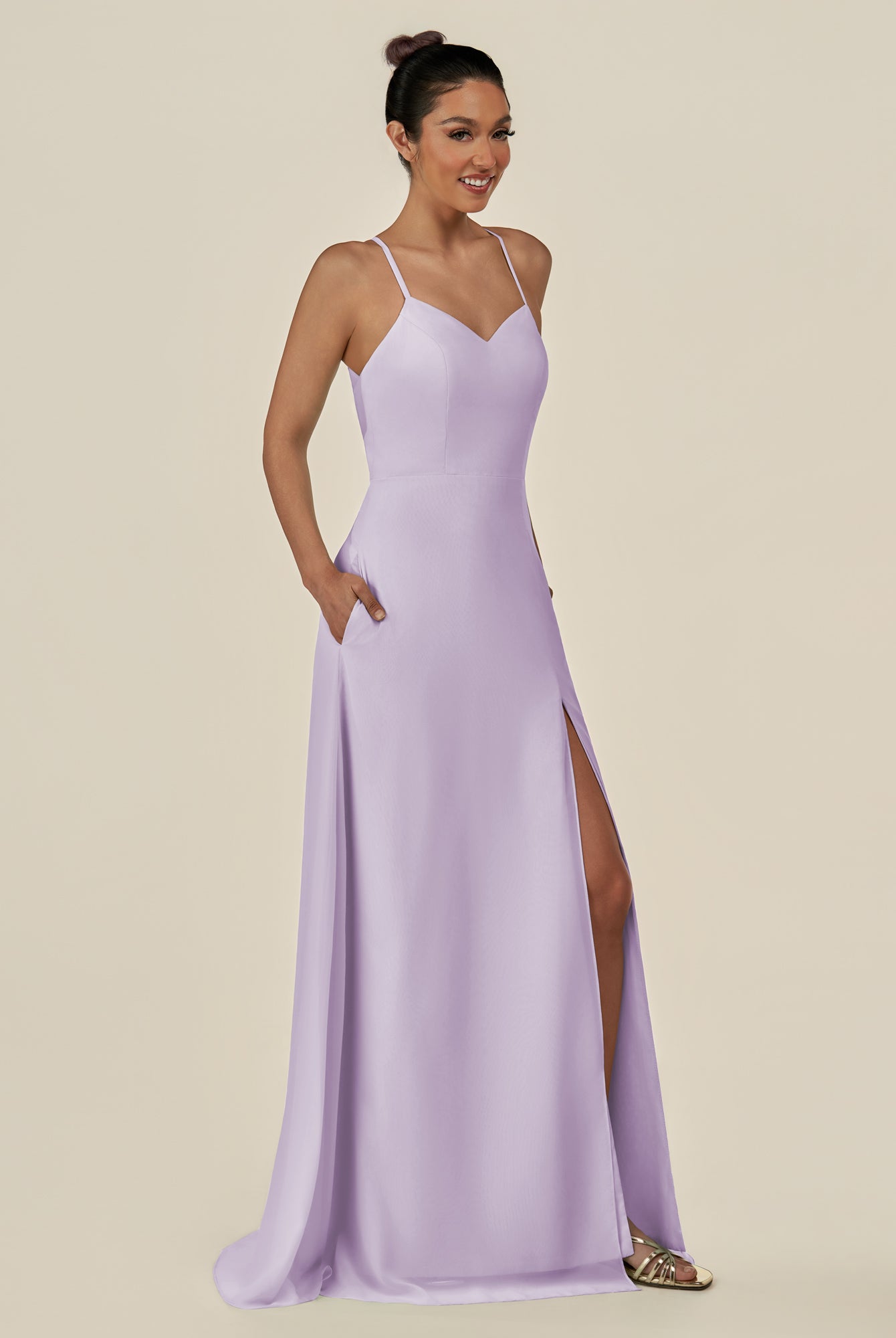Cerin | Lavender - Sheath V Neck Chiffon Long Bridesmaid Dress with Slit