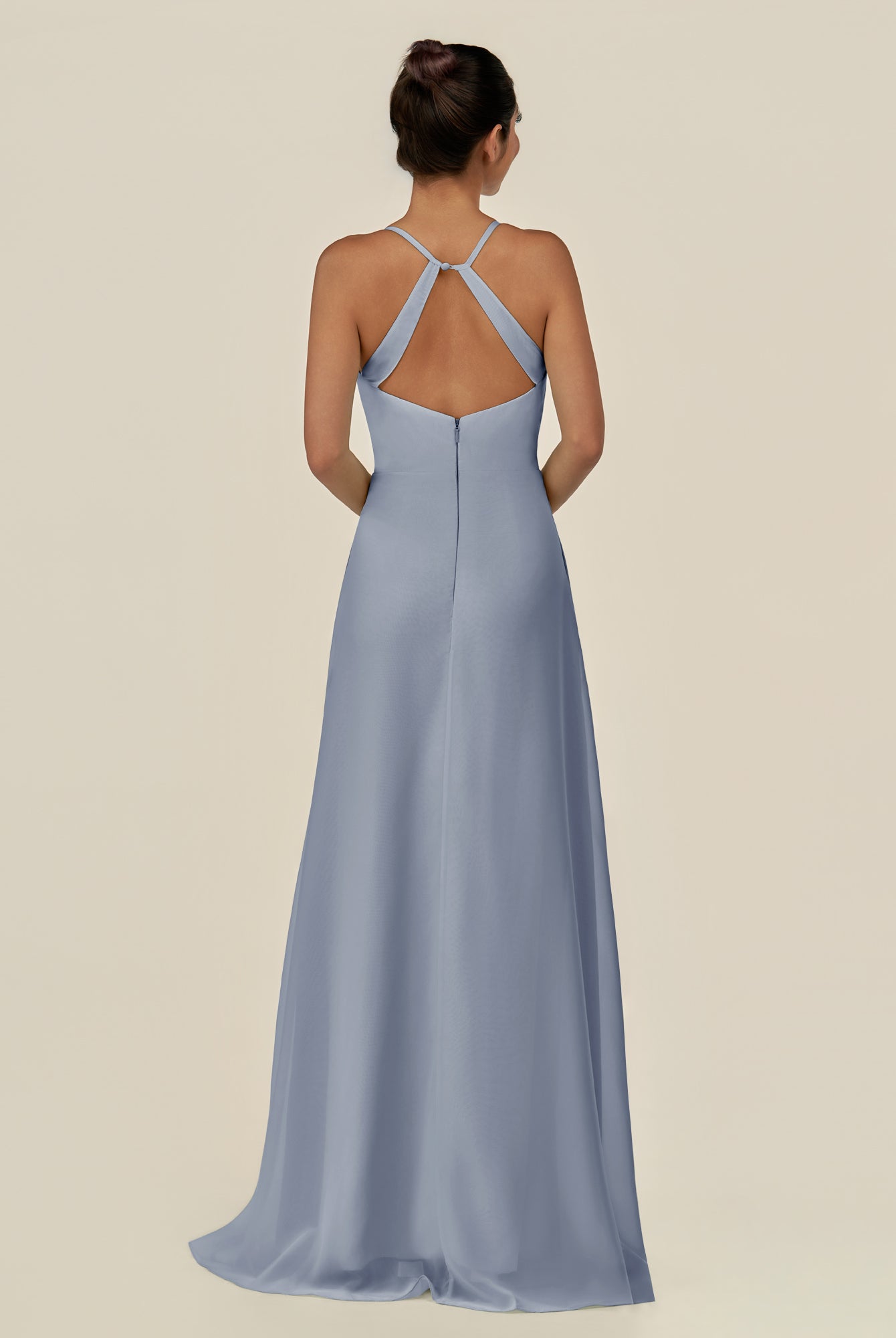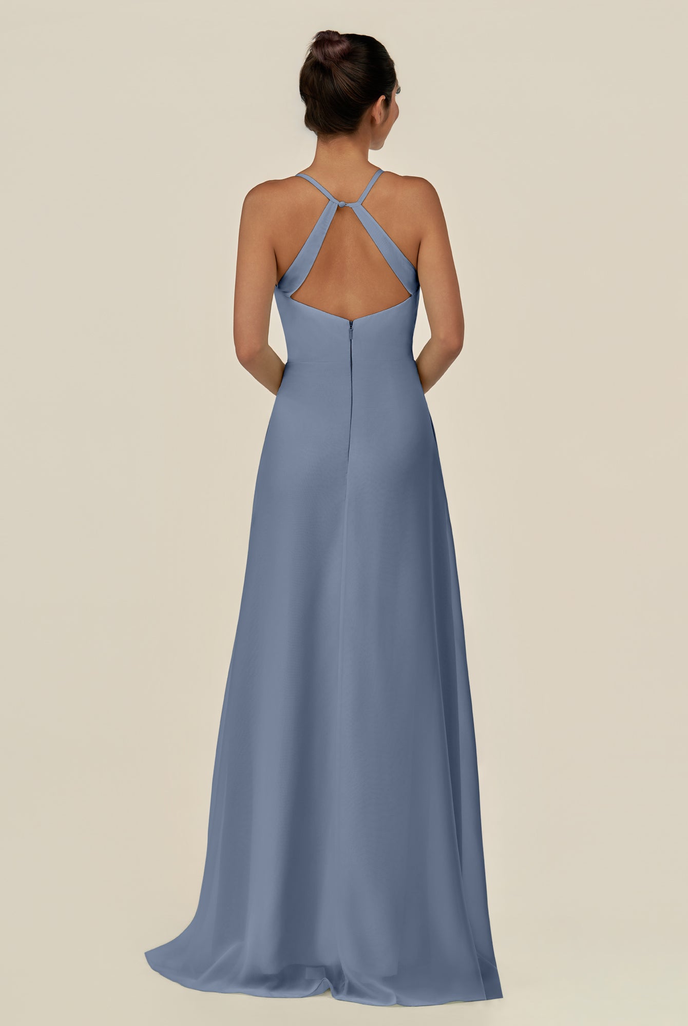 Cerin | Dusk Blue - Sheath V Neck Chiffon Long Bridesmaid Dress with Slit