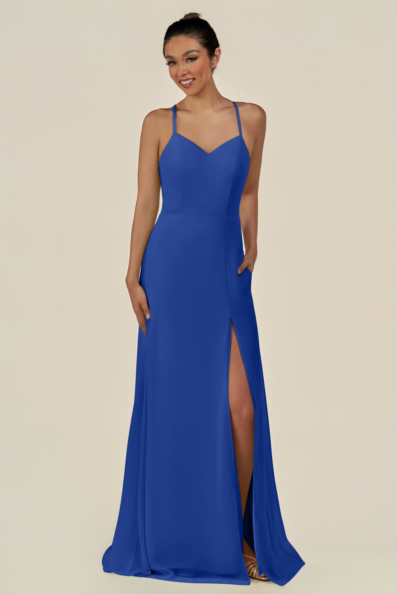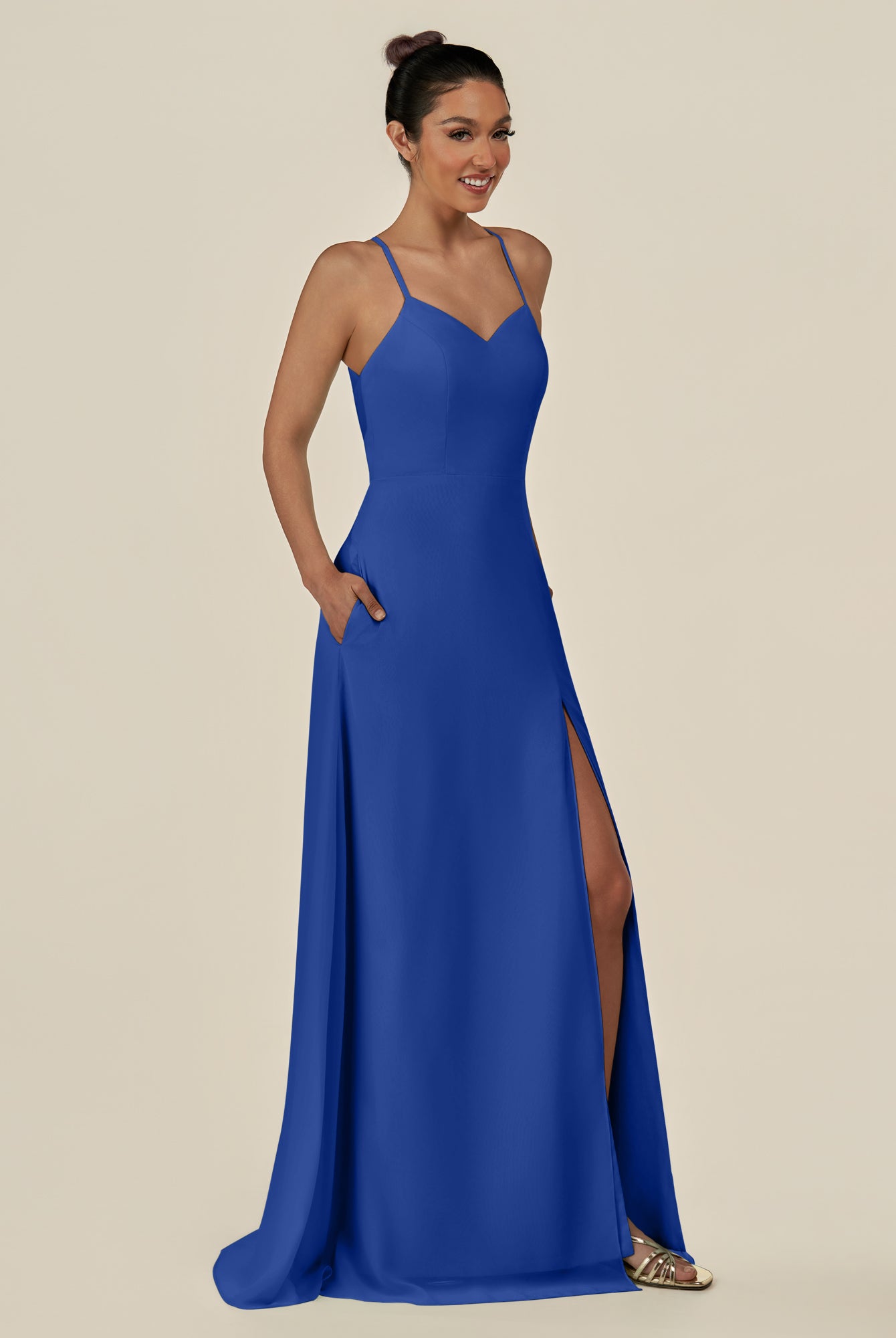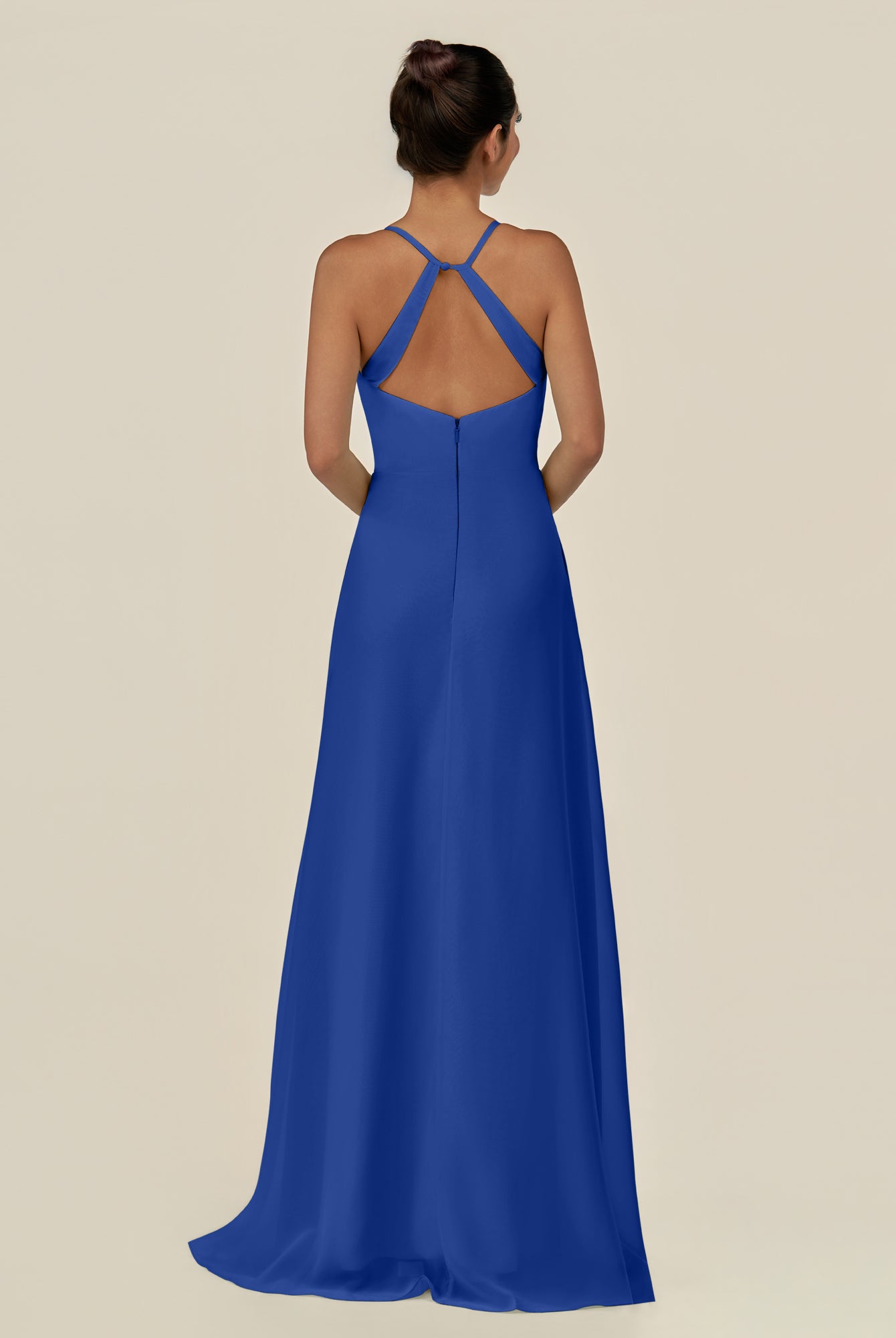 Cerin | Royal Blue - Sheath V Neck Chiffon Long Bridesmaid Dress with Slit