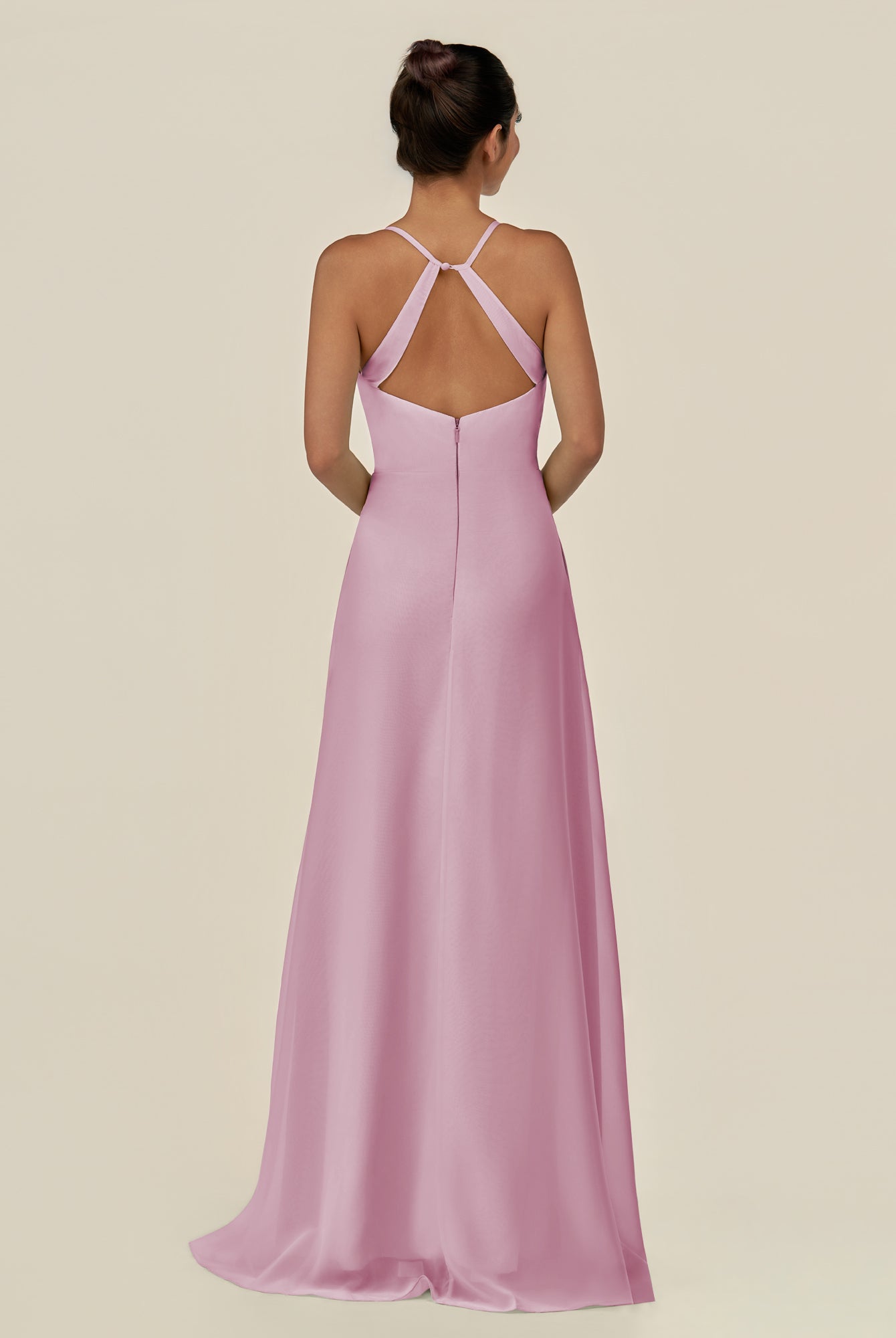 Cerin | Desert Rose - Sheath V Neck Chiffon Long Bridesmaid Dress with Slit