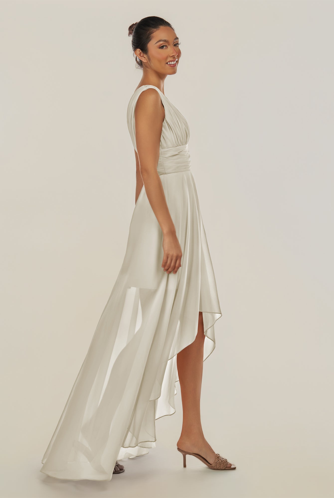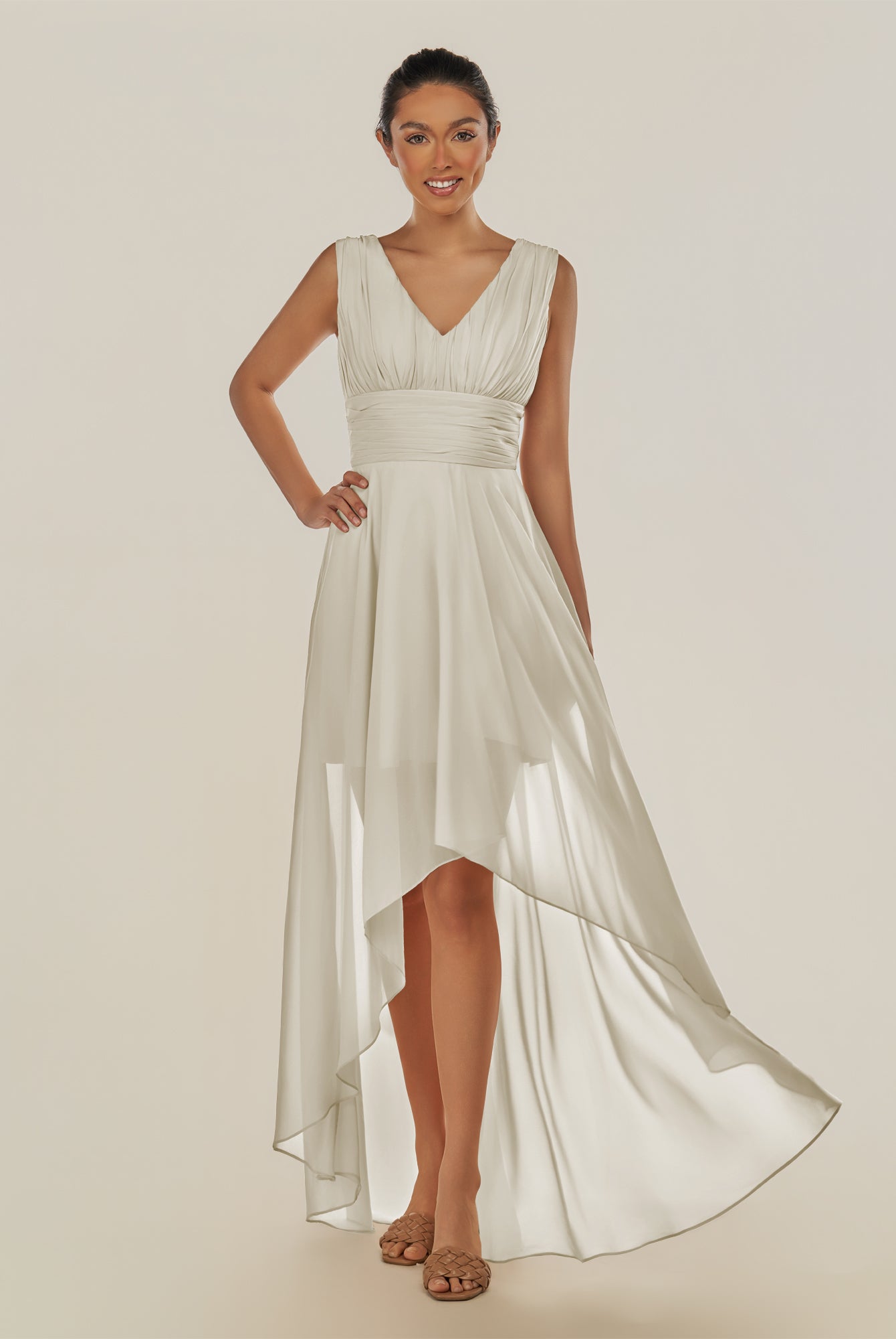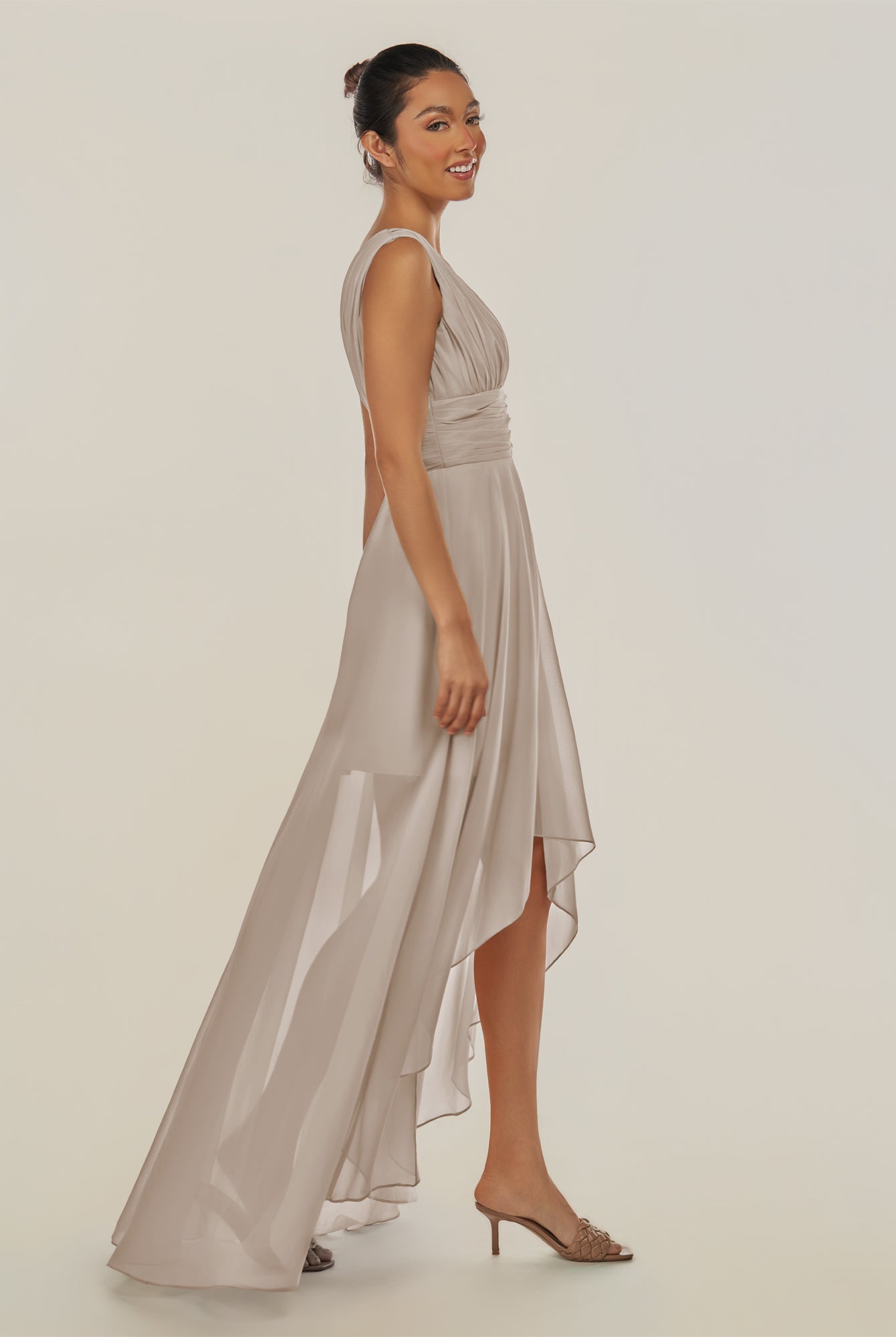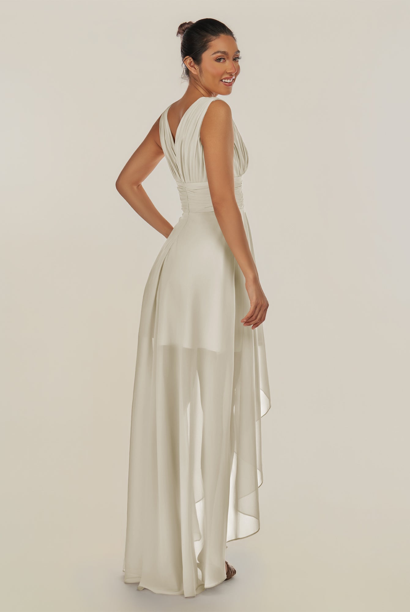 Jovi | Dove Gray - A Line Chiffon V Neck High-low Length Pleated Long Bridesmaid Dress