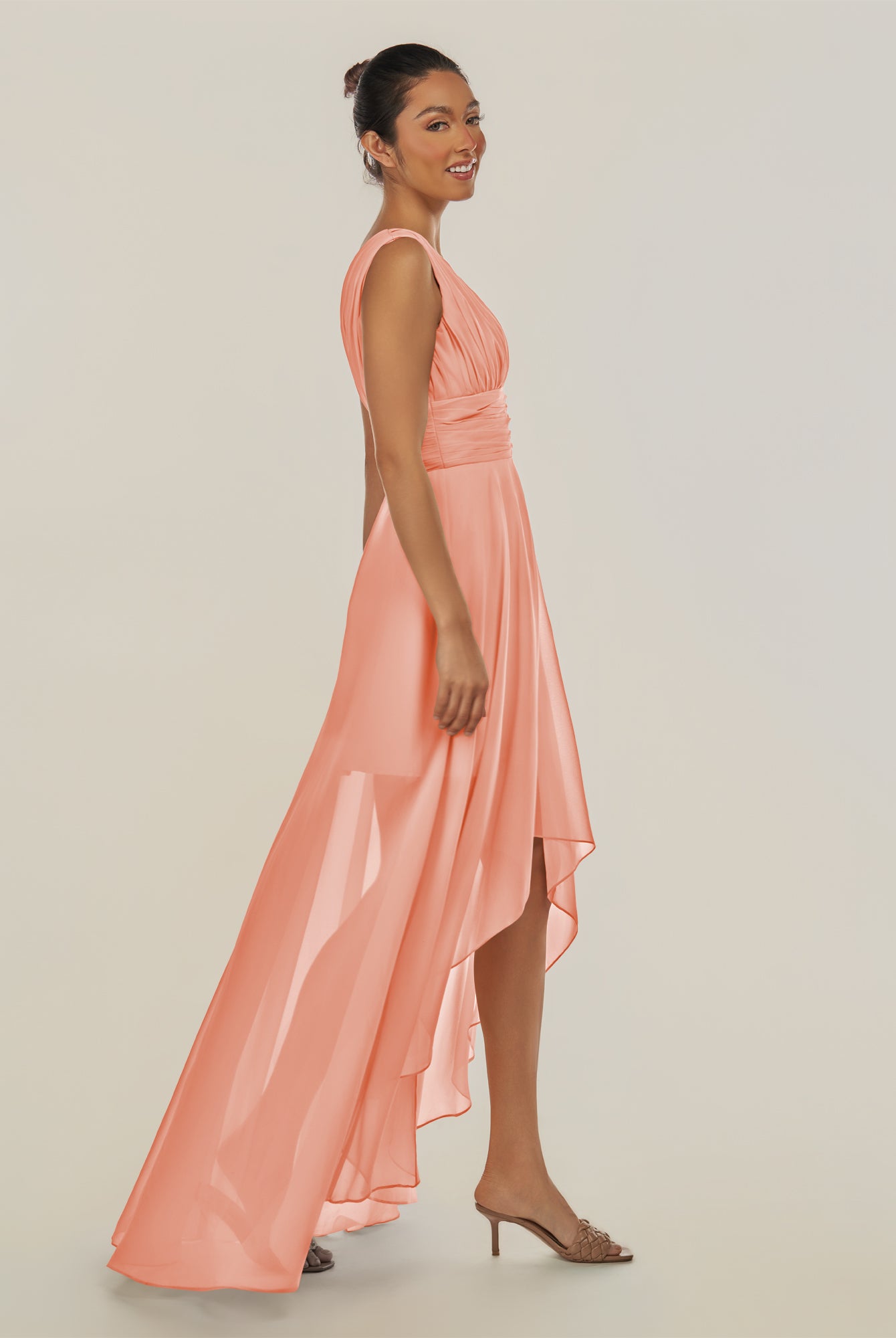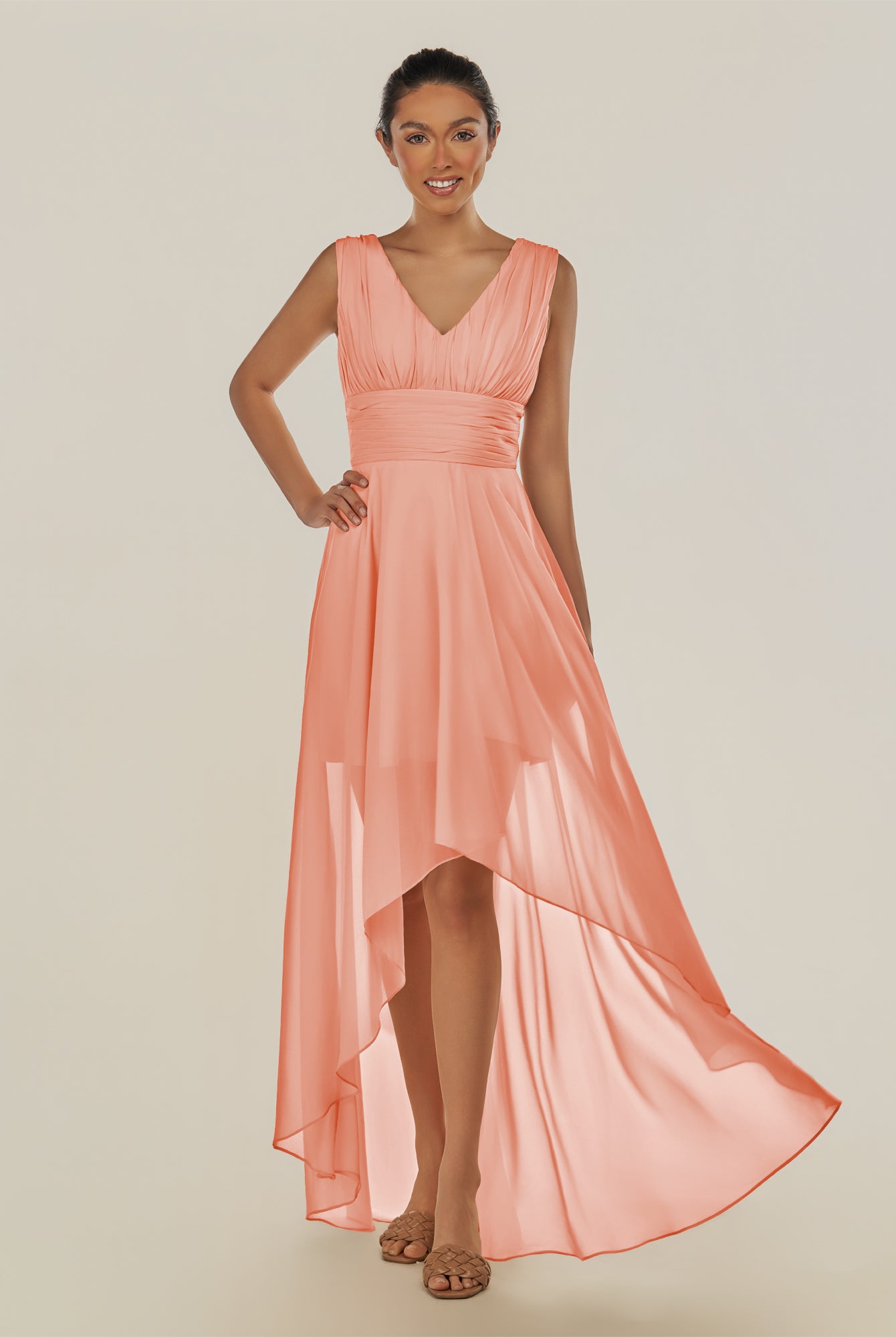 Jovi | Spice - A Line Chiffon V Neck High-low Length Pleated Long Bridesmaid Dress