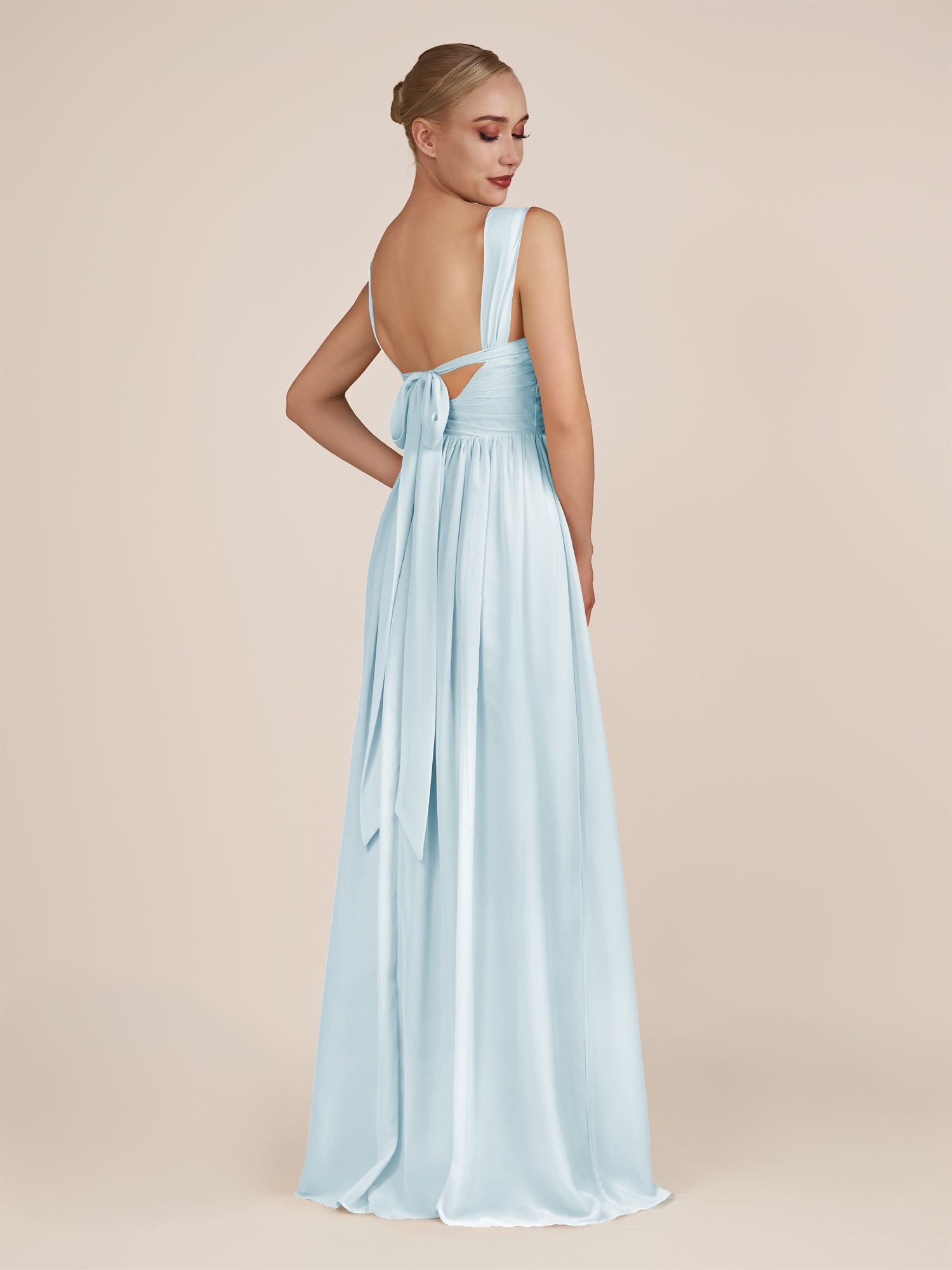 Azura | Sky Blue - A-Line V Neck Chiffon Pleated Long Bridesmaid Dress with Slit